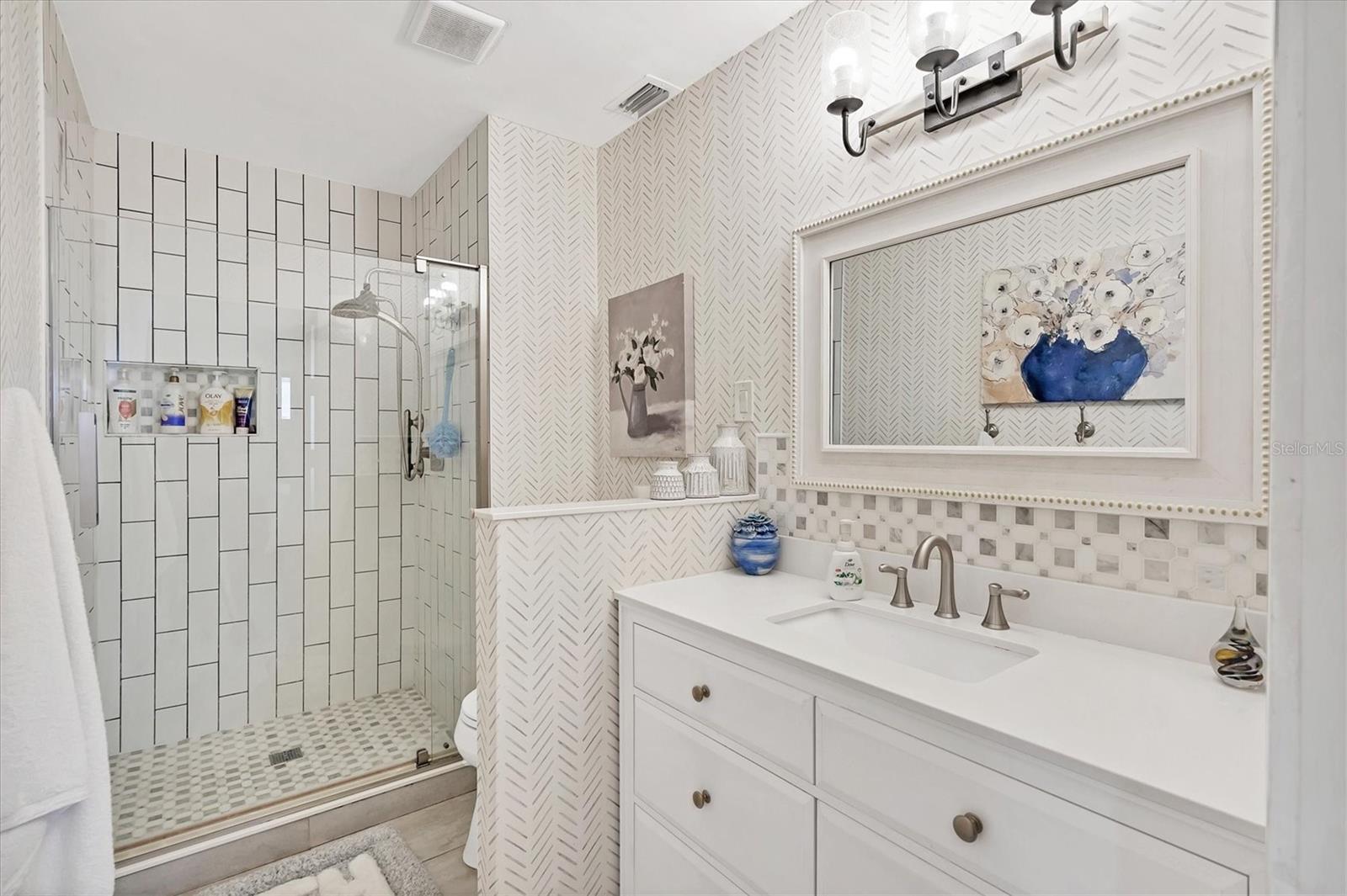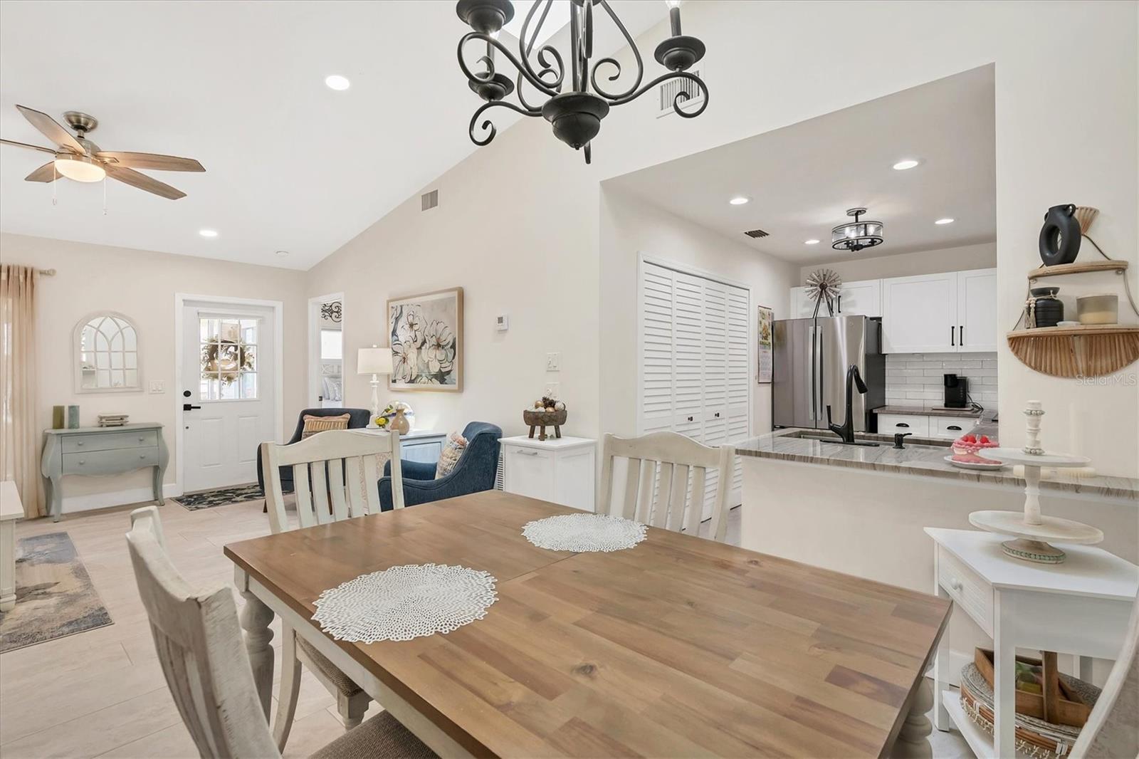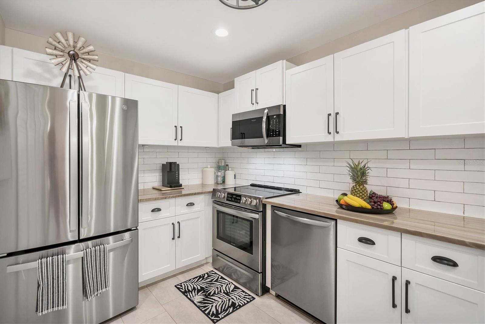 Enjoy living in this Luxury Villa with an upscale contemporary remodel at a great price! Nothing to do after your purchase but experience the elegance and modern comfort in this fully remodeled villa, featuring high-end finishes and impeccable design. From the gourmet kitchen to the spa-like bathrooms, every detail has been thoughtfully upgraded to create a stylish and functional living space. A classic renovation with premium materials and designer touches throughout. The kitchen has brand-new wood cabinets for a sleek and timeless look. Stunning quartzite countertops with a subway tile backsplash for a contemporary feel. Newer stainless steel appliances for a high-end cooking experience. Upon entering you will notice the consistent porcelain tile flooring throughout all living areas, including bedrooms for a seamless and elegant flow. The Primary Bathroom has an entry barn door for a modern and space-saving touch, custom glass shower door enhancing the luxurious feel, marble shower floors and subway tile shower walls and vanity surround. The guest bathroom also has a custom shower door, marble shower flooring and marble shower walls for an elegant look. The entry and bedroom doors feature bronze ergonomic lever handles for both style and functionality. All sliding glass doors are hurricane impact-rated, providing safety and peace of mind. Consistent designer ceiling fans throughout the home for a cohesive aesthetic. The 5.25-inch baseboards add a refined finishing touch to every room. This decked-out villa combines high-end materials, luxurious finishes, and hurricane-impact upgrades, new roof, new insulated vinyl siding, 2021 AC, updated electrical panel and a new skylight making it the perfect place to call home. The location is close to all your shopping and entertainment needs. This villa could provide a great income opportunity as a seasonal rental. Come see this stunning move-in ready, packed with value villa and make it yours!