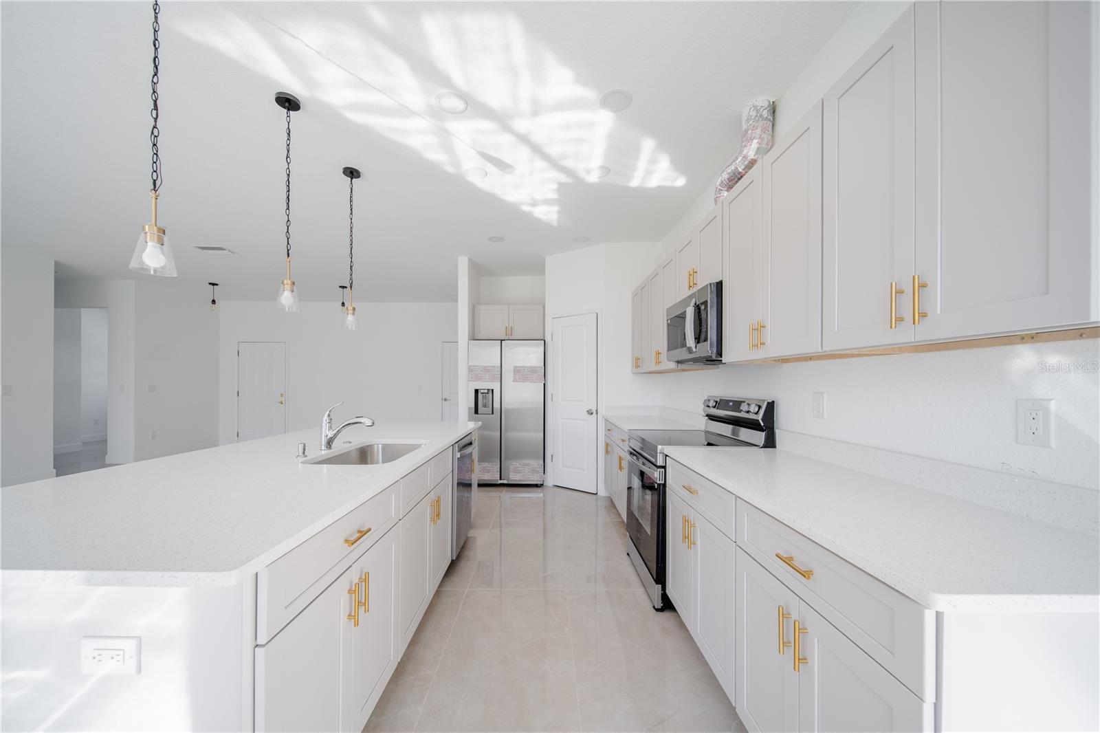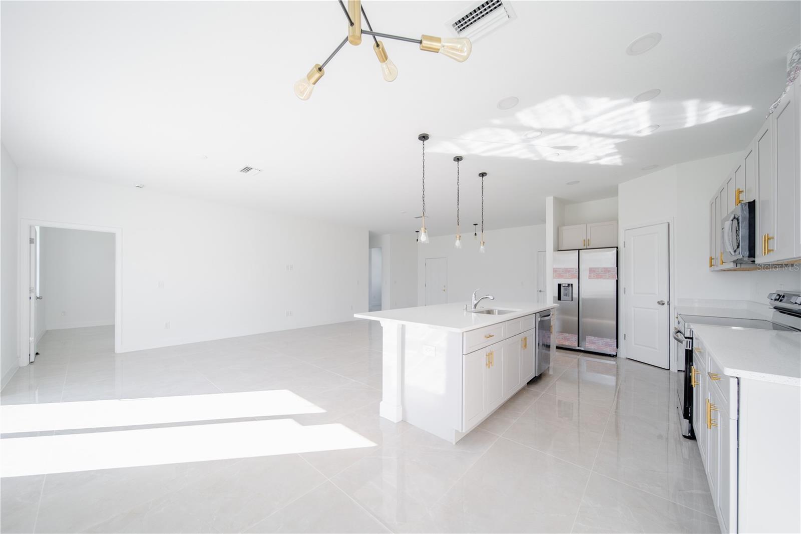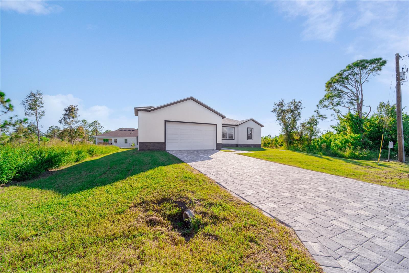 Welcome to 14191 Onslow, a stunning custom-built 4-bedroom, 2-bath home that blends contemporary design with comfort and durability. Featuring 9’4” ceilings throughout, this residence feels spacious and bright from the moment you step inside. The open-concept layout showcases premium 48x24 porcelain tile flooring that flows seamlessly through the entire home, including both bathrooms with elegant porcelain-tiled showers. The chef’s kitchen impresses with premium quartz countertops, a large sink, and Samsung stainless steel appliances, offering both functionality and modern flair. Every detail has been carefully crafted — from the vinyl impact windows and doors that provide peace of mind and energy efficiency, to the paver driveway and porcelain-tiled front porch that enhance the home’s curb appeal. Built with a high elevation to protect against flooding, this property also features a two-car garage, ensuring ample space for vehicles and storage. With 1,750 sq. ft. of living area (2,188 total sq. ft.), this home offers the perfect balance of style, space, and quality craftsmanship. Don’t miss your chance to own this exceptional home designed for modern living in one of the most desirable areas of Southwest Florida.