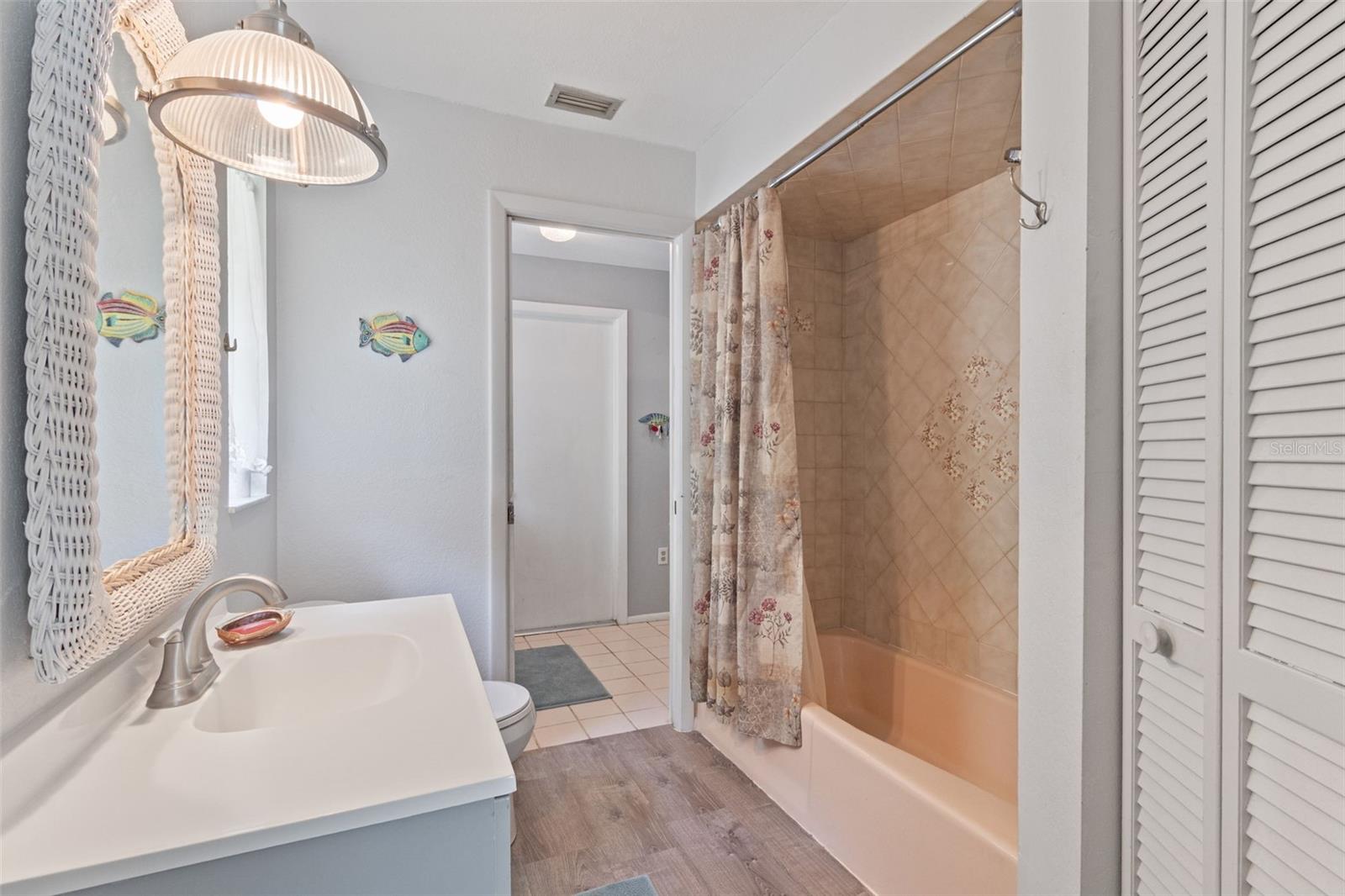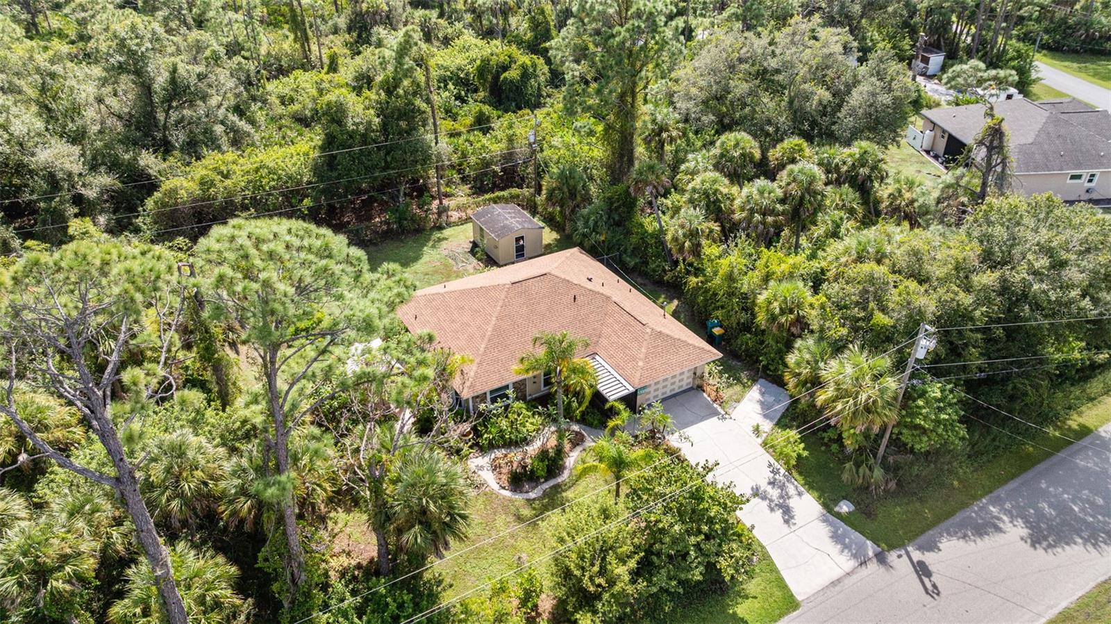 Welcome to this lovely property, covered with beautiful trees and landscaping providing a lot of privacy. You will love living here, centrally located with quick and easy access to the beaches, restaurants and shopping. When you venture out into the yard, there are several gazebos’ areas where you can sit, barbeque, play games and watch nature at its fullest. There is a very nice shed for all your gardening supplies. The entire property is surrounded by beautiful trees and fenced. A new roof was installed in 2021. The house is very open and clean. With a split floor plan with the large bedrooms, one at each end of the home, gives plenty of privacy. The open floor concept plan allows for loads of space for all your furniture as well as entertaining. The lanai has been enclosed providing for additional living-entertaining space. The master bath has a large garden tub and a large separate shower. The second bath is also large with a tub shower and nice closet. The open kitchen to the living area is great. The Entrance porch is screened so you can open up the home and have a great breeze during the fall and winter seasons. This property has a water softener and filter so that your water is the best. Window treatments are included in the sale. This is a wonderful and beautiful home ready for you to call your own.