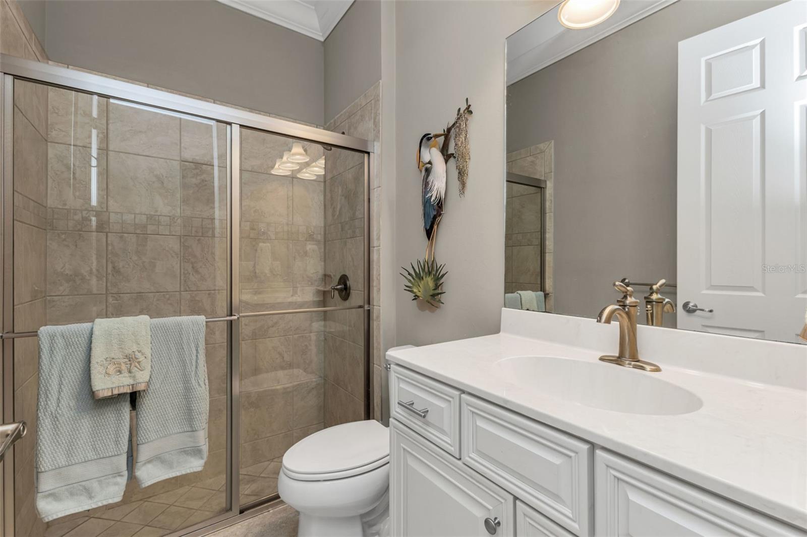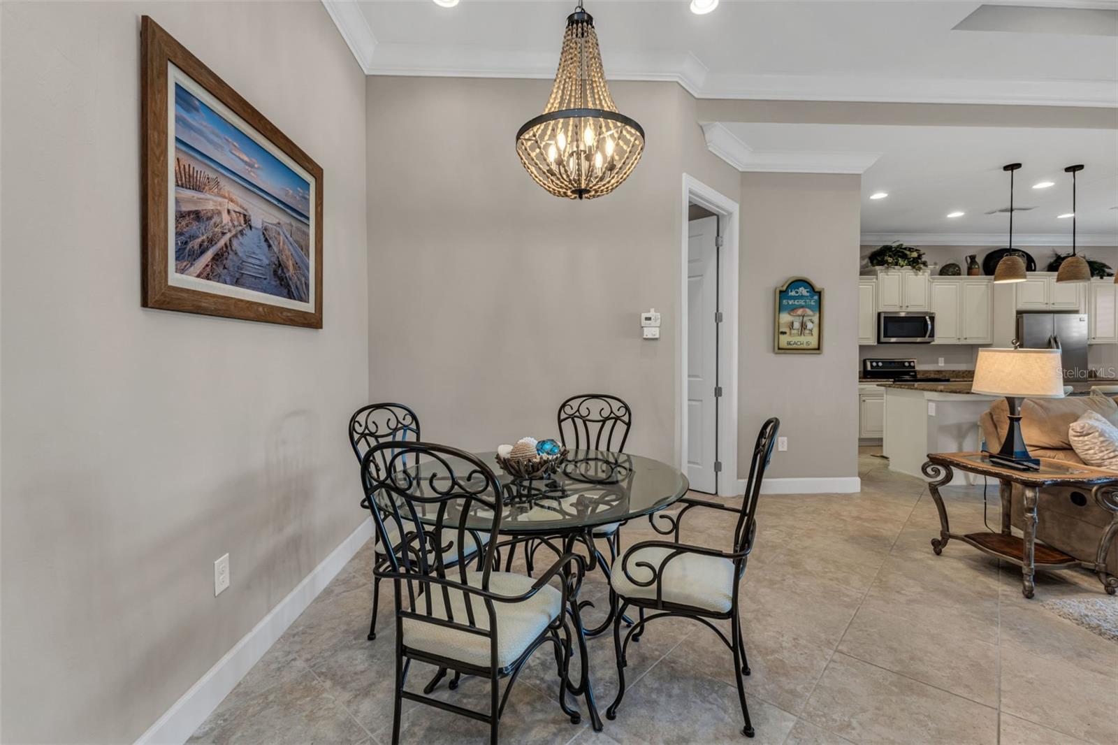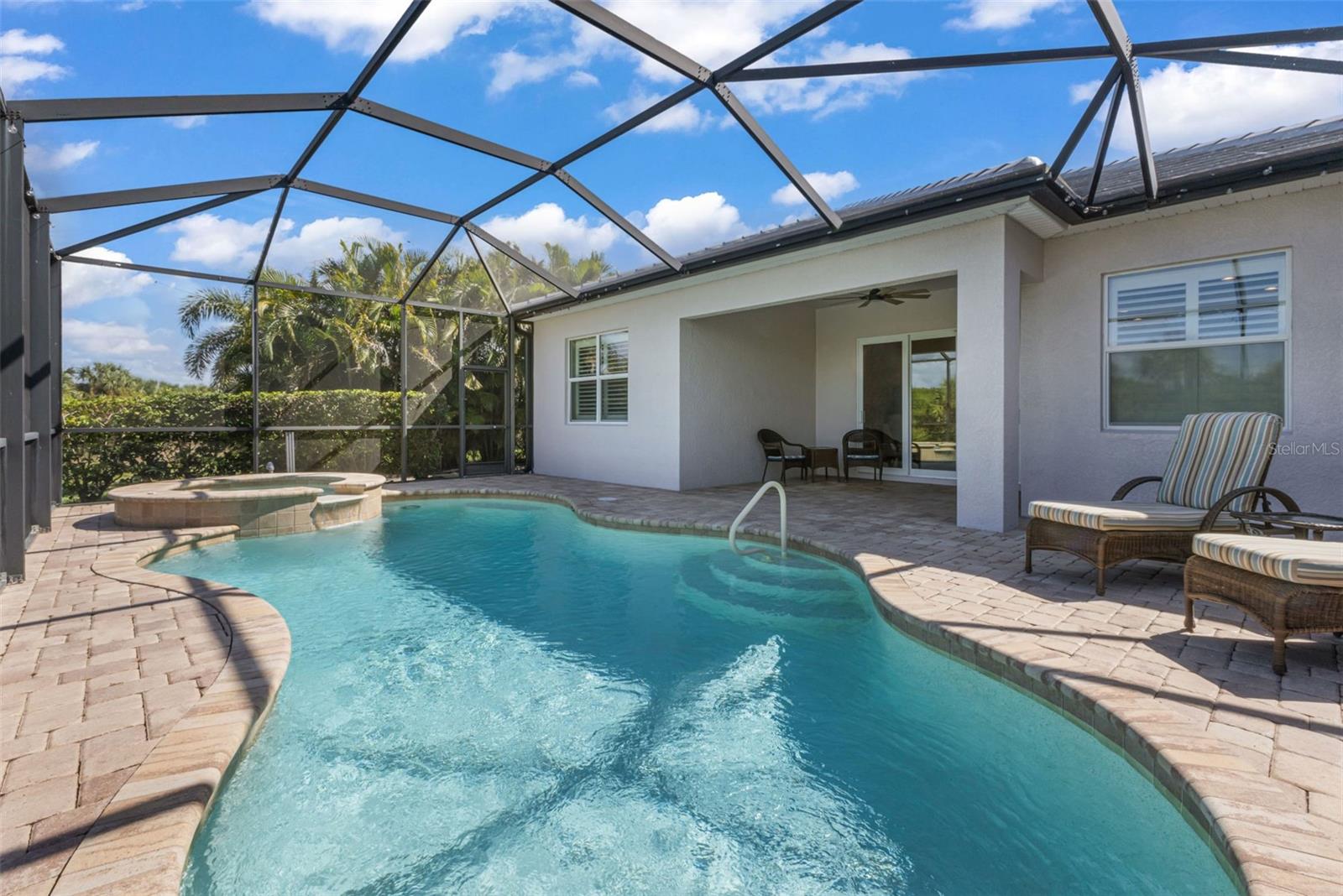 Set within the private, gated golf course community of Riverwood, this beautifully maintained 3-bedroom plus den, 2-bath home offers the perfect blend of comfort and style. The split, open floor plan features large ceramic tile throughout the main living areas, crown molding, and both tray and coffered ceilings, adding an elegant touch. The kitchen is designed for both everyday living and entertaining, with solid wood cabinets, soft-close drawers, granite countertops, stainless steel appliances, a breakfast bar, and a breakfast nook. Sliders from the living room open to the screened lanai, where a sparkling heated saltwater pool invites you to relax while enjoying peaceful views of the private preserve beyond. A versatile den or office offers flexible space that can easily adapt to your needs. The spacious primary suite features a lovely tray ceiling and provides a serene retreat, complete with a walk-in closet, dual sinks, and an expansive walk-in shower with a built-in bench. The split-bedroom layout ensures privacy, with two comfortable guest rooms on opposite sides of the home. One guest room features a charming bay window that fills the space with natural light, and both share a well-appointed bathroom. Additional highlights include a laundry room with storage, an oversized garage with a utility sink, a new roof (2023), impact windows, and fresh paint outside. The brick driveway and lanai add a classic finishing touch to this lovely home. As part of the vibrant Riverwood community, residents enjoy a par-of-the-72 championship golf course, a state-of-the-art fitness center, a resort-style pool, pickleball courts, Har Tru tennis courts, a dog park, bocce, and more! Beyond the gates, you will find easy access to world-class fishing, boating, waterfront dining, shopping, and the beautiful sandy beaches of the Gulf. Conveniently located between Sarasota and Fort Myers on Florida’s West Coast. This property combines elegance, comfort, and privacy in one of Riverwood’s most desirable settings. Schedule your private showing today and experience it for yourself!