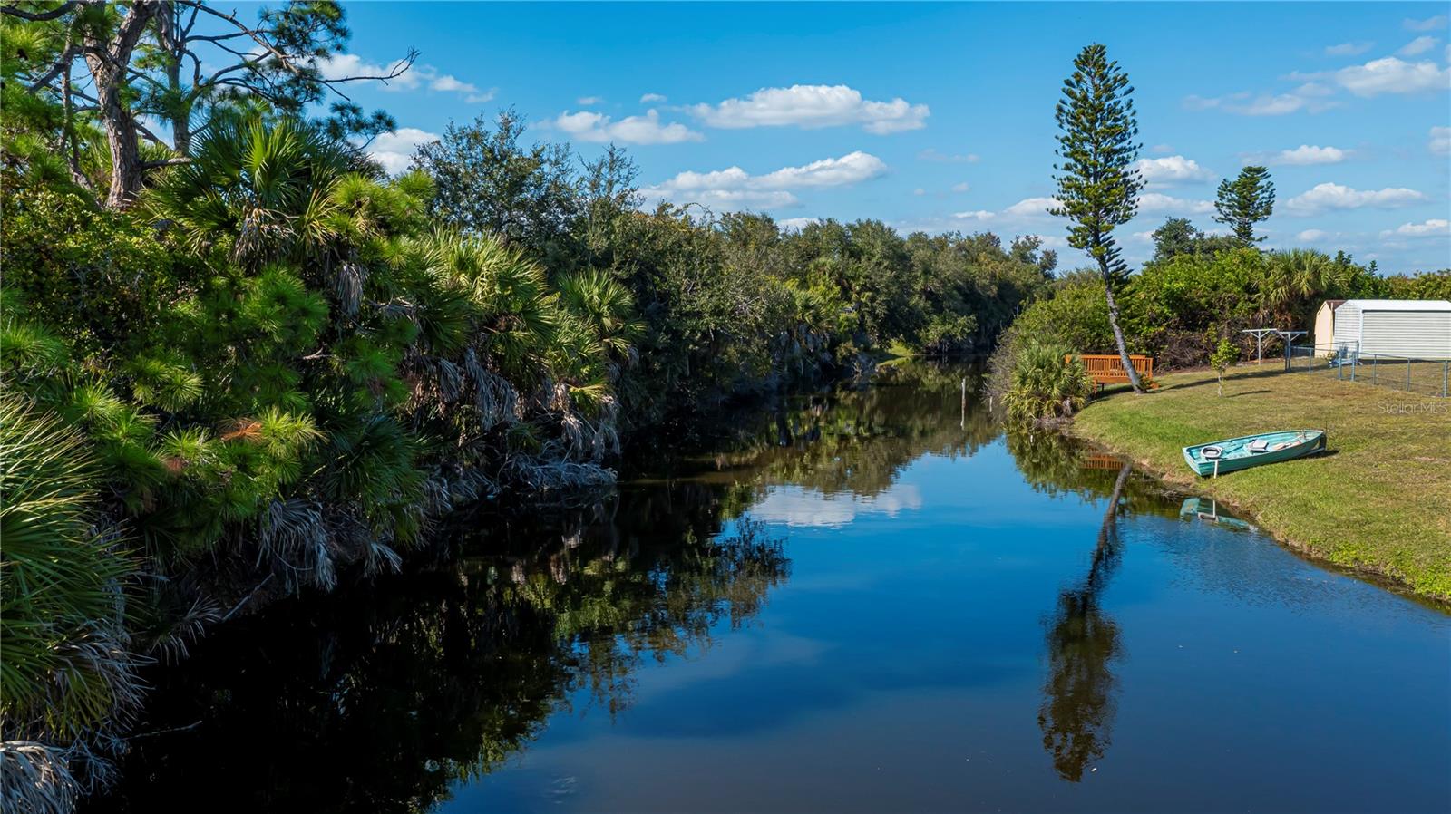 Discover your SERENE FLORIDA RETREAT in this CUSTOM WATERFRONT HOME, perfectly situated outside of any flood zone for HUGE INSURANCE SAVINGS! This spacious 2-bedroom, 2-bathroom, 2-car garage residence offers charming curb appeal, with potential to add a third bedroom and ROOM FOR A POOL. Enjoy DIRECT CANAL ACCESS leading to beautiful Blueberry Lake—perfect for boating and fishing enthusiasts. BRING YOUR BOAT AND YOUR FISHING POLES! Plus, with NO DEED RESTRICTIONS, embrace the relaxed Florida lifestyle in this nearly 1,800-square-foot home built in 2007. Step into the inviting front screened patio that welcomes refreshing cross breezes from front to back. Inside, soaring cathedral ceilings and double front entry doors open to a formal foyer, expansive living room, and separate dining area ideal for all your entertaining needs. The CHEF'S KITCHEN shines with a convenient breakfast bar, cozy nook, Frigidaire smooth-top stove, microwave, GE dishwasher, Maytag French door refrigerator, and a SPACIOUS WALK-IN PANTRY. Retreat to the TRANQUIL MASTER BEDROOM with stunning canal views, a gorgeous TRAY CEILING, PRIVATE LANAI ACCESS, ceiling fan, large walk-in closet, and an updated en-suite bathroom featuring a LUXURIOUS ROMAN SHOWER and stylish vanity. Guests will appreciate the OVERSIZED 2ND SUITE, boasting unparalleled canal views, a CUSTOM TRAY CEILING, ceiling fan, wall closet, and an en-suite bath/pool bath for ultimate comfort. The highlight of this home is the SPRAWLING 35 x 11 SCREENED LANAI with SLIDERS FROM MOST ROOMS—perfect for enjoying sunsets and nature’s beauty. Dual overhead ceiling fans, an outdoor shower, EXTENDED OPEN AIR PAVER PATIO, and a PRIVACY-FENCED BACKYARD create an inviting space for grilling , gatherings and creating everlasting memories with family and friends alike. Additional benefits include one of the largest inside laundry rooms you’ll find, a big two-car garage with automatic door, a 2023 NEW ROOF, and easy access to amenities. Several community parks are nearby, offering walking paths, boat launch, fishing docks, picnic shelters, BBQ grills, and playgrounds.This property is only minutes away from WORLD CLASS FISHING, GOLF COURSES, shopping, dining, SW FL beaches in Boca Grande and Manasota Key. Don’t miss your chance to make this charming waterfront home your ULTIMATE FLORIDA GET-A-WAY! Call to schedule your personal tour today!
