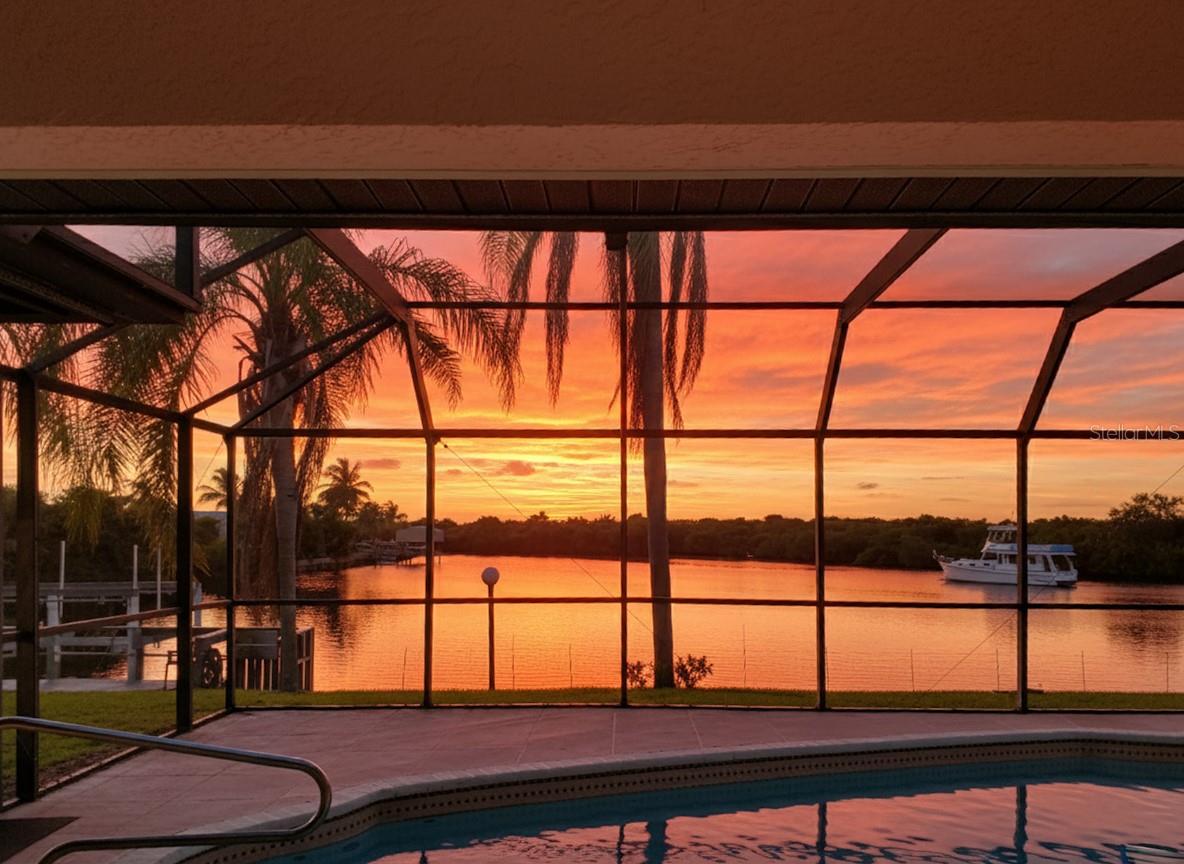 PRIME WATERFRONT IN PORT CHARLOTTE! BEAUTIFULLY UPDATED 3 BEDROOM, 3 BATH, 2-CAR GARAGE POOL HOME OFFERS DEEP WATER SAILBOAT ACCESS TO CHARLOTTE HARBOR LEADING TO THE GULF! 80 feet of waterfrontage on a wide turning basin plus floating dock and boat lift. Enjoy the western exposure with amazing sunsets from your own backyard. Wide canal and preserve views provide an abundance of privacy. As you arrive, you'll be greeted by the custom stone-front pillars framing the paver driveway, setting the tone for what's inside. Meticulously maintained yard, complete with a separate well for irrigation, enhances the property's curb appeal. Step inside to discover new light fixtures, custom barn doors, and luxury tile plank flooring throughout. The formal and family rooms each feature electric fireplaces, adding warmth and style to the living spaces. Spacious kitchen boasts two-toned wood cabinetry, granite countertops, tile backsplash, skylight, and resistant stainless-steel appliances. A pantry, pass-through window, and breakfast bar make this kitchen perfect for entertaining. The open family room, with its custom entertainment center and fireplace, offers two sliders—one leading to the lanai and pool area, and the other to a separate patio. Generous primary bedroom is a retreat, featuring high ceilings, an electric fireplace, and his-and-her walk-in closets. Ensuite bath showcases European-style dual vanities, blue marble shower and countertops, and walk-in shower with a frameless door. Split floor plan ensures privacy, with two additional bedrooms sharing a guest bath. Step outside to your covered and screened lanai, complete with a resurfaced, heated pool. The unobstructed basin views and lush landscapes offer total privacy, making it perfect for relaxing or entertaining. An outdoor bath adds convenience, with the yard featuring wrought iron fencing. Energy efficiency is a highlight, with solar panels on the new roof. Additional highlights include 2023 hurricane impact windows, new water softener, R13 insulated and vapor barrier furred walls and R30 ceiling insulation, and automatic dusk-to-dawn solar canal lights. Don't miss the chance to make this waterfront paradise your new Florida retreat! Schedule your private showing today!