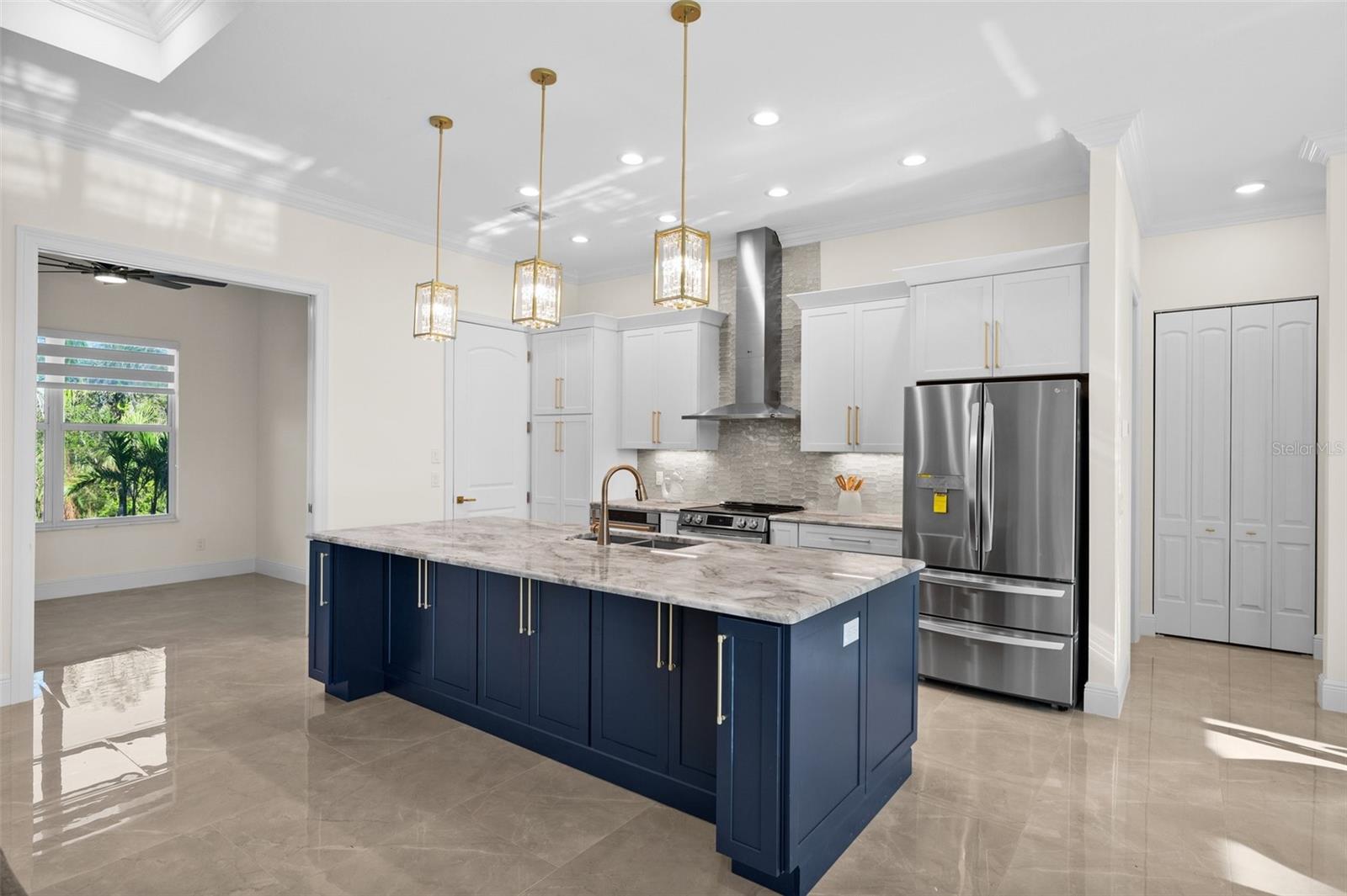 STUNNING 2024 WATERFRONT 3 Bedroom, 2 Bathroom, 2 Car Garage, Pool home with a Den and a PRIVATE Dock located in South Gulf Cove. CLICK ON THE VIRTUAL TOUR LINK 1 FOR THE VIDEO AND VIRTUAL LINK 2 FOR THE 3D TOUR. This beautiful home features a bright & open floor plan, Porcelain tile flooring throughout, crown molding, recessed & pendant lighting, tray & coffered ceilings, and SO MUCH MORE! Host unforgettable gatherings with an open living room with a large ZERO CORNER slider to the lanai BEAUTIFUL water views, and an electric fireplace. A GOURMET kitchen offers ALL Stainless-steel appliances, granite countertops, a tiled backsplash, an island with a breakfast bar, a cabinet pantry, and an off-kitchen dining room with water views. The spacious master bedroom has GORGEOUS water views, a tray ceiling, a glass slider to the lanai, HIS & HERS walk-in closets, and a private en-suite bathroom with a dual sink vanity, Roman ALL tile walk-in shower with dual shower heads, and a linen & water closet. The guest bedrooms are on a split floor plan providing plenty of privacy with built-in closets and a shared guest bathroom with lanai access nearby. The den off the kitchen is perfect for a home office, media room or additional guest room. Expand your living and entertaining space to the lanai where you can sip your morning coffee or unwind with your favorite evening beverage while enjoying water views. Take a dip in your private pool with a Baja shelf or soak up the sun from the pool deck. Cast a line or set sail for endless water adventures from a private dock in your backyard. South Gulf Cove is a deed-restricted neighborhood with an optional HOA that offers members a clubhouse, waterfront park with playground, and private boat ramp. Conveniently located close to local shopping & boutiques, fine & casual dining, LIVE entertainment, and AWARD-WINNING BEACHES!! Schedule your showing TODAY!