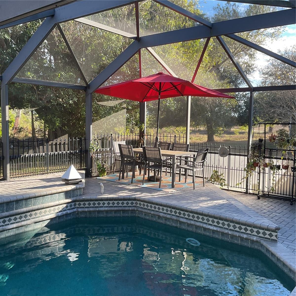 Assumable 4.75% mortgage! Ready to enjoy a fabulous heated salt-water pool surrounded by a decorative fencing, overlooking open fields? There is NO HOA, and NO FLOOD insurance required. This solid block home is on a large, oversize corner lot, with easy access to everything! For safety and convenience, it features hurricane impact windows, security system, and a backup generator. Sidewalks let you safely access the park just a block down the street. There are 3 beds, 2 baths, new roof (2022) and new AC (2025). The kitchen features solid wood cabinets and brand new butcher block countertops. A home warranty is included. Owners would like almost all the furniture to stay. There also is a nearly new rider mower that could be included for the right price. This is a great value! Come see it today.