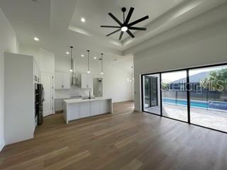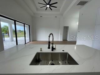 Another fine home by BF Homes. First Time Offered the "Boca Grande Model". This meticulously crafted single-family residence in the Community of South Gulf Cove Community of Port Charlotte, Florida, presents an exceptional opportunity for discerning buyers. Spanning 1,985 square feet, this home features 3 bedrooms and 2 full bathrooms, providing ample space for both comfort and functionality. The thoughtfully designed interior showcases high ceilings and an open floor plan, seamlessly integrating the living areas. The gourmet kitchen is equipped with premium stainless steel appliances, elegant light stone countertops, and a central island, catering to both culinary enthusiasts and those who enjoy entertaining. The primary suite offers a retreat, complete with a tray ceiling and a well-appointed ensuite bathroom featuring dual vanities and a tile shower. Outdoors, the property boasts a large lanai, pool area with a spa, complemented by a glass enclosure for year-round enjoyment. The surrounding landscape enhances the outdoor living experience, making it ideal for entertaining or relaxing in privacy. Located in South Gulf Cove, residents benefit from proximity to waterfront access, parks, and community amenities, making this property an attractive investment for those seeking a vibrant lifestyle.