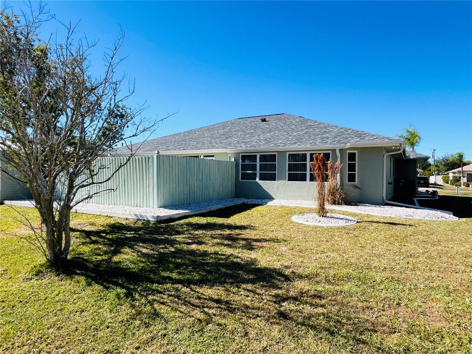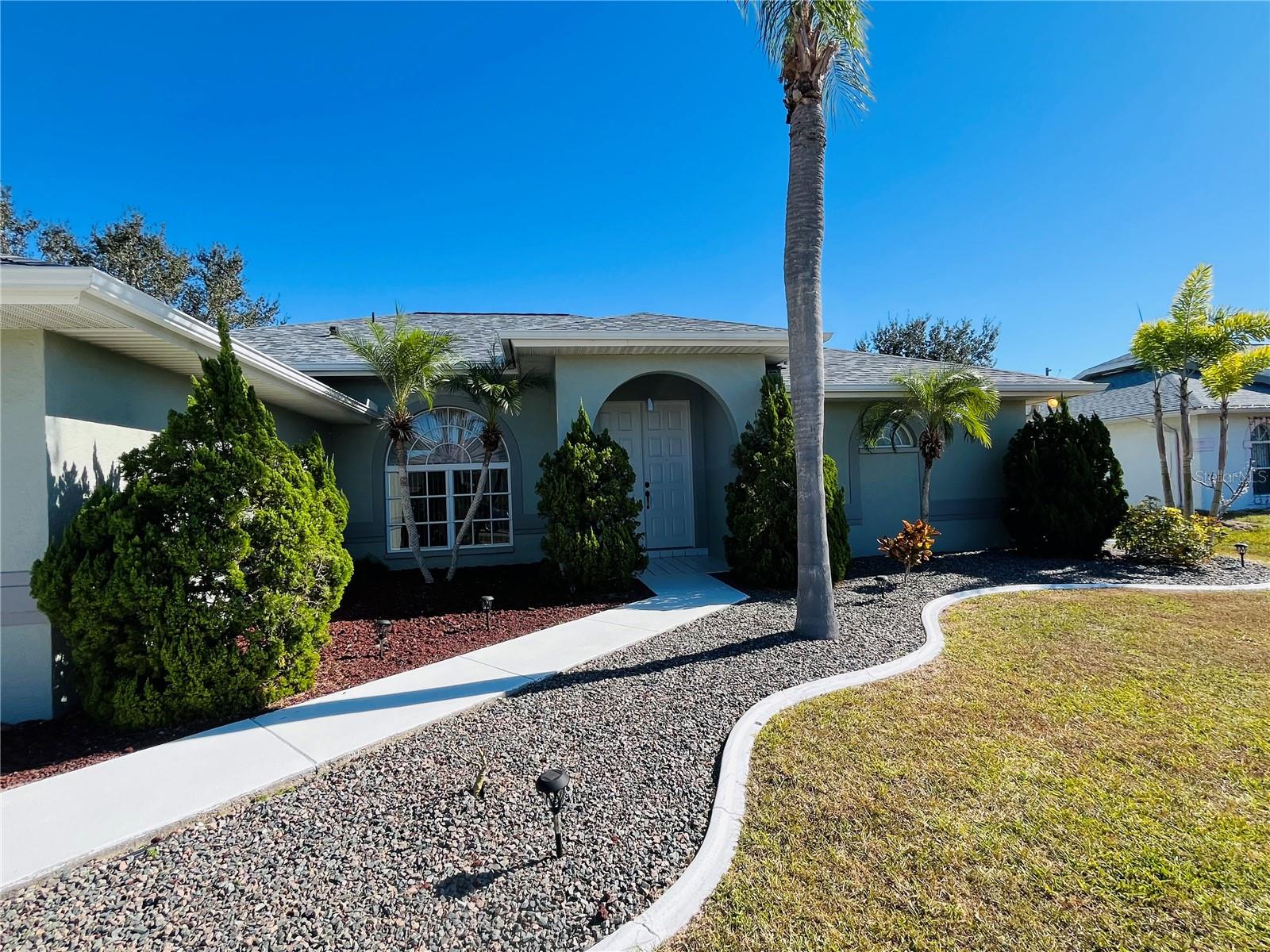 Make a fresh start to 2026 in this custom built home that is move-in ready. Step into 1897 sq ft of sunny living area with a split floorplan. Plenty of room for entertaining with a formal living room, dining room, and a family room. The light and bright kitchen offers granite countertops and updated appliances. The kitchen also opens up to the family room with a view of the private back yard. The primary suite is oversized to create a cozy reading area or a home office. High trey ceilings and double closets. The primary bath has been recently remodeled to include a walk in shower and double sinks with granite counter tops. The second bedroom is spacious and ready for guests or family. New luxury vinyl tile throughout and recently painted exterior. Inside laundry w/washer & dryer included. Sliding glass doors from the living room, bedroom and kitchen lead to a screened lanai for outdoor enjoyment and relaxation. The back yard has fencing for privacy and includes a 12x10 shed for storage or a workshop. The 2 car garage has new epoxy flooring. Nicely landscaped with mature palms and tropical plants. NO FLOOD ZONE, new roof in 2022, public water/sewer and in a thriving area of Port Charlotte. Close to shopping, restaurants, schools, interstate 75 and historic Punta Gorda.