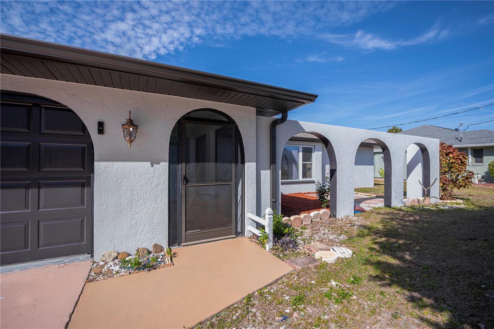 SPECTACULAR WATERFRONT PARADISE FOUND in this stunning 3-bedroom, 2-bathroom, 2-car garage HEATED POOL home perfectly nestled on a peaceful freshwater canal that leads to the expansive Dorchester Waterway lake. This beautifully renovated residence offers an exceptional lifestyle with breathtaking canal water views from nearly every room and exceptional privacy. Step inside to discover a thoughtfully designed split floor plan showcasing vaulted ceilings and a chef-worthy kitchen that is truly the heart of the home. Enjoy relaxing natural light filtering through a skylight above, quartz countertops, stone subway tiled backsplash, sleek modern cabinetry, brand-new stainless steel appliances, trendy decorator hardware, unique designer alcoves and a convenient pass-thru window to the sparkling heated and BRAND NEWLY SCREENED CAGED pool—ideal for seamless indoor-outdoor living and entertaining. The spacious living room and family room provide ample space for gatherings with loved ones and separate dining space, all freshly painted inside and featuring abundant natural light and ambiance from pocketing sliders direct to the screened pool area.Zen inspired Primary bedroom is well thought out with french doors & private access to pool/patio, full walk in closets and sumptuous spa-like ensuite primary bathroom you'll fall in love with. Guests will appreciate having two serene bedrooms selections that are large with full closets, upgraded deco fans and share an impressive re-designed middle bath with the rest of the home. Relax year-round in the heated pool with a wonderful covered area that captures refreshing breezes from front to back. Outdoor enthusiasts will love fishing right from their own property, kayaking, or bringing a larger boat to explore nature and wildlife up close. Additional highlights include a new roof installed in 2023, a 2020 A/C system, pristine no-carpet floors throughout for easy maintenance, no flood zone, no HOA fees or restrictions plus inside laundry room .Close to dining, entertainment, beaches, Sunseeker resort, downtown historic Punta Gorda, parks, golfing I-75, and PG Airport, so plenty of choices and opportunities. This rare gem perfectly blends serene waterfront living with modern, stylish upgrades and superb functionality—YOUR PRIVATE OASIS AWAITS! Don’t miss the opportunity to own this exceptional canal-front haven. Schedule your tour today!