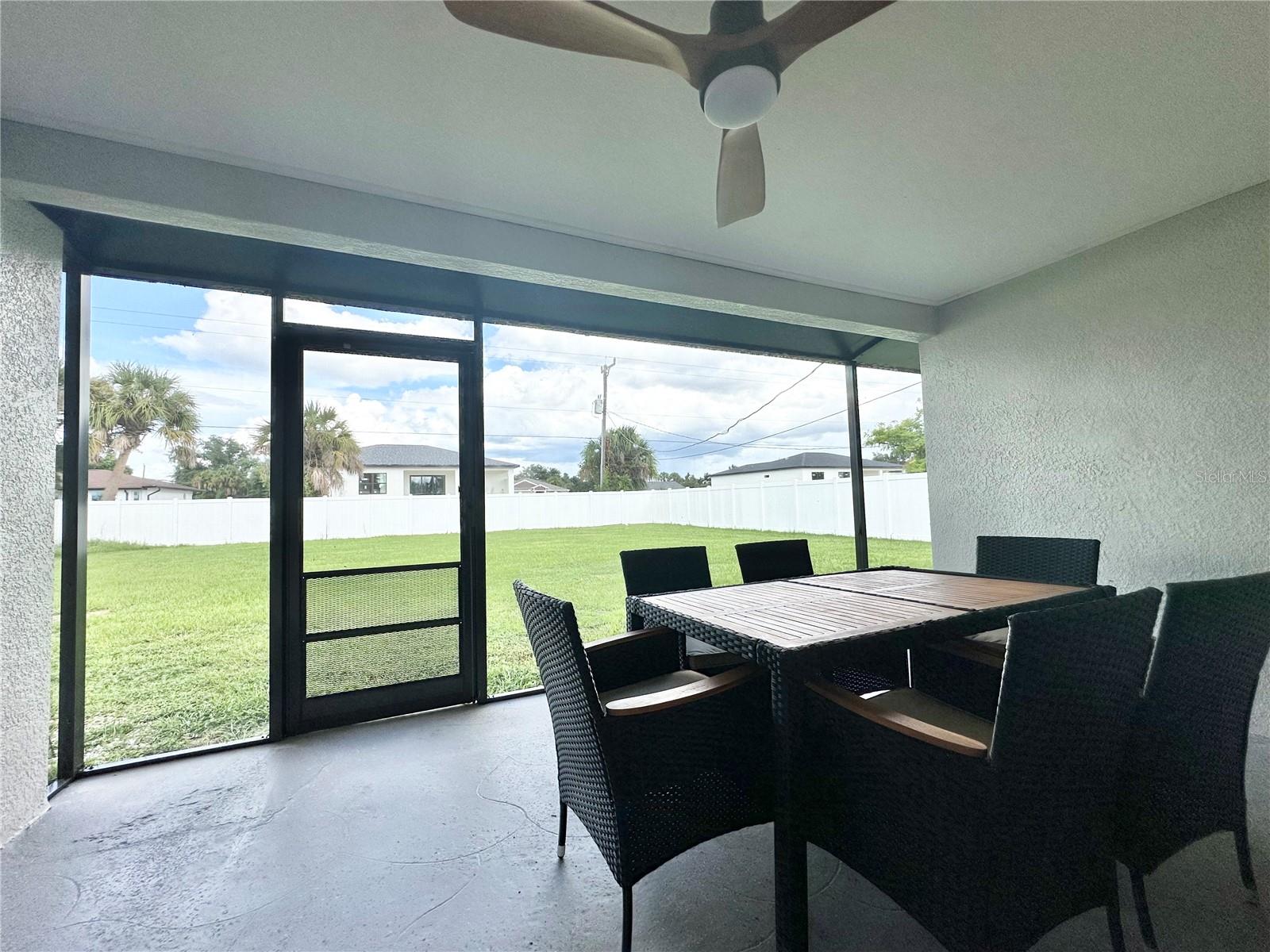 LOOKING FOR A SMALLER CUSTOM HOME WITH over 100K in Recent UPGRADES? This 2 bedroom 2 bath home is stunningly spectacular, updated inside and out beginning with a striking 2023 METAL ROOF (50 year Lifespan) NEW AC 2024, completely vinyl PRIVACY FENCED BACKYARD creating wonderful curb appeal PLUS room on the side for RV OR BOAT STORAGE! SELLER OPEN TO TRADING UP OR DOWN FOR YOUR CURRENT HOME. With vinyl plank flooring throughout and designer lighting and accents, the living room is instantly welcoming with the ambiance of a rich plank enhanced entertainment area complete with a modern electric fireplace, 55’ TV and built in surround sound. The kitchen is both chef worthy and an entertainers delight with GRANITE countertops & Backsplash, sleek 2024 stainless appliances, trendy gold hardware, wide farmers sink, shaker style cabinetry, eat in dinette area and room for more than one cook in the kitchen plus a deep serene backyard view. The master bedroom is spacious with en-suite bath, roomy closets have flat 2 panel doors and private lanai access. The master bath, prepare to fall in love.. the epitome of custom elegance with double shower heads, built-ins and rich cabinetry. The second bedroom will accommodate guests quite nicely, suspended tv, deco fan, and great sized closet sharing the gorgeous secondary bath with the rest of the home. Inside laundry with matching washer/dryer with steamer option, NEW 2023 tankless hot water heater, NEW 2024 ELECTRICAL PANEL, HARD WIRED SECURITY CAMERAS with both audio and sound, NO DEED RESTRICTIONS, PUBLIC UTILITIES, NEW 2023 DOUBLE PANE HURRICANE IMPACT WINDOWS, adds value and extra peace of mind. Screened lanai is absolutely perfect for morning coffee or evening cocktails.. a wall mount for your tv is already in place… private serenity at its best. Close to two public boat ramps, Port Charlotte Beach, Kiwanis Park, Lakeview Park, Sunseeker Resort, walking/dining/shopping of downtown Punta Gorda and PG airport. Currently functioning as an AIRBNB with $2600 month income.. OPTION TO PURCHASE FURNITURE. Be Sure to visit this beauty!