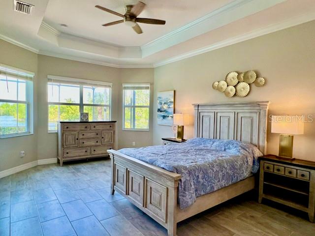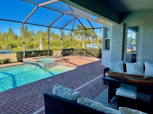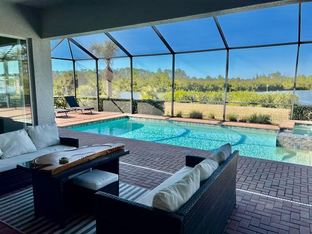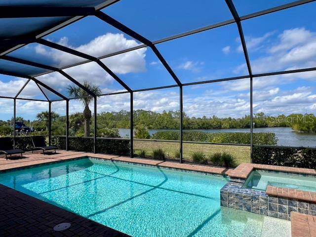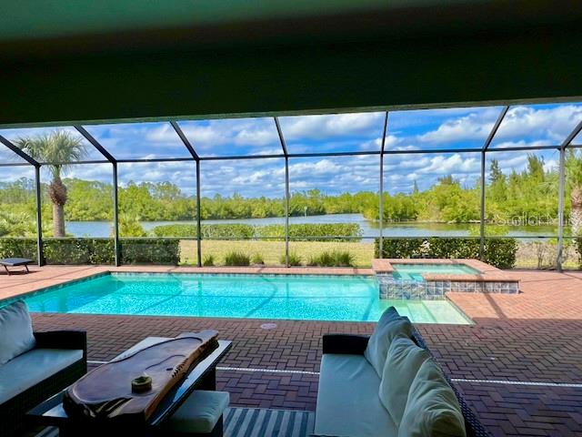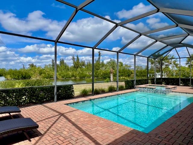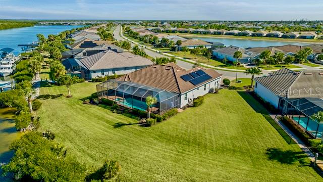 SAILBOAT ACCESS WATERFRONT PROPERTY within the desirable gated community Harbor West. This stunning 4 bedroom 2.5 bath home sits proudly on a 19,964 sqft Tip Lot that offers breathtaking panoramic water views and many potentials. An impressive 165 feet of water frontage wraps around the property with ample space for a dock. This expansive lot is the closest lot to the South Gulf Cove Lock. You gain quick access to open water saving time and money each time you go for boating adventures. Boating enthusiasts will absolutely adore this specific unique location. The residence spans 2345 sqft under air living space. Step inside the foyer and you will be amazed by the 12 foot glass sliders framing the sparkling heated pool with its bubbling spa and the magnificent water views. A “pool child-fence” is included for pool safety for young children and pets. The home is tiled throughout for easy maintenance. The crown moulding and tray ceilings are a nice luxury touch. The gourmet kitchen is a chef's dream that features high-end appliances and granite countertops. The large granite island can comfortably seat 8 and become the hub for family meals and gatherings. There is also a formal dining area for special occasions. The home is equipped with modern photovoltaic panels to minimize energy costs. Water quality is taken very seriously with a whole house water softener, a UV sanitizer and a reverse osmosis system in the kitchen. The split floor plan ensures maximum privacy for all residents and guests. One of the guest rooms connects to the lanai and pool through the convenient powder room. The fourth bedroom can serve as a bedroom, music room or study. The primary bedroom is a true sanctuary that can be closed off from the rest of the home. This design ensures peace and quiet from the living areas. From the primary bedroom you can access directly to the pool for a refreshing morning or evening swim. A large walk-in closet awaits you with plenty of storage space. The adjoining primary bathroom is spacious and features a luxurious soaking tub and a separate walk-in shower. The spacious 3-car garage with a durable epoxy coated floor offers ample space for all your ‘toys’. The lanai is perfect for entertaining. Enjoy the Florida sun by the pool, watch boats pass by and the abundant wildlife. You can also enjoy fishing and crabbing from your backyard. Harbor West is a gated community giving privacy and security with very competitive HOA fees. This is a rare real estate opportunity that combines luxury with functionality. Make this waterfront dream home yours. Please call for a private viewing.