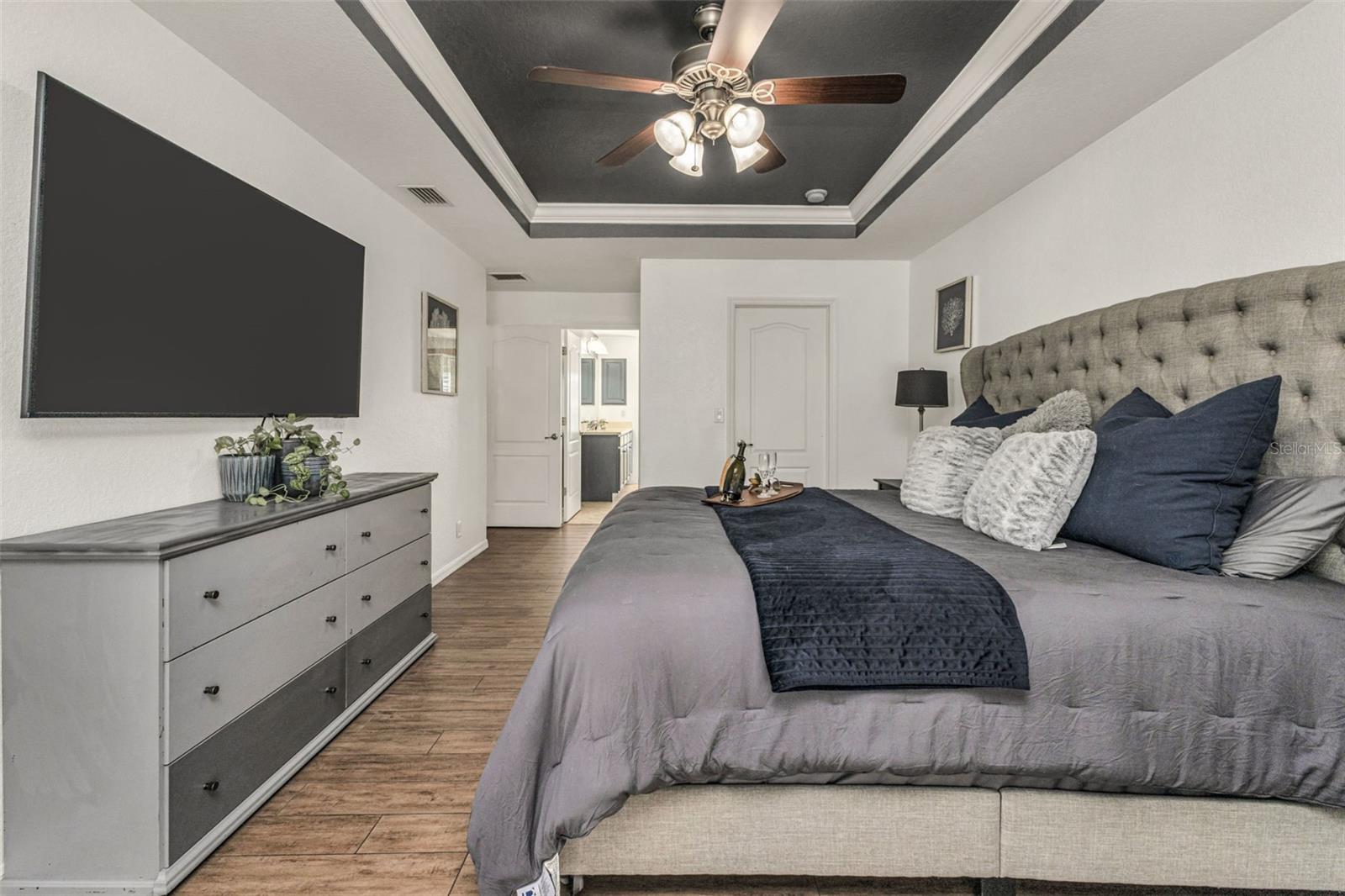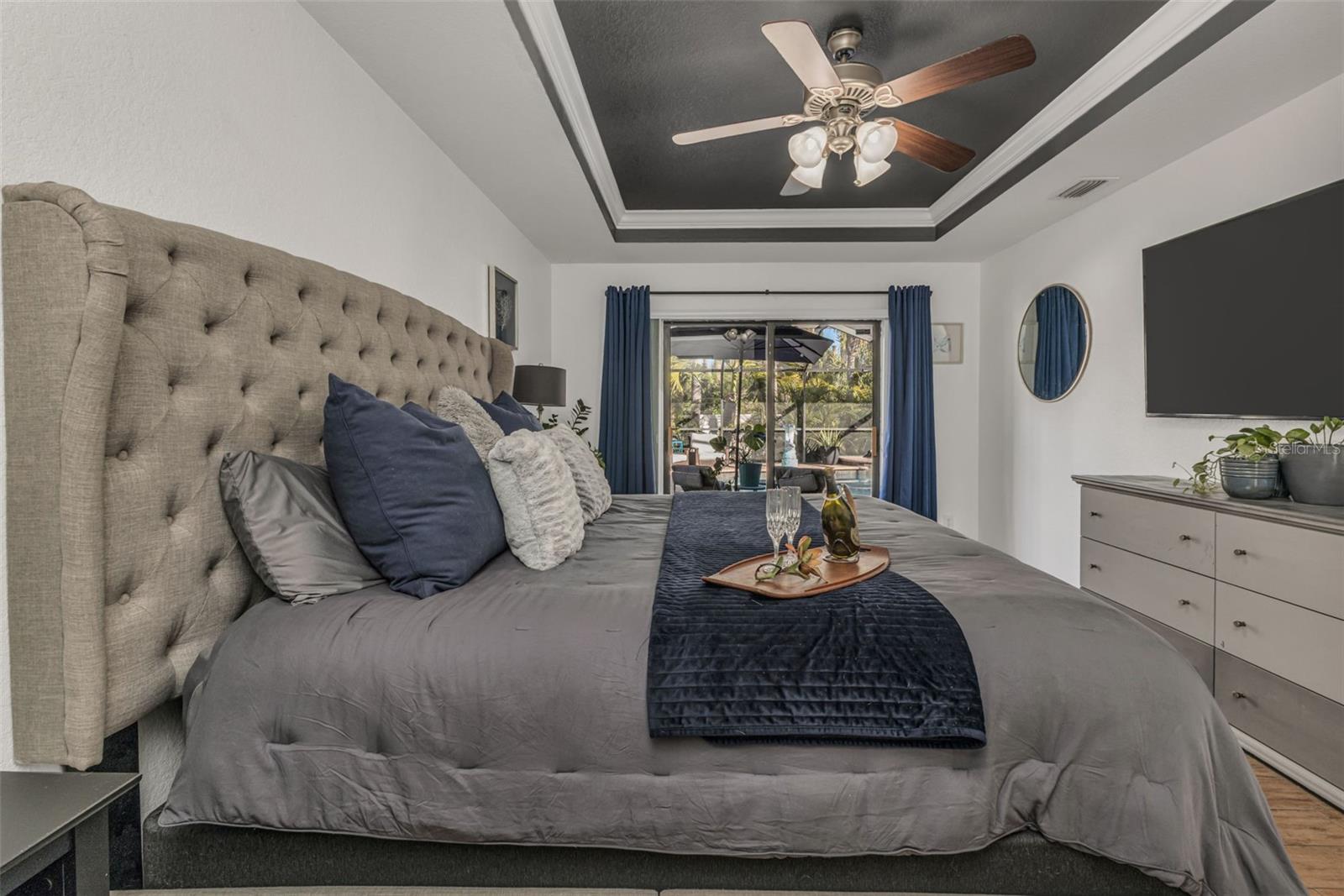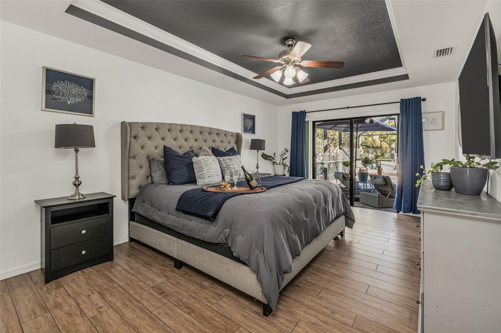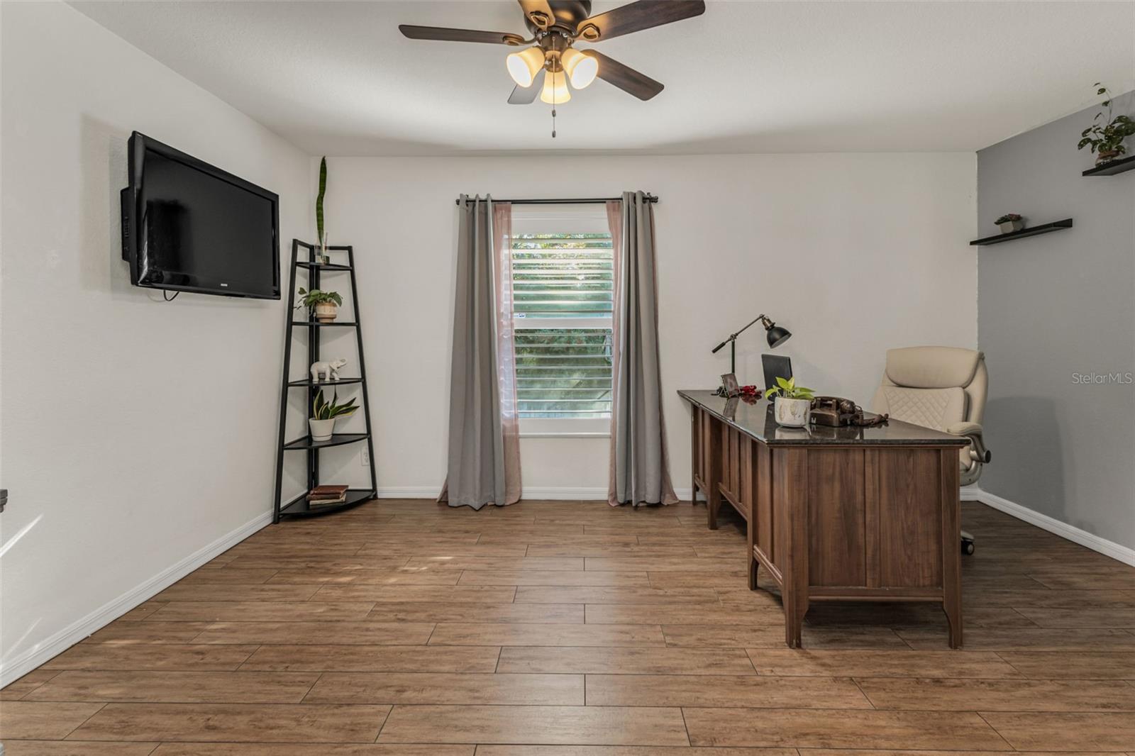 Welcome to Your Private Tropical Oasis! Perfectly situated on a rare double lot, this beautifully maintained 3-bedroom, 2-bath, 2-car garage HEATED pool home is surrounded by lush, mature landscaping that offers exceptional privacy and curb appeal. From the moment you arrive, you’ll be impressed by the stamped concrete driveway and walkway and the inviting screened entryway. Inside, the home opens to soaring cathedral ceilings, porcelain and ceramic tile flooring throughout, plantation shutters, and tasteful architectural details including decorative planter shelves. With 2,276 sq ft under air, the layout offers both elegance and functionality, featuring a formal living and dining room plus a spacious family room with Bluetooth surround sound and French doors that seamlessly connect indoor and outdoor living. The kitchen is designed to impress, offering granite countertops, stylish backsplash, stainless steel appliances, a breakfast bar, pantry closet, and an abundance of cabinetry and counter space—perfect for entertaining or everyday living. The laundry room is thoughtfully designed with a washer and dryer, and cabinetry for everyday convenience. The primary suite is a true retreat with tray ceilings, a walk-in closet, and sliding glass doors leading to the lanai. The en-suite bathroom features dual sinks, a walk-in shower, jetted garden tub, and a linen closet. A desirable split-floor plan provides privacy for guests and includes two guest bedrooms, a bonus room perfect for an office/or den, and a guest bath with pool access. Step outside to your resort-style backyard featuring a sparkling heated pool with a tranquil waterfall and a screened brick-paver lanai—ideal for both relaxing and entertaining. An additional brick-paver patio beyond the lanai is ideal for grilling or gathering around a fire pit. The fully fenced backyard and tropical landscaping complete this serene outdoor oasis. Bonus SHED for extra storage. Updates include: Hot Water Heater & Pool Filter 2025, Roof 2024, Pool Heater & Leach Field replaced 2022, Shed 2019, and AC 2017. NO HOA or DEED RESTRICTIONS! This home is conveniently located in a nice neighborhood but close to restaurants, shopping, beaches and much more, this home is a must-see! Schedule your appointment today and make it yours!