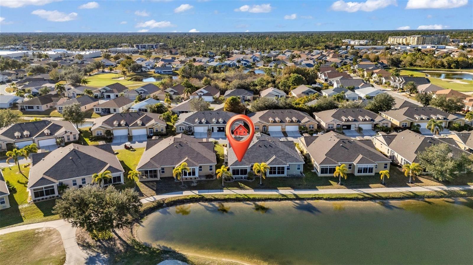 STUNNING Venetian villa with A+ view of water/pond and first hole in the gated golf course/active resort of highly desirable Kings Gate, a 55+ community that is NOT in a flood zone and does NOT require flood insurance. Lots of updated/upgraded features in this FULLY FURNISHED villa featuring 2022 roof, 2017 AC, 2021 HWW, Impact windows - LVP flooring throughout - tiled and enclosed lanai and custom built stone façade fireplace walls (one in living room and one in lanai) add that extra touch to go along with that sensational view. The open concept seamlessly connects the kitchen to the dining room, living room, and lanai. Large den provides opportunity for a work area, 3rd bedroom, 2nd TV room - whatever fits your lifestyle. And with large master bedroom in the back left of the villa and the guest bedroom in the front right of the villa both you and your guests will have plenty of privacy. And with the extra 1/2 bath - your guests can have their own private bathroom. Good size laundry room and additional cabinets. Plenty of places to relax and/or entertain in this villa - and no question you're going to love having your morning cup of coffee and/or your favorite after dinner drink in the lanai over looking the water/pond and the serenity it provides. And if you haven't been to Kings Gate before - you're going to love the options for activity (Olympic size heated swimming pool and spa, tennis courts, pickle ball, lawn bowling, shuffle board, bocce, horseshoes, gym, billiards, library, euchre, bingo, bridge, Texas hold em, poker, mahjong and more). The onsite AND NEWLY REMODELED Lions Den restaurant and bar is super convenient and also offers Tuesday night Karaoke and monthly trivia contests. Many residents love the fact that they are just a golf cart ride away from the shopping plaza that provides you access to grocery store (ALDI), drug store, bank, restaurants and shopping. Want to explore outside of Kings Gate – you are minutes away from the restaurants and shops of downtown Punta Gorda and Fisherman's village. And if you want to explore more of Florida's fun spots you’re near I75 to quickly head north or south. An AWESOME villa with one of the very best views in all of Kings Gates to go along with custom stone fireplace walls in a PREMIER gated community needs to be seen in person to be appreciated/understood. Call today for a private showing and a golf cart tour of the community/amenities.