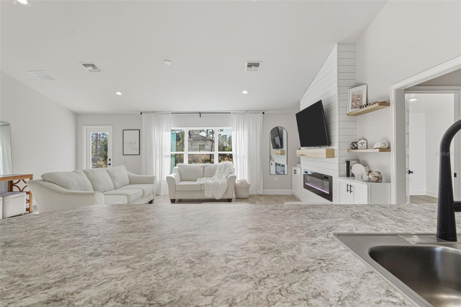 Do you love that Minimalistic, Modern Farmhouse vibe? Do you go crazy for custom shiplap walls? If so, then WELCOME HOME! You are sure to fall in love with this 2023 built, 3 bedroom, 2 bathrooms, Beautiful home, chalked full with custom upgrades. Pulling up to the property you quickly notice the expansive driveway, perfect for parking a boat and multiple vehicles. Walking up to the front door you are greeted by an inviting front porch with a comfortable sitting area. Once in the home, your eyes are automatically drawn to the Custom Shiplap Wrapped Fireplace with custom built-ins. Feeling the warmth from the abundance of natural light cascading onto the wood plank tile through a number of large windows and immediately you get the feeling that this is HOME! Glance over to the right and you'll find the heart of the home, a large kitchen with copious amounts of counter space and everyone's favorite white cabinets. Accenting and highlighting this already great space are upgraded Samsung Bespoke appliances. This home features an open, split floor plan with the primary bedroom off to the left and 2 additional spacious guest bedrooms, complete with luxury vinyl plank flooring, to the right. The large primary bedroom is sure please, especially once you enter into the primary en-suite. Here you will find a double sink vanity, walk in shower and magazine worthy shiplap accents throughout the space. Located in a desirable area of Port Charlotte with quick access to some of the areas best shopping and restaurants. So don't let your dream Florida home become someone else's address, setup your showing today!