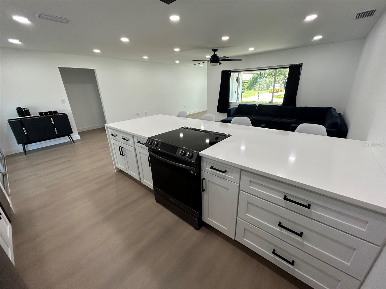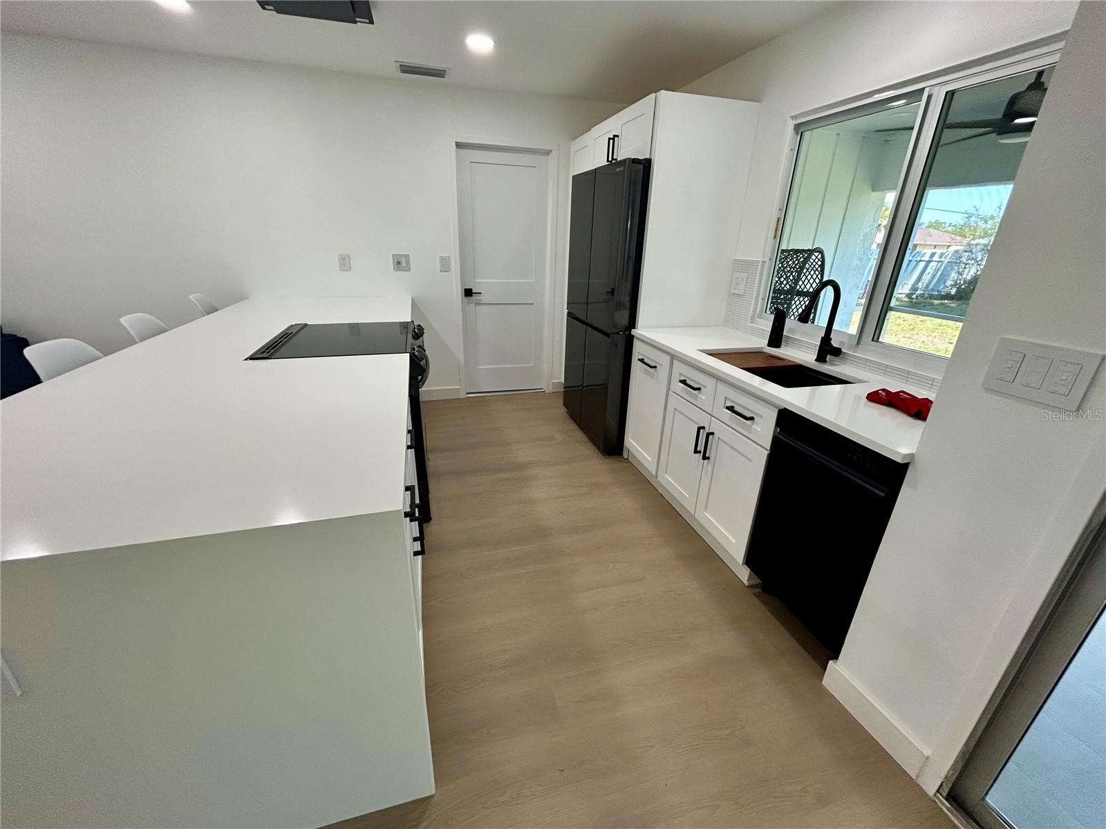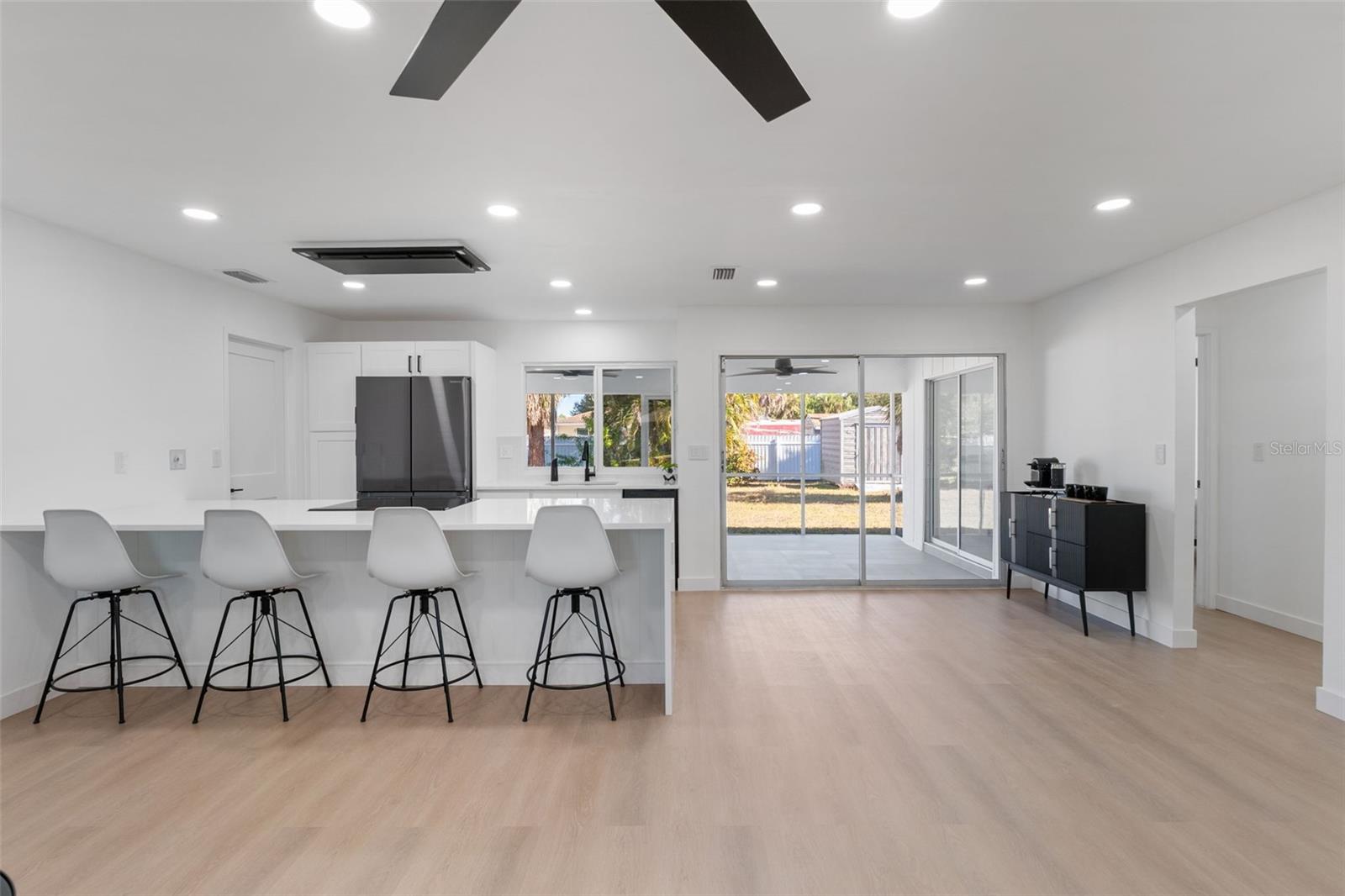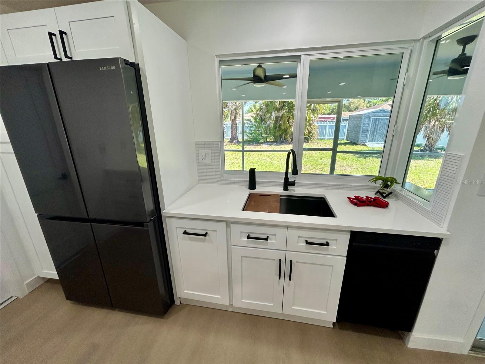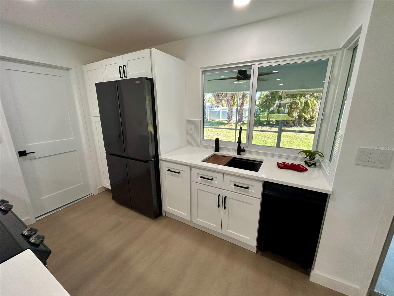 Price improvement – now offered at $299,900. This MUST-SEE 2-bedroom, 2-bath home truly sets itself apart, offering a level of upgrades, efficiency, and modern design rarely seen in comparable homes. Extensively updated, storm-ready, and smart-enabled, this corner-lot home features a metal roof, impact windows, and a designer kitchen. Thoughtfully improved from top to bottom, the property delivers long-term value, durability, and peace of mind while seamlessly blending modern style, technology, and functionality. Inside, the home showcases new luxury vinyl plank flooring throughout, fresh high-quality interior paint, updated trim and baseboards, new interior doors and hardware, modern bi-fold closet doors, and custom closet inserts. The kitchen is a true focal point, featuring quartz countertops, a 10+-foot waterfall peninsula with deep seating, a matching quartz lanai pass-through, stainless steel Samsung appliances, and a flush ceiling-mount Victory hood vent—a sleek, high-end feature that enhances both design and ventilation. The open-concept kitchen overlooks the living room, creating a natural flow ideal for everyday living and entertaining. Hi-hat ceiling lighting, new ceiling fans, and Lutron Caseta smart dimmable switches enhance comfort and ambiance throughout the home. The primary suite includes a private en suite bath, while the split-bedroom floor plan offers added privacy for family or guests. Both bathrooms have been fully remodeled and feature anti-fog LED smart mirrors and Bluetooth-connected exhaust fans. The laundry area is equipped with a Samsung washer and dryer with pedestals. Major system upgrades include new A/C ductwork, a 2022 water heater, hurricane impact windows, an impact-rated double front entry door with a Schlage smart lock, and an impact garage door with a Chamberlain smart motor. A key differentiator is the metal roof, which adds meaningful long-term value—particularly for buyers seeking durability, storm readiness, and lower-maintenance ownership. Combined with impact-rated windows and doors and integrated smart technology, this home offers a level of efficiency, protection, and convenience. Outdoor living is equally well-appointed with a newly tiled screened lanai featuring two ceiling fans, a fully fenced backyard with ample space for kiddos, pets, and recreational toys, plus a storage shed. Smart security features include a Ring video doorbell and Ring floodlight cameras. Fresh exterior paint, updated front landscaping with modern rain chains, and contemporary exterior lighting complete the exterior. Conveniently located near restaurants, shopping, and everyday conveniences, this home is just minutes from downtown Punta Gorda, waterfront parks, dining, and community events—offering modern comfort and an exceptional Southwest Florida lifestyle. Be sure to check out the unbranded virtual tour link.