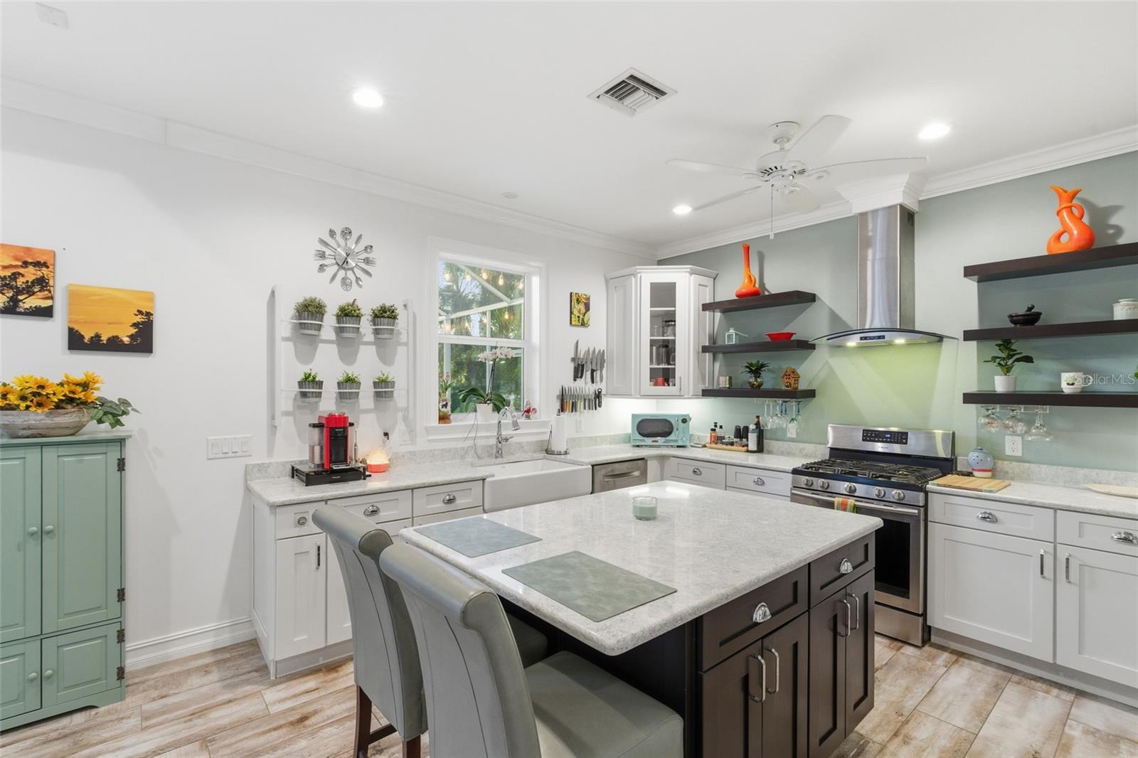Welcome to Blueberry Bungalow, a thoughtfully designed coastal retreat where craftsmanship, comfort and character come together beautifully. Tucked away yet close to everything Port Charlotte has to offer, this canalfront home feels peaceful and private while still being minutes from shopping, dining, medical facilities and everyday conveniences. Custom built by the highly respected Thornberry Custom Builders, this home was designed with intention from the ground up. From the moment you step inside, natural light fills the open living space, highlighting soaring ceilings, quality finishes and a calming color palette inspired by the waters of Boca Grande. The signature wall color, Quietude, sets the tone for a home that instantly feels relaxed and welcoming. The family room is anchored by a cozy gas fireplace, creating a natural gathering space that feels warm and inviting. The kitchen is both functional and full of personality, featuring Cambria quartz countertops, shaker-style wood cabinetry with dovetail soft-close drawers, stainless steel appliances and gas cooking. A barn door adds character while providing discreet access to the pantry, and the large island offers plenty of space for casual meals, entertaining or everyday living. Plank tile flooring flows throughout the home, complemented by crown molding, 5¼-inch baseboards and tall interior doors that enhance the sense of openness. Built for efficiency, durability and peace of mind, the home includes a metal roof, impact windows, spray foam insulation, hurricane tie-downs, gas fireplace, gas water heater, gas dryer and an elevated stem wall for added height and protection. Additional features include an RV hookup and a 50-amp connection for a future shed, offering flexibility for storage, travel or hobbies. Outdoor living is just as special, with two distinct exterior spaces designed for different moments. The expansive screened birdcage offers the perfect place to gather, entertain or unwind while enjoying the outdoors. The private purple porch serves as its own spa-like retreat, complete with an infrared sauna that turns everyday living into a true self-care experience. The primary suite is spacious and serene, offering room for a king-size bed, a sitting or desk area, two closets including a walk-in, and a well-appointed ensuite with dual sinks, a makeup vanity, a walk-in shower and a linen closet. Doorways throughout the home are wheelchair accessible, reflecting the thoughtful design woven into every detail. Thoughtfully designed for easy Florida living, the home features front and rear covered porches, a spacious screened birdcage and peaceful canalfront views that invite you to slow down and enjoy the outdoors year round. With no immediate neighbors on either side and an optional adjacent parcel available, privacy and flexibility are rare bonuses that make this property feel even more special. Adding even more opportunity, the adjacent parcel to the right of the home is available for purchase with the sale and includes a shed currently located on the lot. Whether used for added privacy, storage or future plans, it provides flexibility rarely found. Blueberry Bungalow is not just a home, it is a lifestyle. A place to slow down, gather, retreat and truly enjoy where you live!