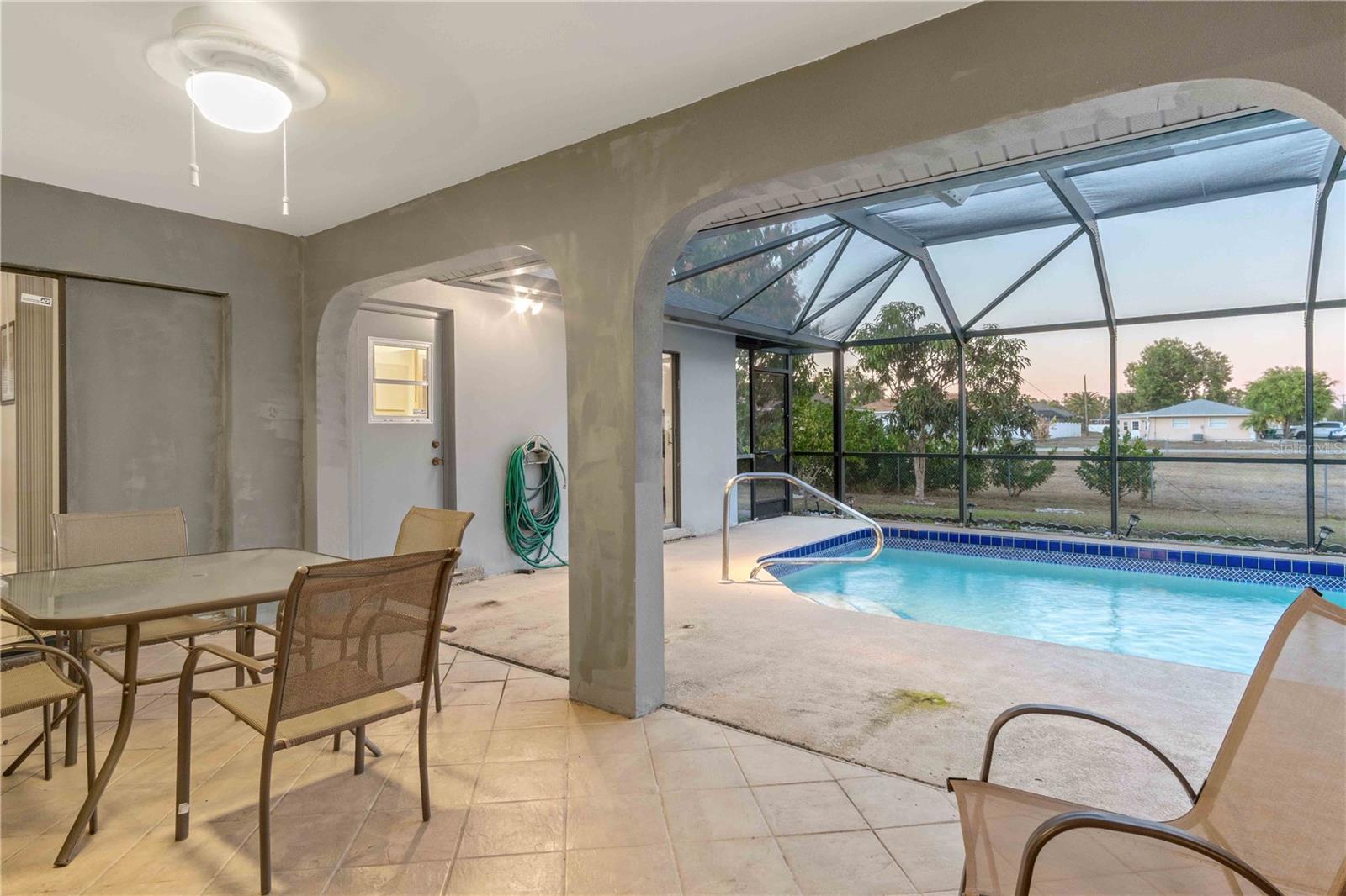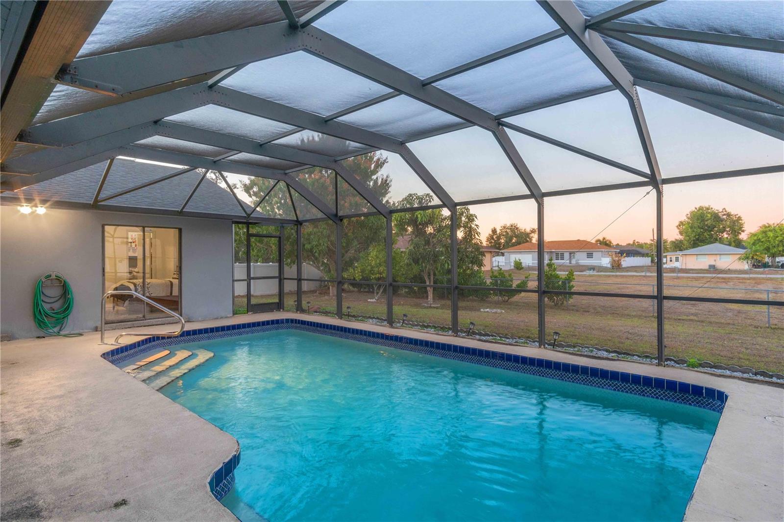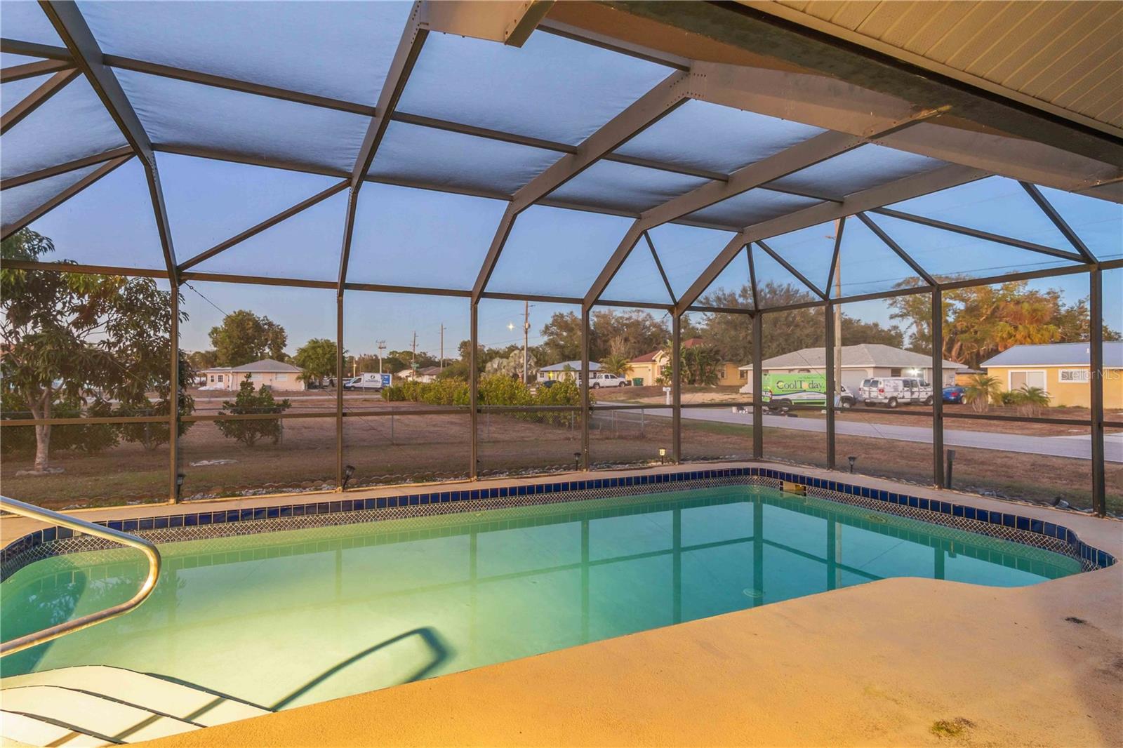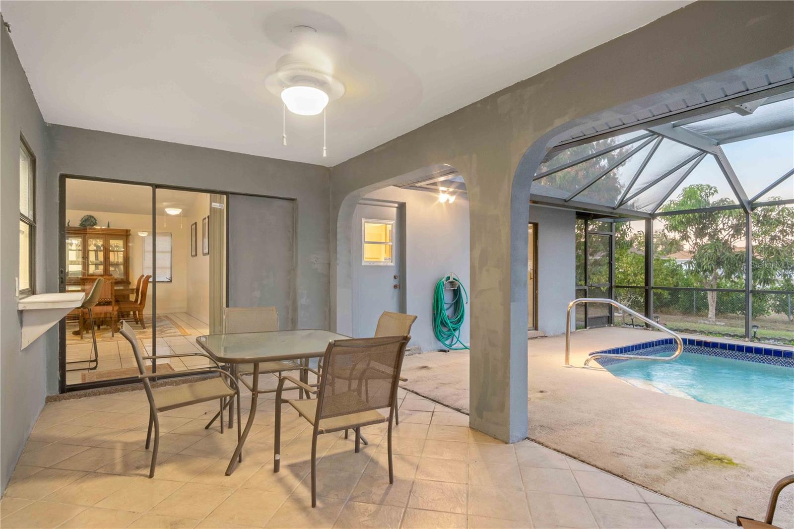 Corner-lot pool home in a quiet, no?n-HOA neighborhood! This well-maintained 3-bedroom, 2-bath, 2-car garage home offers nearly 1,800 sq ft of living space plus a private screened lanai and pool — perfect for Florida living. No deed restrictions, no flood zone, and no carpet anywhere.? With just a little cosmetic updating, this home has the potential to truly shine and become a standout.? Inside, vaulted ceilings and pocketing sliding glass doors in both the living and family rooms create a bright, open feel while framing beautiful pool and backyard views. The kitchen features a breakfast bar, pass-through window to the lanai, and easy flow between the family room, living room, and formal dining area — ideal for entertaining.? The split floor plan provides privacy with a spacious primary suite offering direct pool access, dual walk-in closets, and an en-suite bath with dual sinks and a walk-in shower. Both guest bedrooms also include walk-in closets, and one has sliding doors to the pool. The guest bath doubles as a pool bath with exterior access.? Enjoy relaxing or entertaining on the screened lanai with ceiling fan overlooking the pool and backyard. Major updates include a new roof (2021) and hot water heater (2023).? Conveniently located near shopping, dining, the Braves and Rays stadiums, public boat launches, and Gulf beaches. This move-in-ready pool home offers comfort, flexibility, and a prime Florida lifestyle — schedule your private showing today!
