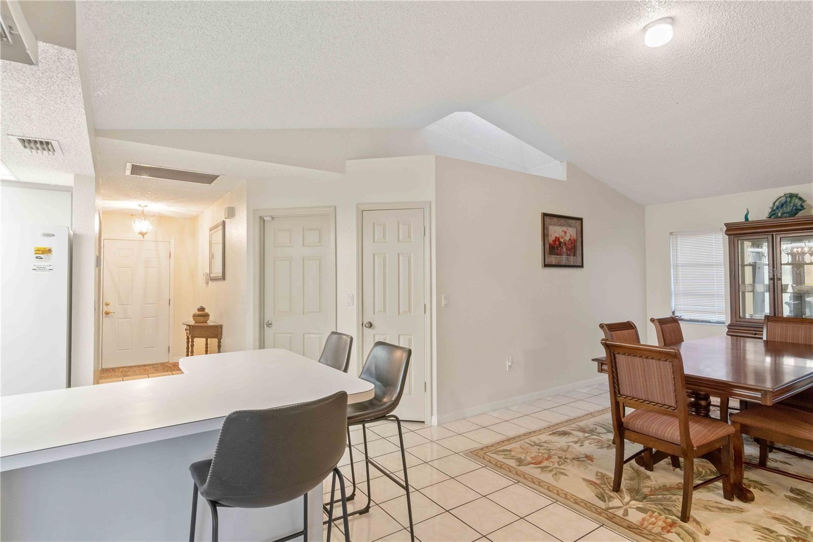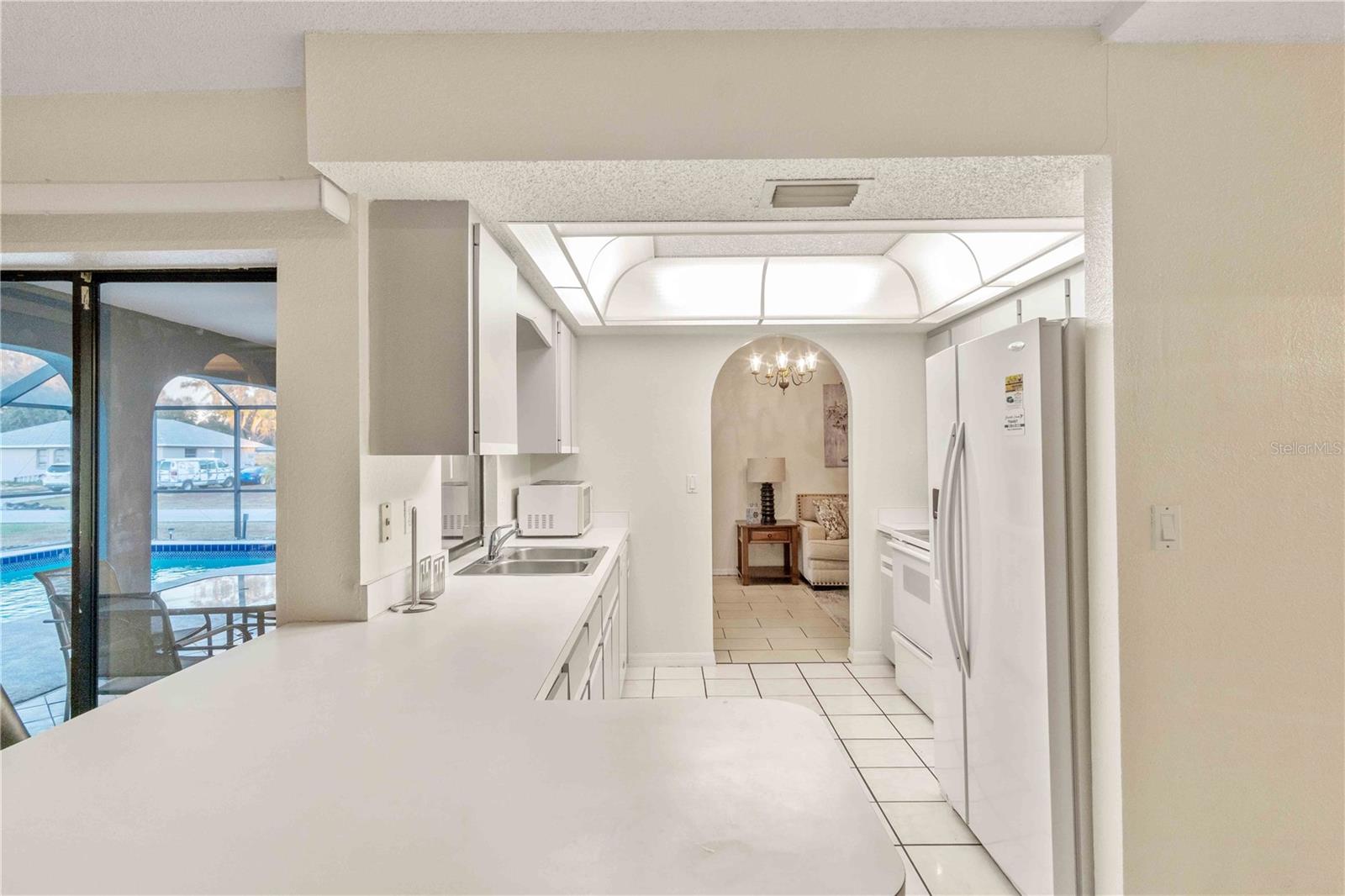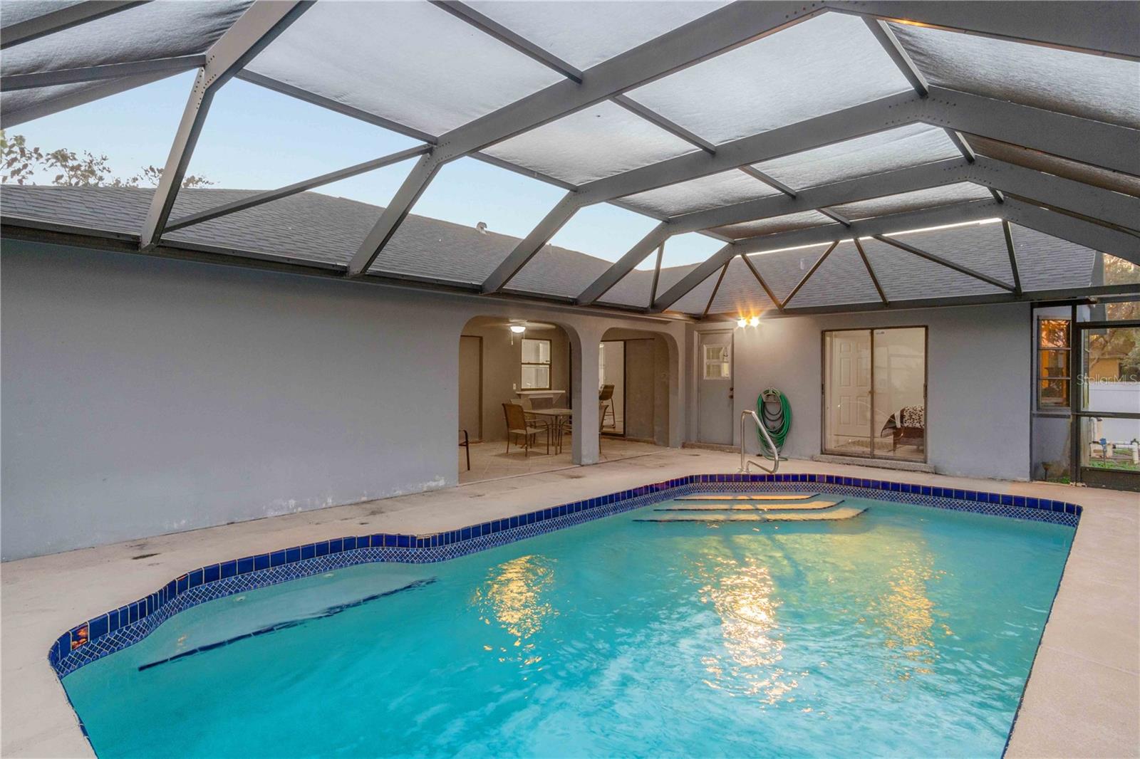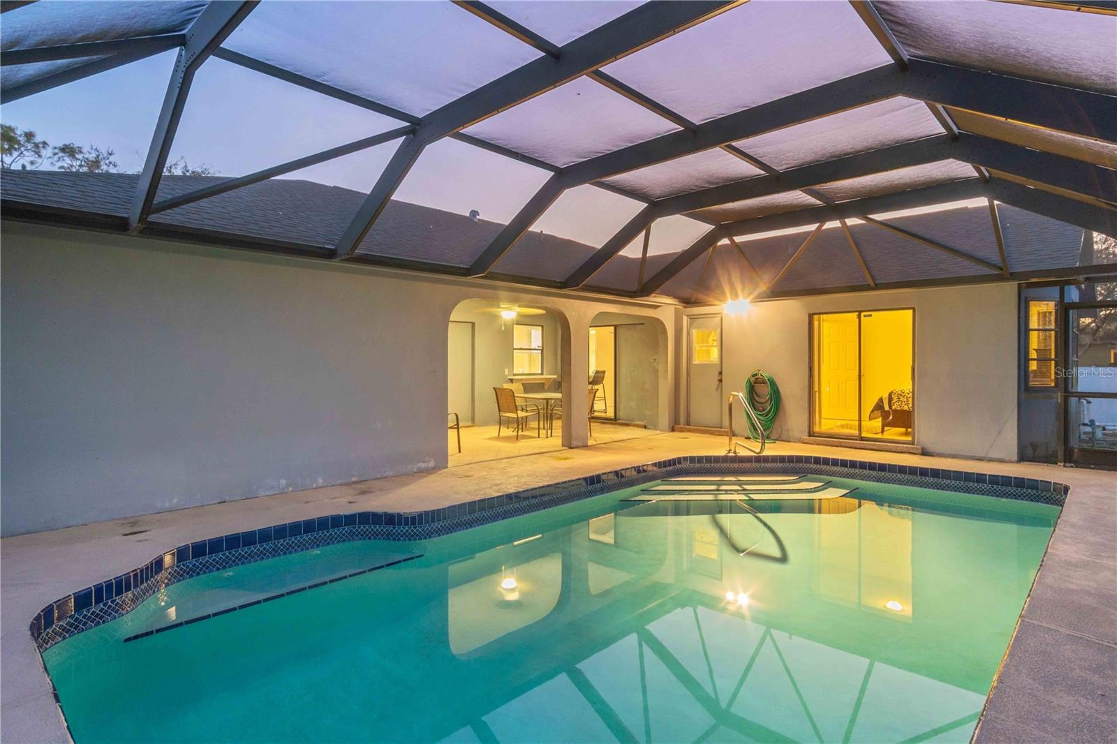 Corner-lot pool home in a quiet, no?n-HOA neighborhood! This well-maintained 3-bedroom, 2-bath, 2-car garage home offers nearly 1,800 sq ft of living space plus a private screened lanai and pool — perfect for Florida living. No deed restrictions, no flood zone, and no carpet anywhere.? With just a little cosmetic updating, this home has the potential to truly shine and become a standout.? Inside, vaulted ceilings and pocketing sliding glass doors in both the living and family rooms create a bright, open feel while framing beautiful pool and backyard views. The kitchen features a breakfast bar, pass-through window to the lanai, and easy flow between the family room, living room, and formal dining area — ideal for entertaining.? The split floor plan provides privacy with a spacious primary suite offering direct pool access, dual walk-in closets, and an en-suite bath with dual sinks and a walk-in shower. Both guest bedrooms also include walk-in closets, and one has sliding doors to the pool. The guest bath doubles as a pool bath with exterior access.? Enjoy relaxing or entertaining on the screened lanai with ceiling fan overlooking the pool and backyard. Major updates include a new roof (2021) and hot water heater (2023).? Conveniently located near shopping, dining, the Braves and Rays stadiums, public boat launches, and Gulf beaches. This move-in-ready pool home offers comfort, flexibility, and a prime Florida lifestyle — schedule your private showing today!