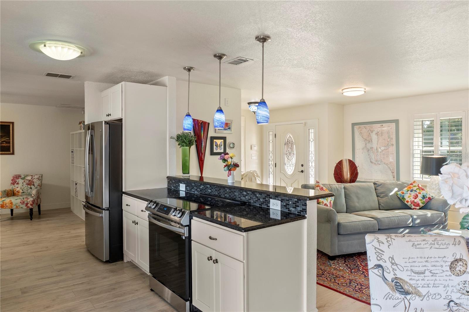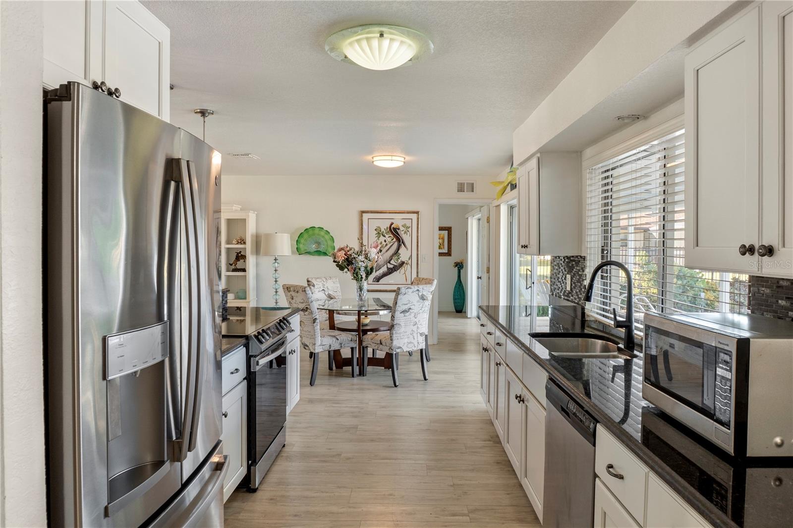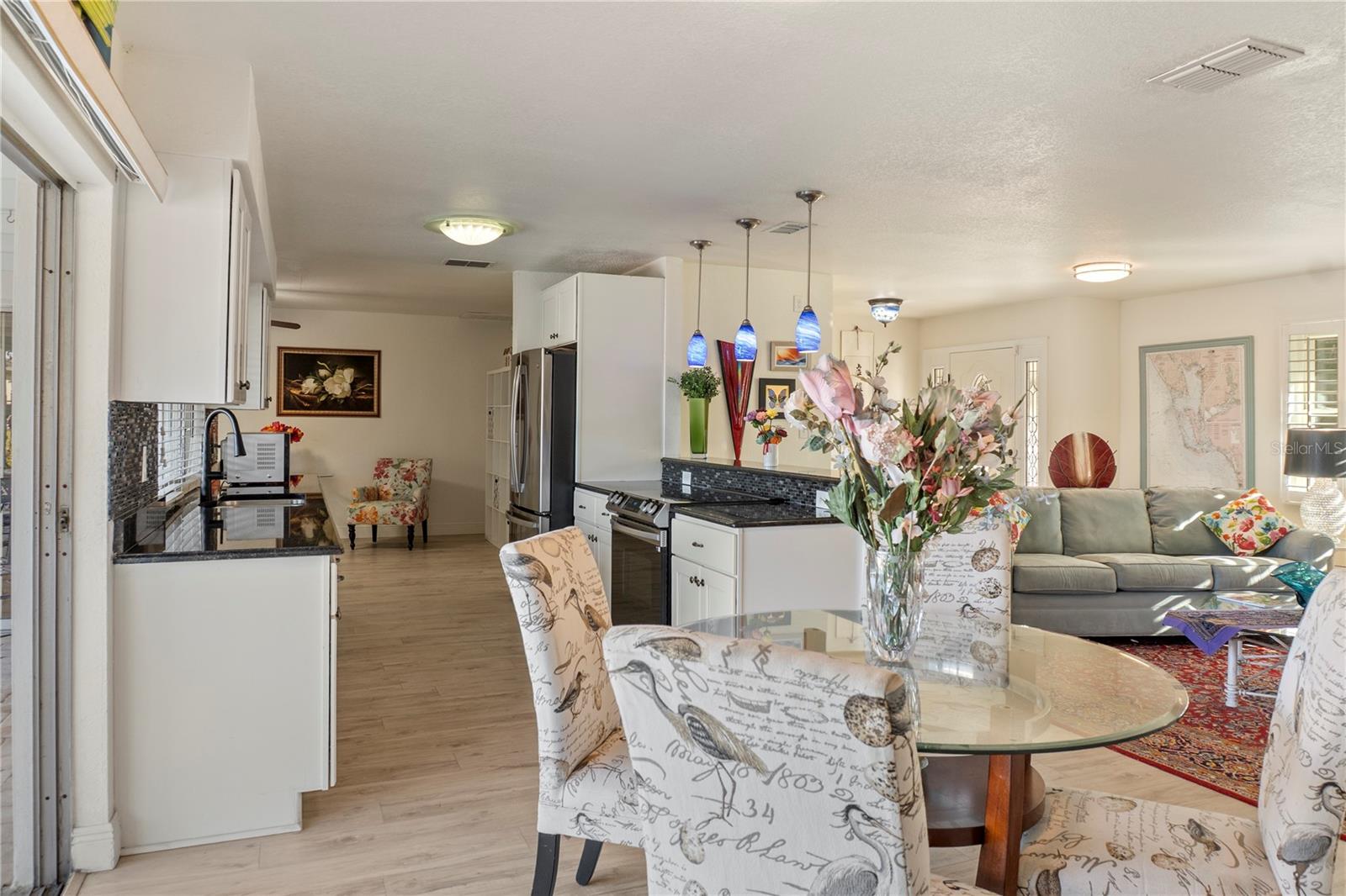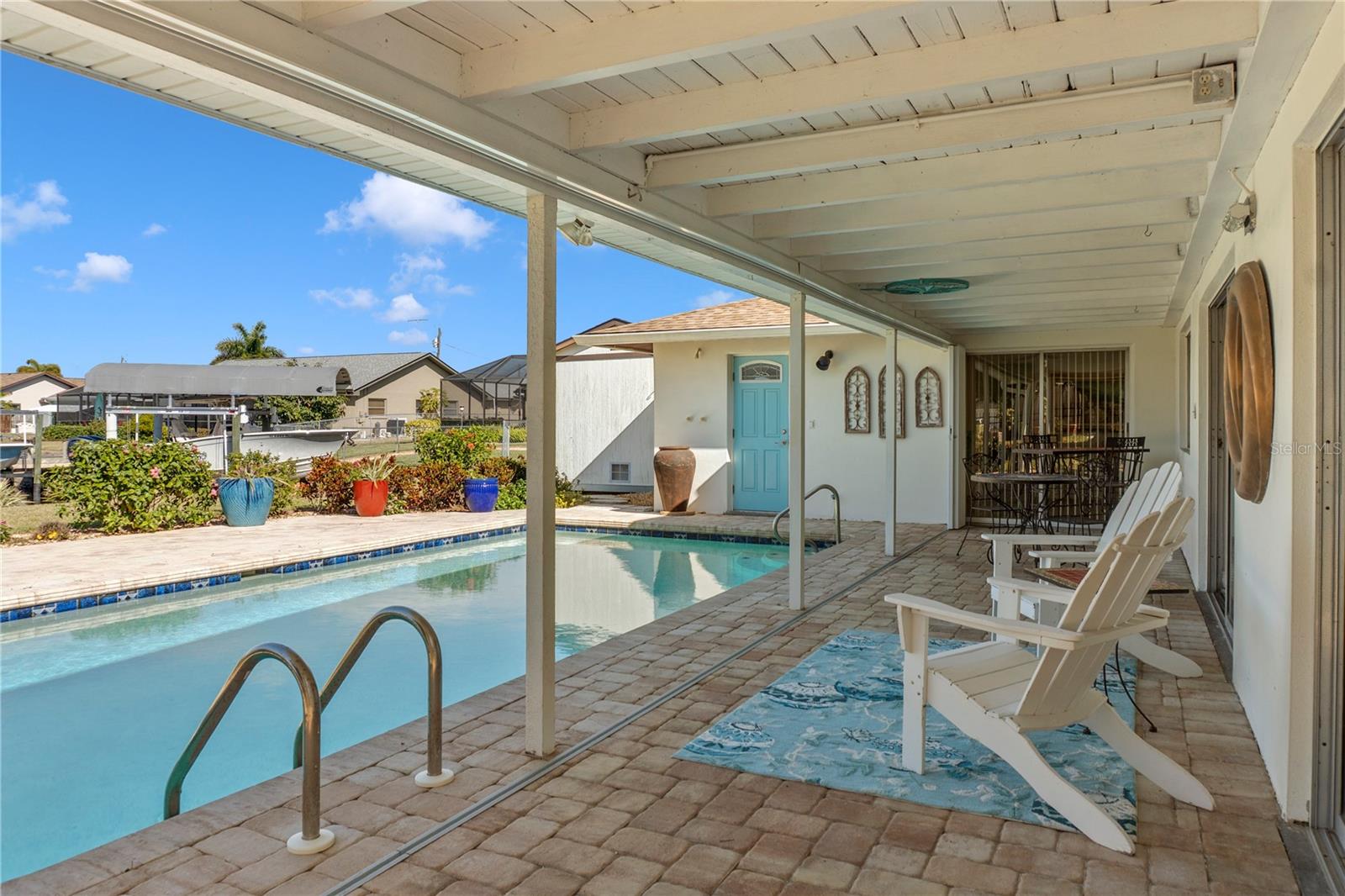 Get your bait & tackle ready! Waterfront living is here with quick and easy access to big water. This beautifully updated 3-bedroom, 2-bath pool home with a 2-car garage is located along the Myakka River, which flows directly into Charlotte Harbor and the Gulf of America. Positioned at the end of a canal on the Boyle Waterway just beyond the El Jobean Bridge, the property offers a beautifully unique water view that is rarely found directly on the river. Inside, the home features a split floor plan with 1,679 sq ft of living space, luxury vinyl flooring throughout, and an open, functional layout. The updated kitchen includes black granite countertops, shaker-style cabinetry, solid wood construction, and modern appliances, including a wine refrigerator. The primary suite offers a walk-in closet and an updated en-suite bathroom with a walk-in shower. Recent improvements provide peace of mind, including a new roof (2023), updated electrical panel and service, luxury vinyl flooring (2023), accordion hurricane shutters (2023), hurricane-rated windows (2020), retextured walls and ceilings (2022), a Tuff Shed (2023), and a replaced driveway (2019). The outdoor living space includes a private in-ground pool, covered and open patio areas, an outdoor shower, and a fenced yard. Relax poolside while enjoying the sights of mullet jumping in the water and scenic canal views looking straight down the waterway toward the Myakka River. Located in the Gulf Cove community with no mandatory HOA. Optional membership provides access to the community park and private boat ramp. Conveniently located near Boca Grande & Englewood beaches, marinas, golf courses, dining, and world-class fishing. Paradise is calling—welcome home.