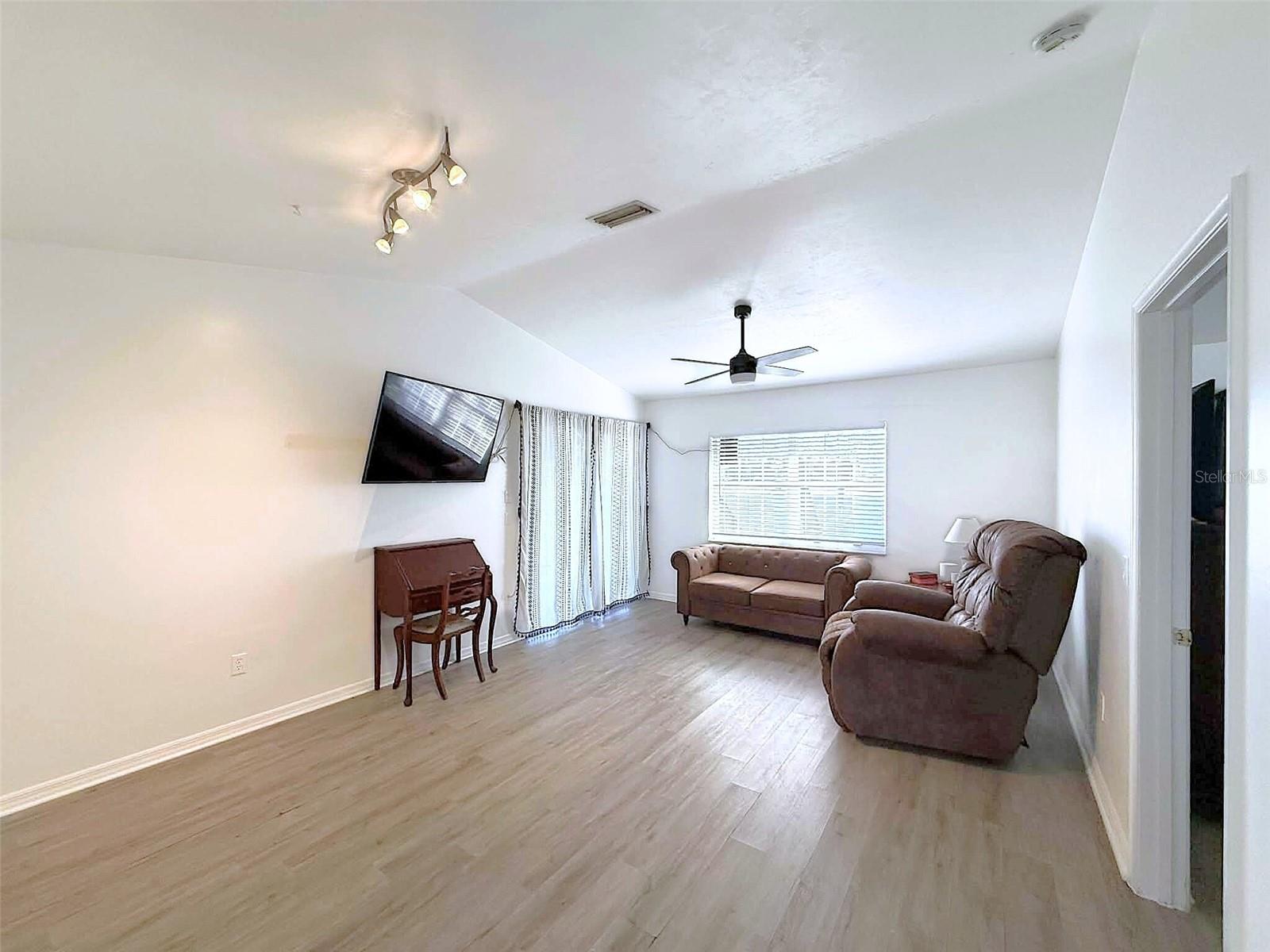 Experience the essence of Florida living in this charming 2-bedroom, 2-bath residence tucked within the peaceful Shadowmoss community in the heart of Port Charlotte—a home that truly deserves to be seen in person. Enter the home through the screened front porch to discover a spacious living room enhanced by stylish laminate flooring and soaring ceilings that create an open, airy ambiance. The kitchen features ample cabinetry and counter space, complemented by a spacious pantry closet & a functional breakfast bar that provides seamless connectivity between the kitchen, dining, and living areas. With its generous area, the living room is perfect for gatherings of friends & family. The bedrooms are positioned on opposite sides of the home where both you & your guests can enjoy quiet, undisturbed spaces! In the master suite, you will find a large window offering a tranquil scene to greet you every morning, as well as en-suite bathroom. The guest bedroom is spacious and features a ceiling fan as well as a built-in closet. The adjacent guest bathroom includes a shower and tub combo with tiled walls. The sliding glass doors provide access to the lanai, which is enclosed with glass windows, tile flooring, and offers an exit to a large, private backyard that allows for comfortable enjoyment of Florida evenings and sunsets. This property offers security and insurance savings with concrete block construction, a roof that is six years old, and hurricane shutters. Additionally, the air conditioning unit is only four years old. Shadowmoss is a deed restricted community with access to the Oak Hollow community recreation center offering an impressive array of amenities designed to enrich your lifestyle, from a fitness center to pickleball, shuffleboard, tennis, basketball, badminton and more. Its prime location places you close to dining, shopping, Home Depot, and only minutes from the Tampa Bay Rays spring training complex and the vibrant, historic downtown Punta Gorda. Schedule your private showing today and experience firsthand the inviting charm and effortless Florida lifestyle this exceptional home offers.