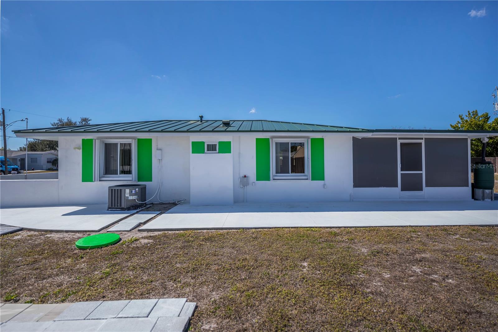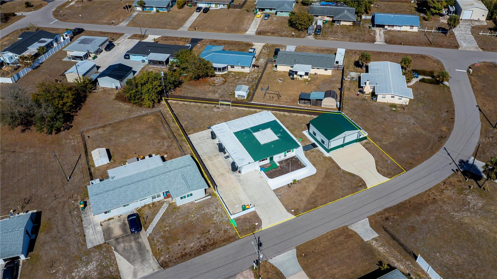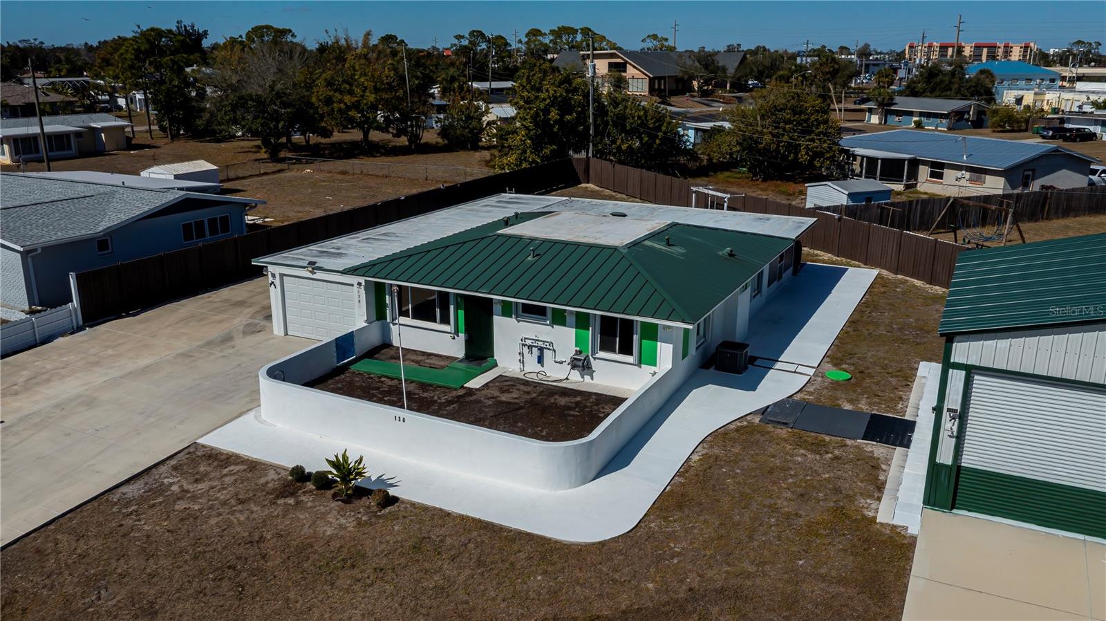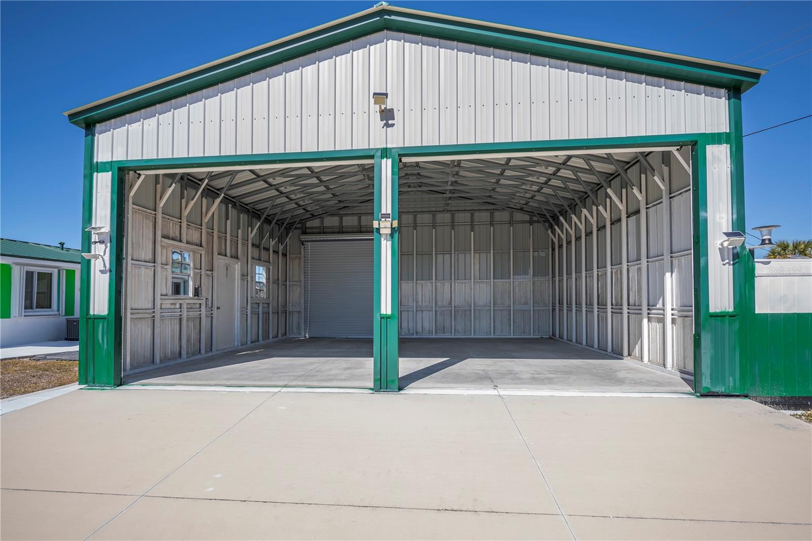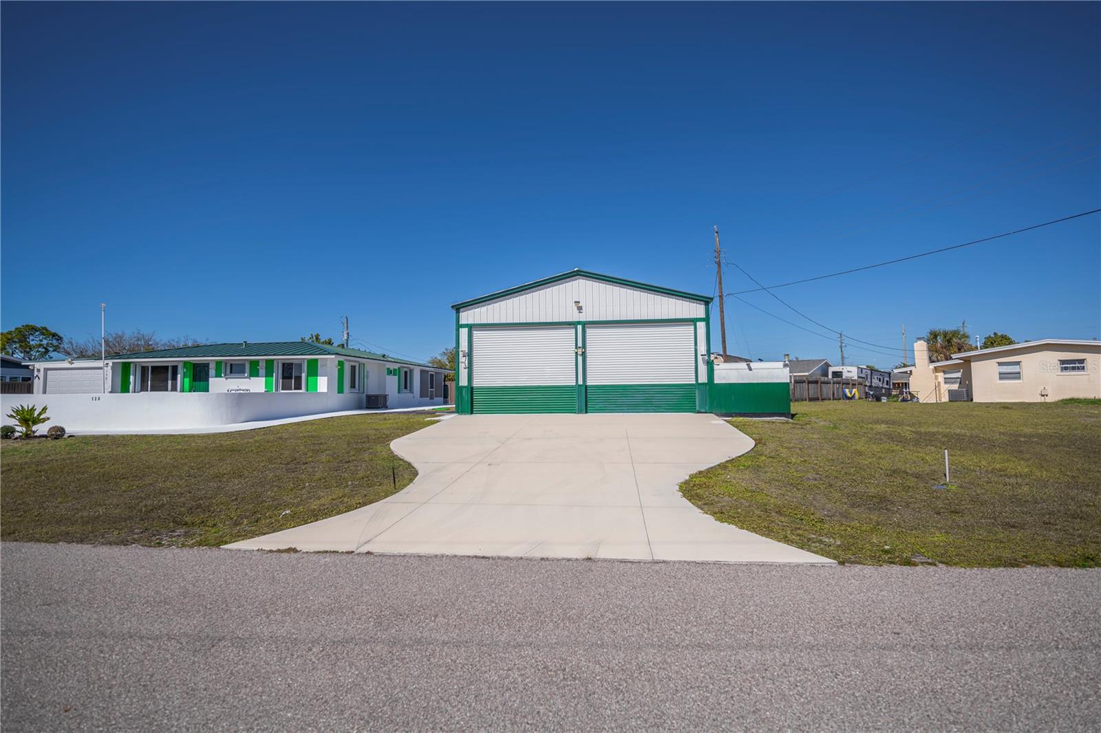 DETACHED GARAGE ALERT! Welcome to your opportunity to live and play with this charming 2-bedroom, 2-bath rural retreat home perfectly situated on an oversized lot with exceptional amenities designed for contractors, car enthusiasts, Gardeners,RV owners, and hobbyists alike! This property boasts a massive 52-foot deep side tandem carport secured with industrial roll-up doors—capable of fitting two cars deep. But the true highlight is the enormous 28x25- 700 sq ft detached metal garage, built in 2023, featuring three 10-foot roll-up doors and two spacious bays. This robust structure offers superior protection and storage for your tools, materials, toys, and vehicles—a dream come true for anyone needing extra workspace or shelter. Inside, the home impresses with gleaming epoxy flooring throughout, a convenient galley kitchen with ample cabinetry, and durable epoxy counters with a pop of art deco colors.There is a nice sized living room up front as well another space to unwind in back just off the kitchen as well as an inside utility/laundry room. Both bedrooms are full sized with closet space and lots of natural light. Two well-maintained bathrooms with one boasting a jetted tub complement the cozy, cheerful cottage ambiance, making you feel like you're always on vacation. Enjoy entertaining easily or relax peacefully with the huge sunroom privacy screened. This huge outdoor living overlooks the solidly fenced backyard, featuring sturdy and long lasting 20k composite and steel fencing complete with 25 year warranty. Adding ambiance and style to this home has a standing seam 100 year METAL Roof. GARDENER ALERT....there is much more for you! The front yard provides 50 yards of organic soil ready for your personal natural garden. It is enclosed with 3 foot concrete walls safe guarding your crops from the wind and adds extra privacy around your doorway. Grow your own grapes or other exotics with the custom arbors in the back yard bathed in natural sunlight. Here, water conservation is prioritized with three large cisterns along the outside, plus the home features a 3M 4 stage water osmosis system delivering bottle-quality water straight from your tap.Other added features include newer electric panel, accordion storm shutters, underground electric & internet. Added in 2022, 80 feet of concrete driveway ensures ample, convenient parking. This property comes with no HOA or deed restrictions, giving you full freedom to bring your ideas and dreams to life. Don’t miss this unique opportunity to own a versatile home with unmatched workspace and protection. Schedule your visit today!
