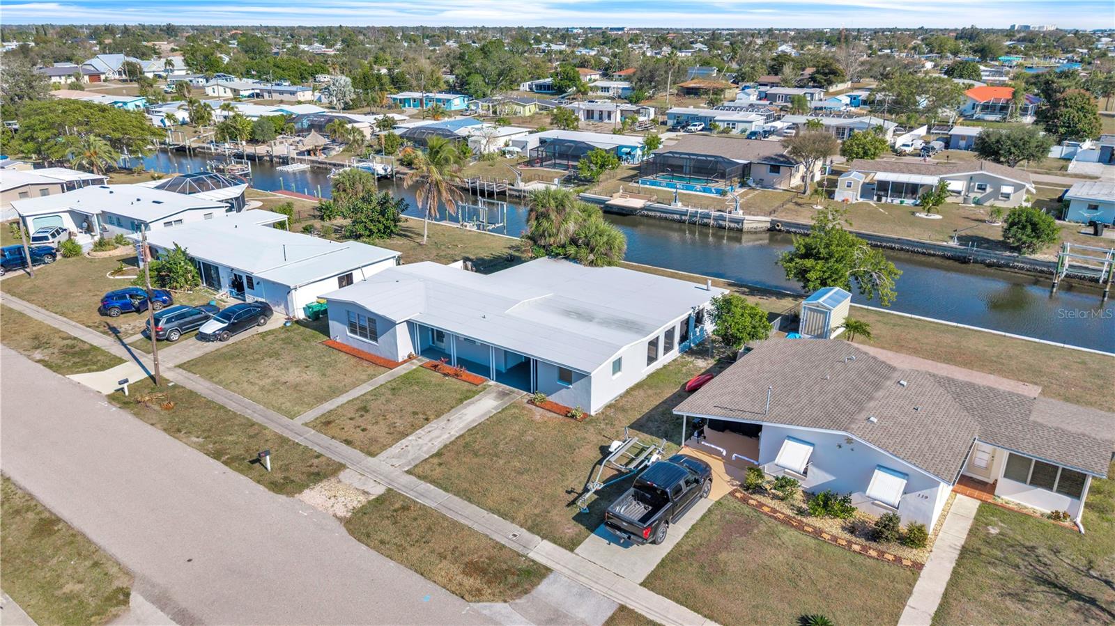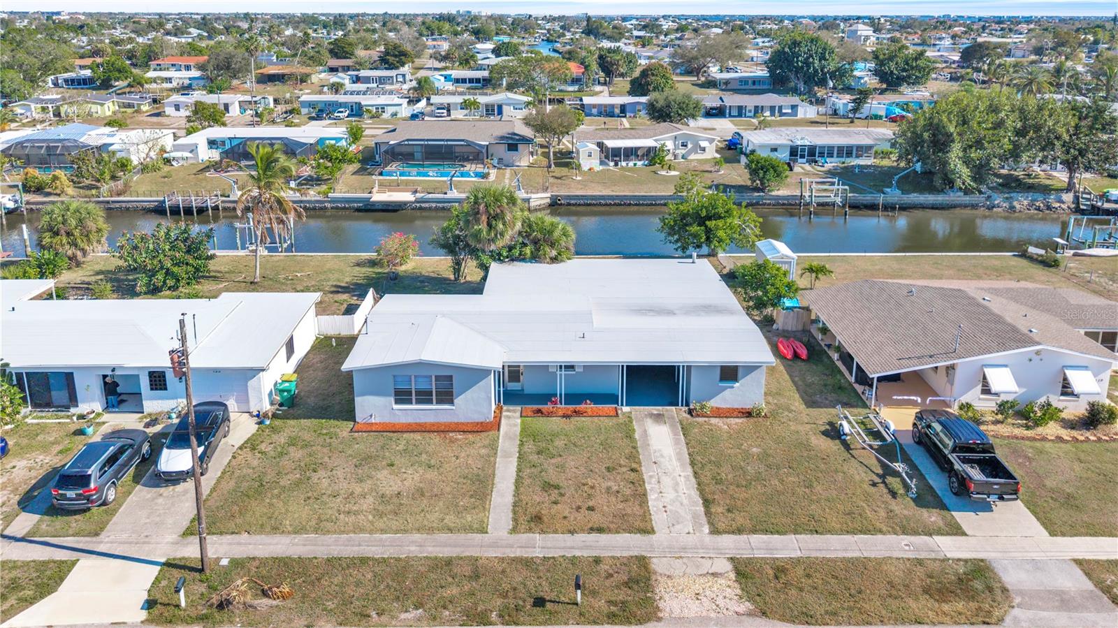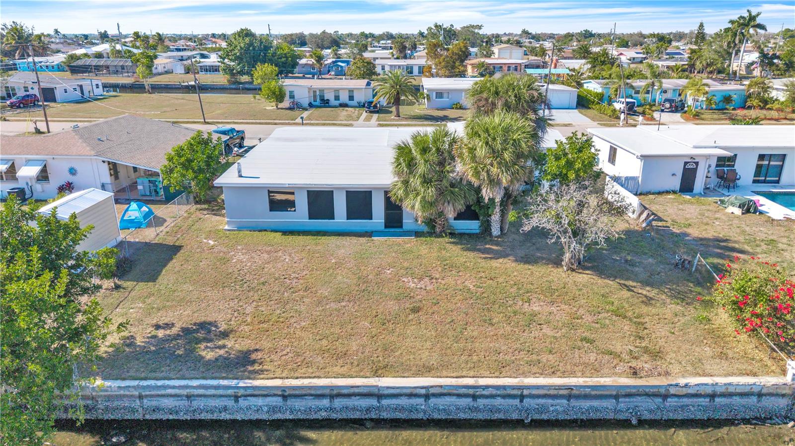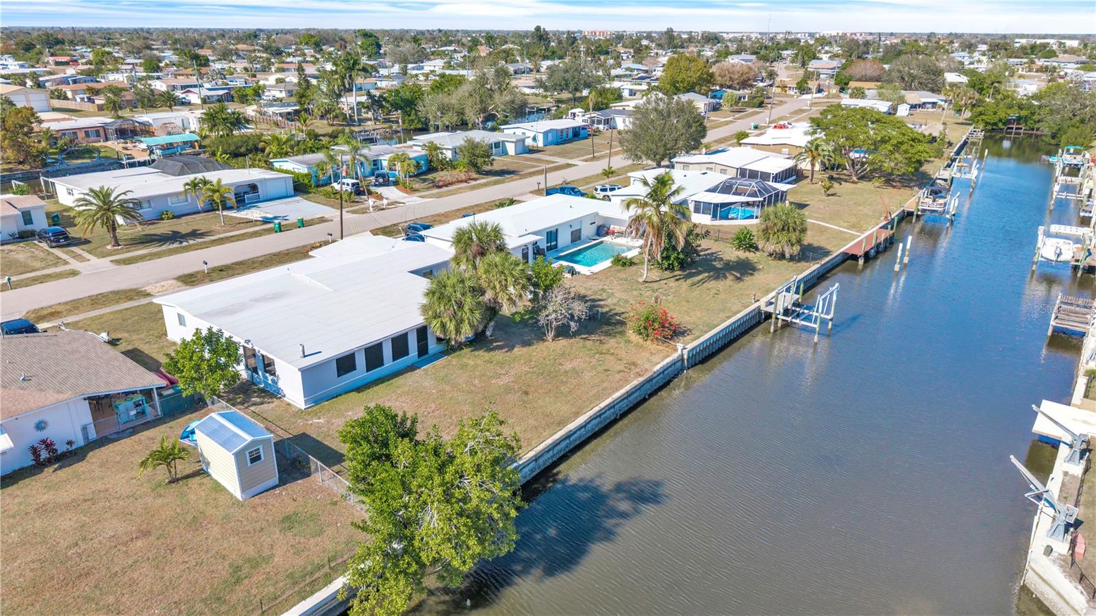 Welcome to your waterfront retreat, where every day feels like a vacation. Boating access with quick open-water convenience makes spontaneous water adventures effortless. The 1,400 sq ft screened-in lanai under roof, complete with a large fireplace, is the heart of the home and perfect for entertaining, relaxing, or enjoying serene waterfront views year-round. Recent updates include a newer roof, three brand-new mini-splits, new tile flooring, updated bathroom, and replaced windows in the living room and bathroom. Practical features include a carport with storage areas on both sides, with one side ready to become a home office or game room. You could easily add a mini-split for comfort. With thoughtful upgrades, waterfront living, and lifestyle-ready spaces, this home is ready for you to bring your boat and start enjoying the water.