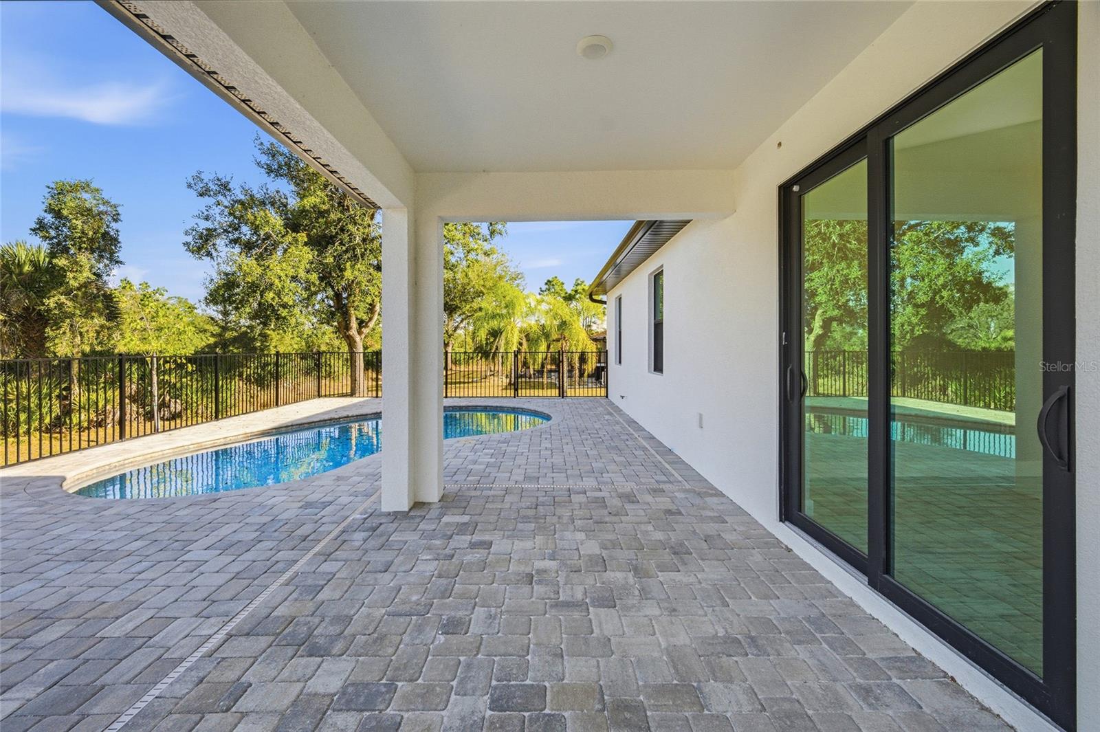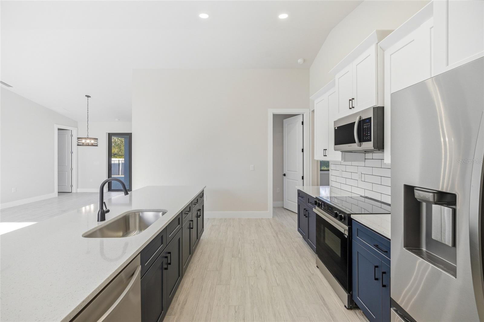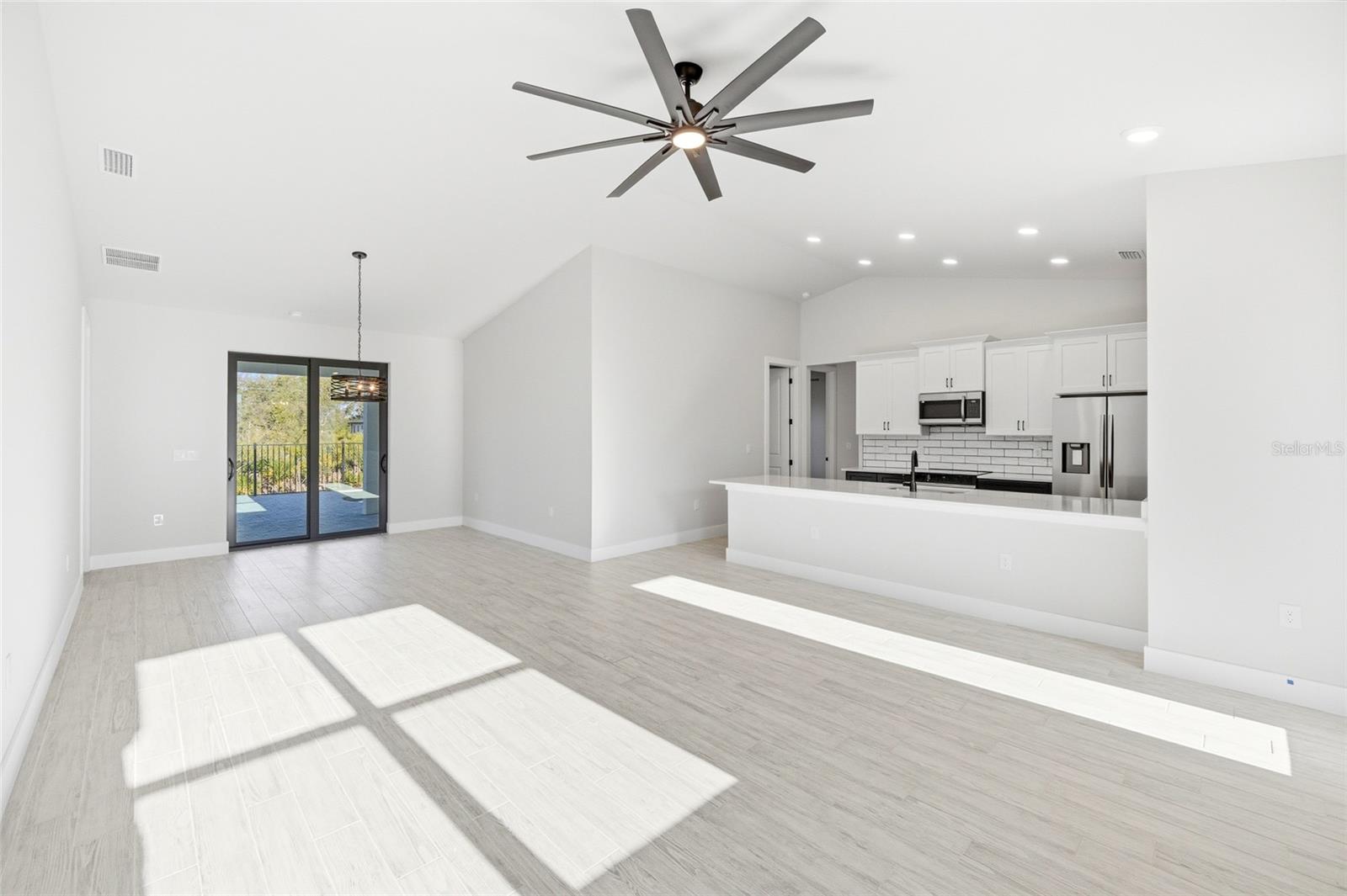 Be the first to live in this stunning new construction by Douglas Brooke Homes. This spacious 4-bedroom, 2-bathroom home features over over 1700 square feet of thoughtfully designed living space, complete with a 3-car garage and private pool. Step inside to an open-concept floor plan with soaring ceilings and elegant wood-look tile throughout the main living areas. The great room flows seamlessly into a chef-inspired kitchen with quartz countertops, stainless steel appliances, a large center island, and a walk-in pantry. A vaulted-ceiling dining area sits just off the kitchen, overlooking the backyard and pool. The primary suite offers dual walk-in closets and a spa-style bathroom with double vanities and a glass walk-in shower. Three additional bedrooms and a full guest bathroom provide plenty of room for family or visitors. Enjoy peace of mind with impact-resistant windows and doors, a smart home system, in-wall pest control, and a pool alarm. The home also includes a spacious laundry room with sink and ample storage throughout. Conveniently located near shopping, restaurants, hospitals, boat ramps, and more.