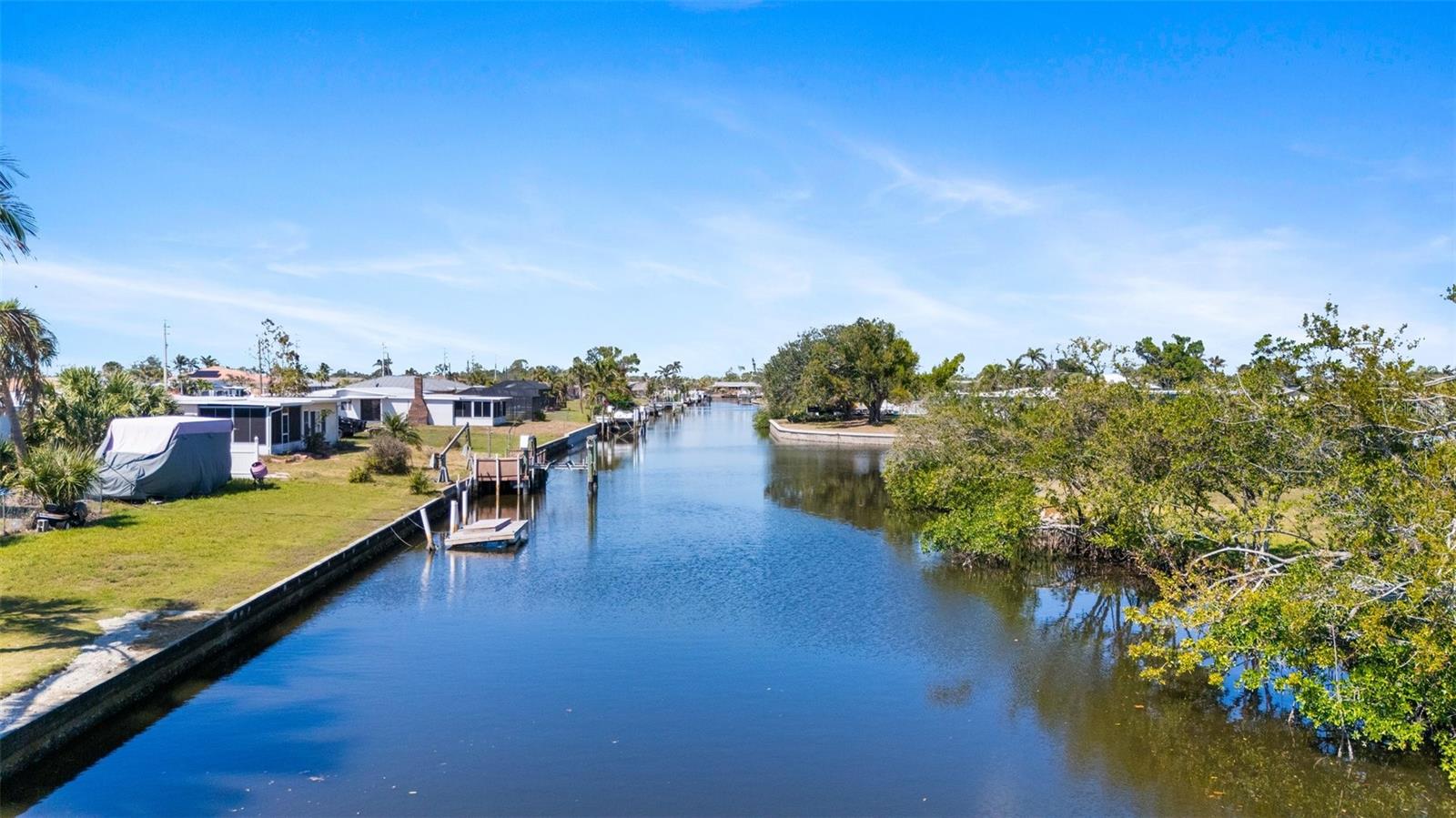 Waterfront property with a dock and covered boat lift offering quick boating access to Charlotte Harbor, the Peace and Myakka Rivers, and the Gulf. Enjoy relaxing by your private heated pool or take your boat to Manasota Key or Boca Grande. This beautifully renovated 2-bedroom, 2-bath home features water views from nearly every room. Enter into an open living space with newer porcelain tile flooring (2024) that flows through the kitchen, dining area, and Florida room. The living room opens to the Florida room, which provides direct access to the pool and screened-in lanai. The updated kitchen offers quartz countertops, ample cabinet space with new lower cabinets, and is positioned between a dining area on one end and a dinette space on the other. The spacious primary bedroom features terrazzo floors, a large walk-in closet, and an updated en-suite bathroom. A second bedroom is located down the hall, along with a fully updated guest bathroom conveniently positioned near the living area. The screened-in lanai, located just off the kitchen and Florida room, is the perfect place to enjoy Florida’s beautiful weather. The landscaped backyard includes solar lighting and a fully fenced yard with a double-door gate on the left side of the home, opening to a paved area ideal for boat trailer or vehicle storage. The one-car garage includes a laundry area with washer and dryer, storage cabinets, a second refrigerator, a workspace, and additional storage. Two exterior storage sheds provide space for gardening tools and equipment. Bahama shutters on the front windows can be lowered for added protection. Included with the home are outdoor dining furniture for the lanai, poolside and dock furniture, Ring cameras, a Predator generator, lawn mower, and pool cover. Recent Updates: New porcelain tile flooring (2024), New 6-panel doors (2024), Impact windows throughout, New HVAC system (2025), New roof (2021), New pool heater (2021), New seawall, dock, and boat canopy (2020–2021), New electrical panel with surge protection and generator interlock (2021), Kevlar hurricane shutters for garage windows and door, Screened-in front door, lanai, and garage door (2022), New insulation (2022). New Dam Easy flood barriers. Conveniently located near two premier Charlotte County parks—Charlotte Beach Park with shuffleboard, tennis, and bocce ball courts (currently undergoing a $32.7 million reconstruction, reopens Dec 2026), and Gaines Veterans Park featuring a modern playground, lookout tower, and kayak launch. Just minutes from shopping, dining, beaches, and outdoor recreation. Don’t miss this exceptional waterfront opportunity!