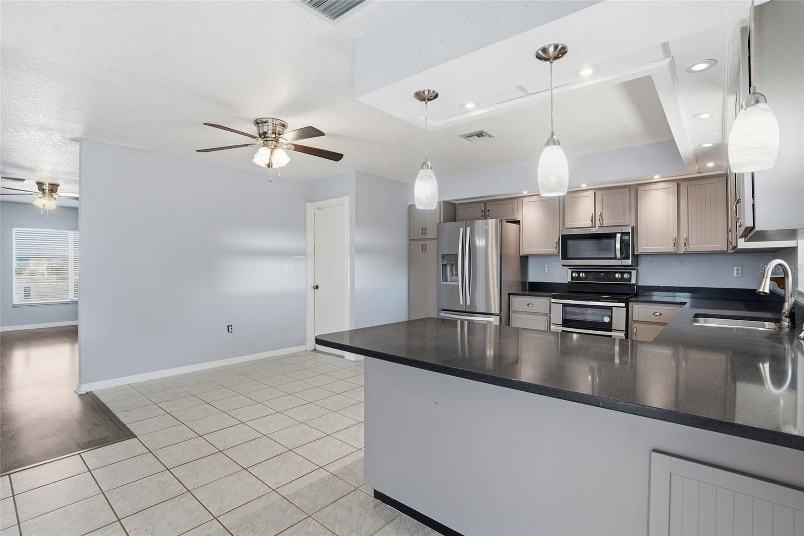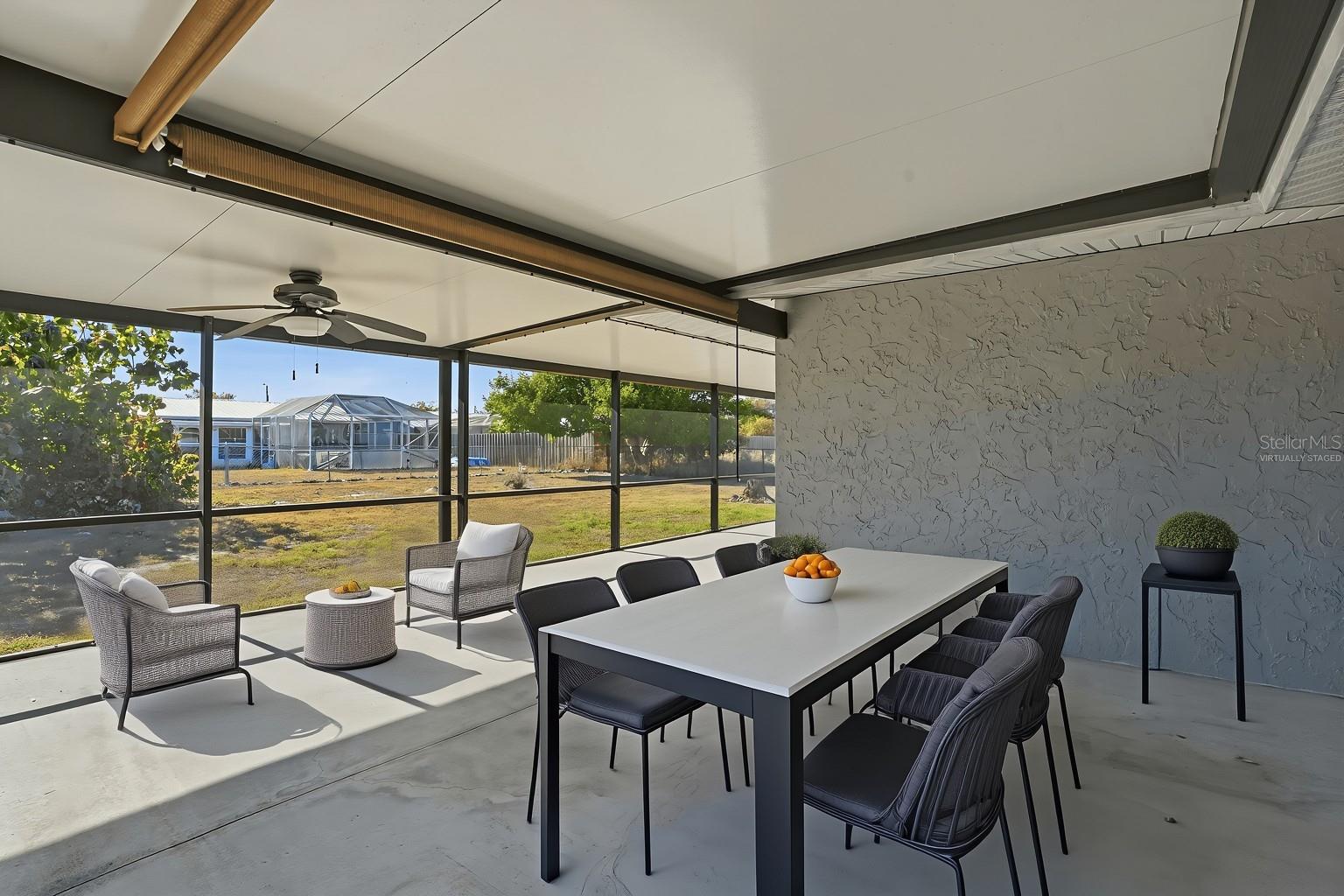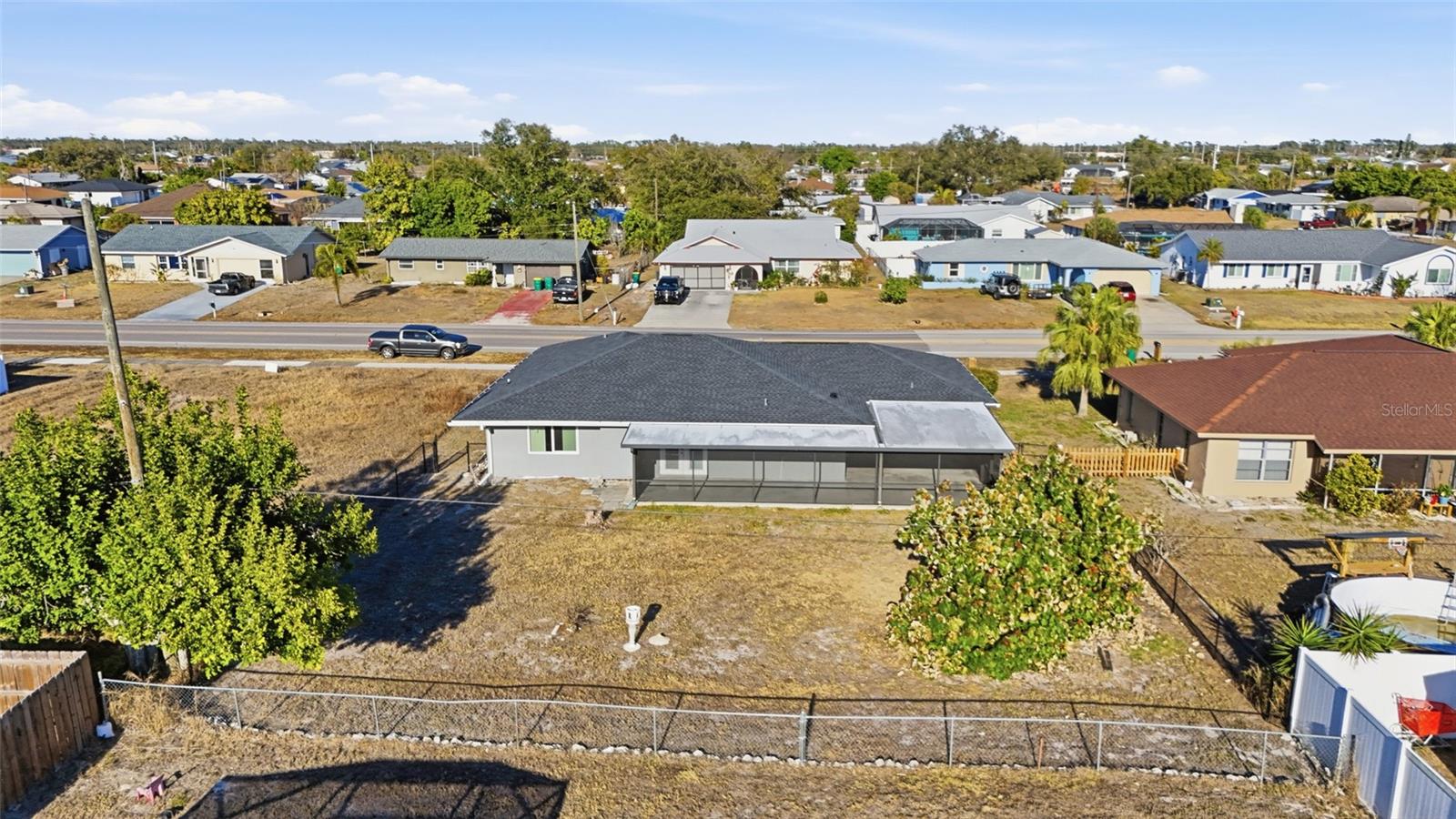 One or more photo(s) has been virtually staged. Discover comfort and value in this affordable 2 bedroom, 2 bathroom, 2-car garage home designed for easy living located in Port Charlotte. NO HOA FEES! CLICK ON THE VIRTUAL TOUR LINK 1 FOR THE VIDEO AND VIRTUAL LINK 2 FOR THE 3D TOUR. Featuring an open floor plan with tile and vinyl flooring throughout, this home offers a bright and welcoming atmosphere perfect for everyday living and entertaining. The open living and dining areas flow seamlessly together, creating an ideal space for hosting family and friends. The eat-in kitchen is both stylish and functional with stainless steel appliances, granite countertops, a breakfast bar, and a glass slider leading to the lanai—bringing in natural light and extending your living space outdoors. The primary suite offers dual closets and a glass slider to the bonus room, along with a private bathroom featuring a single-sink vanity and a walk-in shower. The guest bedroom includes a built-in closet and convenient access to the nearby guest bathroom. A versatile bonus room off the primary bedroom provides endless possibilities—perfect for a home office, gym, hobby space, or game room. Step outside to the large screened lanai with plenty of room for entertaining, overlooking a fully fenced backyard filled with opportunity. With ample space to add a pool, you can easily create your own private outdoor oasis. MINUTES to US-41, 776 & I-75, for easy access to local favorites such as Charlotte Sports Park, welcoming the Tampa Bay Rays, Centennial Park & swimming pool & the warm mineral springs, shopping, fine & casual dining, LIVE entertainment, and a short car ride to award-winning beaches! Schedule your showing TODAY!