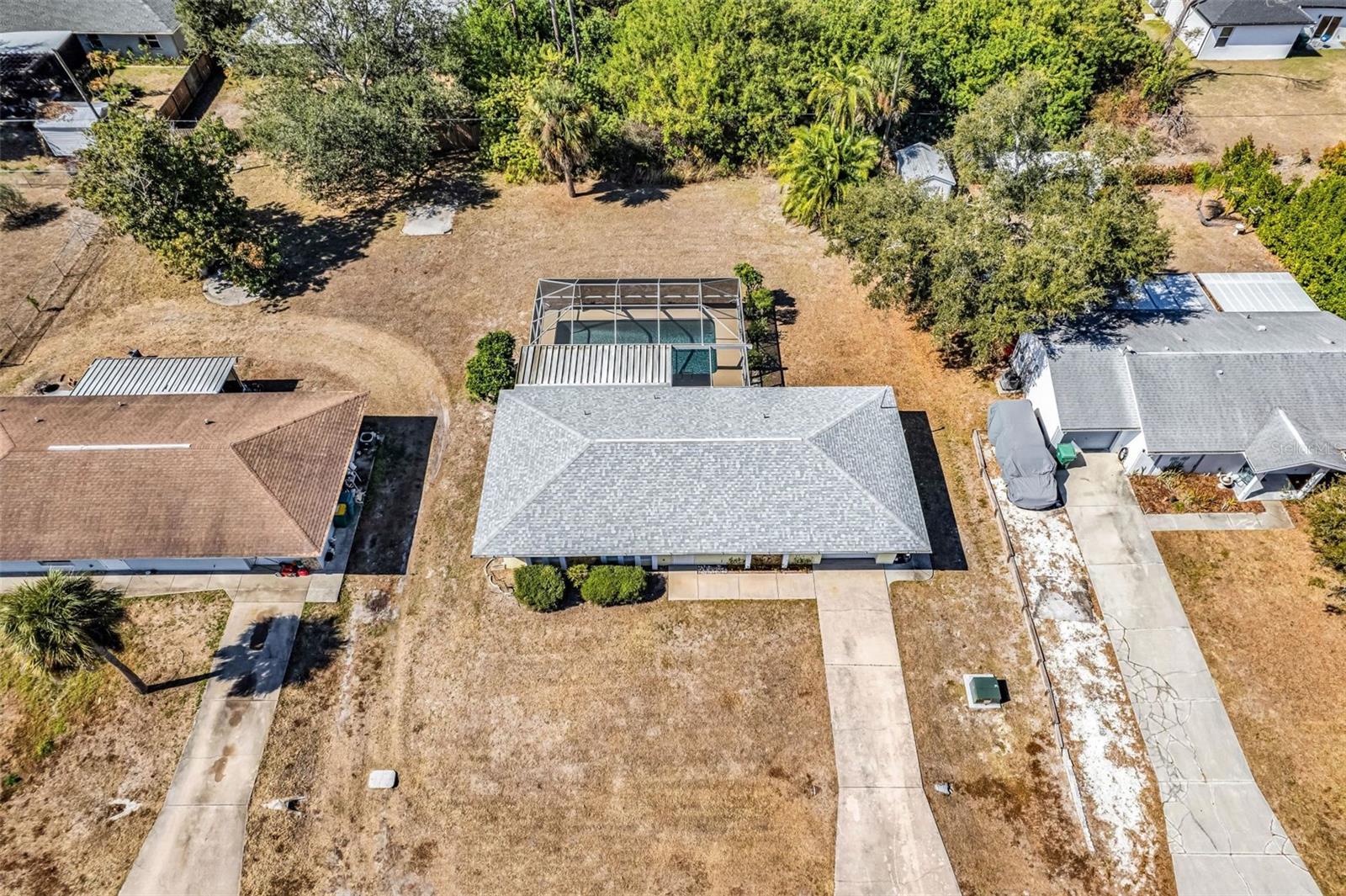 BEAUTIFUL POOL AREA WITH LARGE POOL — your private backyard paradise awaits! From the moment you step outside, you’ll fall in love with this incredible outdoor retreat. The sparkling, oversized pool has been freshly resurfaced and is surrounded by a newly rescreened pool cage, creating a bright, breezy space to relax and unwind. The spacious lanai, complete with large sliding glass door and an outdoor shower, invites you to host gatherings, enjoy quiet mornings with coffee, or spend long Florida afternoons soaking up the sunshine. This backyard truly feels like your own personal oasis. Inside, this well-maintained 2-bedroom, 2-bath home offers comfort and thoughtful updates throughout. Fresh interior and exterior paint, along with new light fixtures, create a warm and welcoming atmosphere the moment you walk in. The galley-style kitchen features a pantry closet for extra storage, while the primary suite offers a walk-in closet, private shower, and sink — a cozy and functional retreat at the end of the day. Major improvements provide added peace of mind, including a roof approximately 8 years old, septic system approximately 7 years old, A/C replaced in 2024, new water heater, washer and dryer (2024) conveniently located in the garage, garage door replaced in 2023, and 7 impact windows installed in 2024. A side-door entrance adds everyday convenience and flexibility. Located in the heart of Port Charlotte, close to shopping, dining, schools, beaches and major roadways, this home offers the perfect blend of relaxation and accessibility. Whether you’re looking for full-time Florida living, a seasonal escape, or a smart investment opportunity, this inviting pool home is ready to welcome you. Schedule your private showing and come experience the lifestyle this home has to offer.