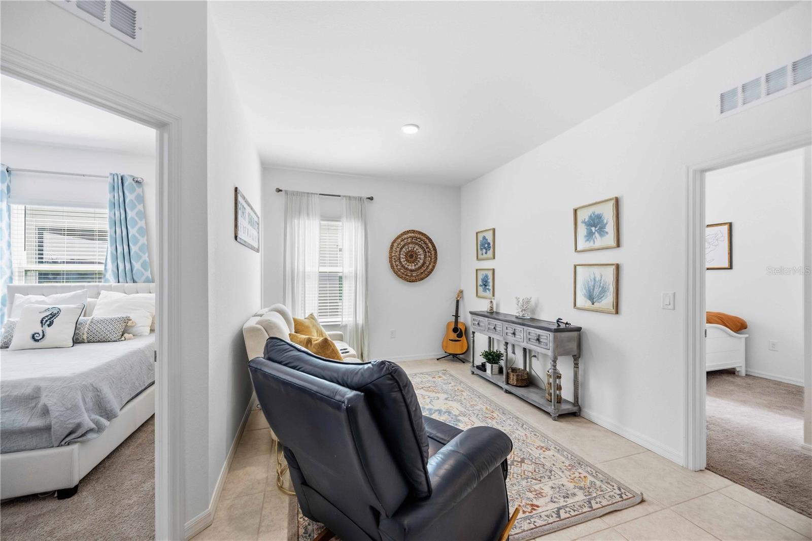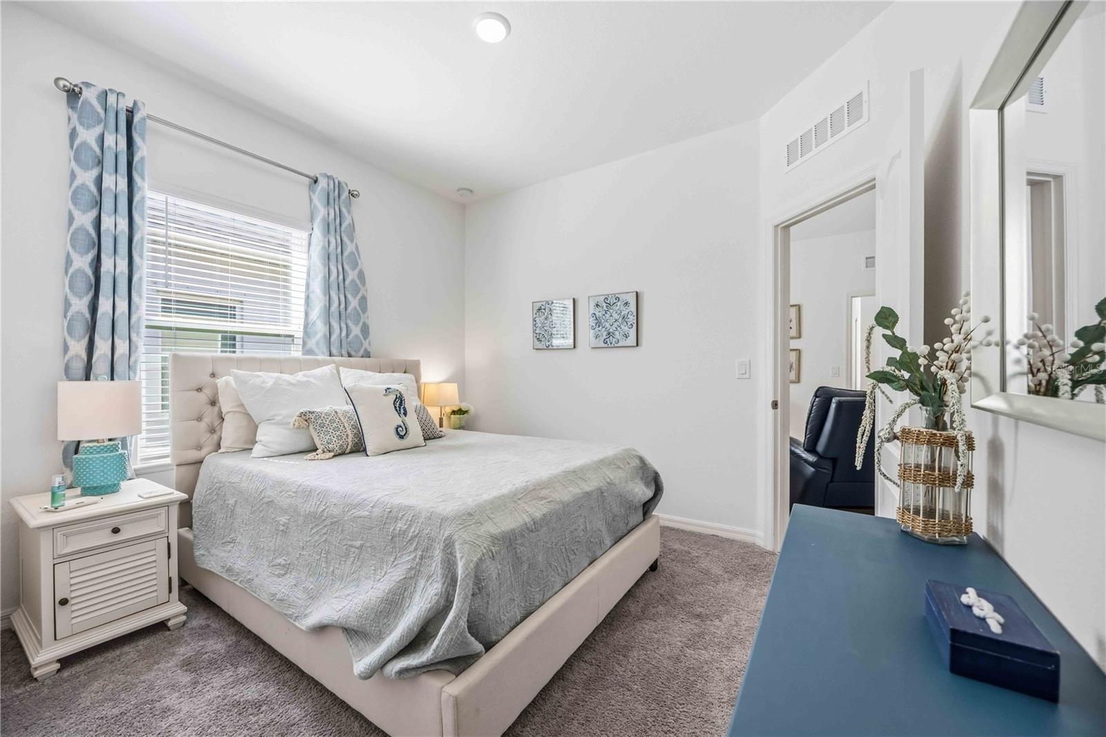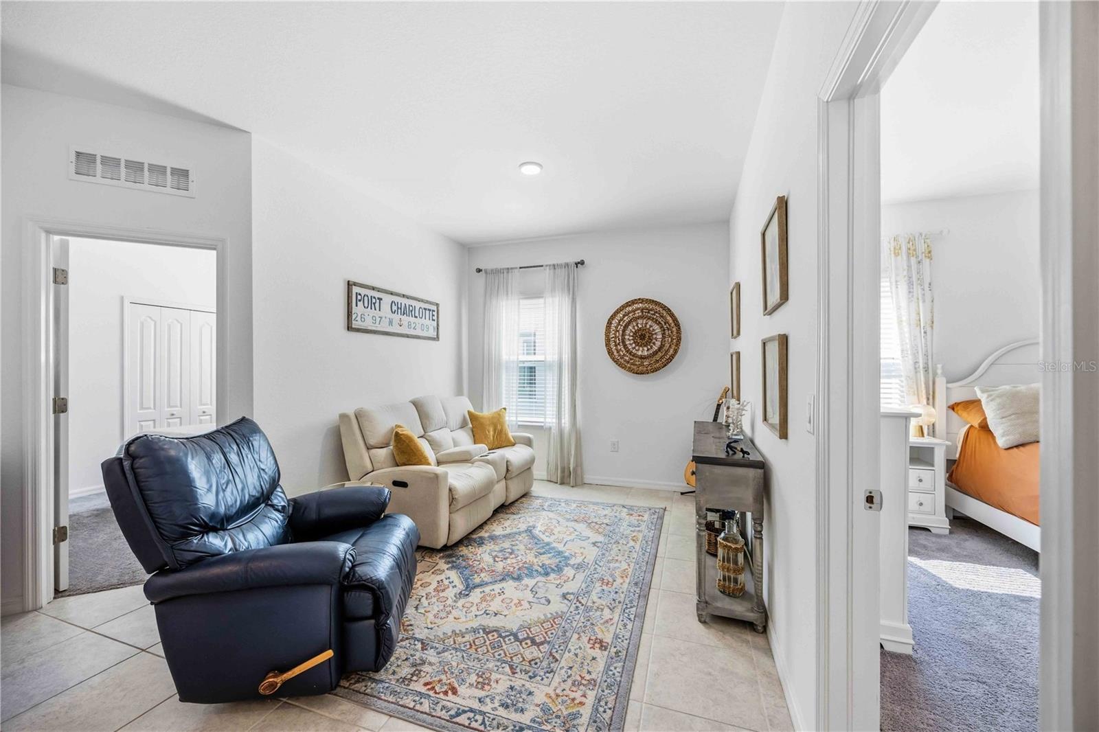 Welcome to the desirable Hammocks of West Port in beautiful Port Charlotte — where comfort, convenience, and community come together. This nearly new one-owner home, built in 2021, offers a thoughtfully designed floor plan that truly accommodates families of all sizes and ages with 3 bedrooms, 2 bathrooms, a private office, and a versatile media room. The unique layout features a media room perfectly positioned between the two guest suites, creating an ideal space for a private sitting area, game room, playroom, or even a quiet retreat for in-laws, while the office/flex space near the entrance provides privacy for working from home. The open-concept great room seamlessly connects the kitchen, dining, and living areas, making it perfect for entertaining and everyday living. The kitchen is beautifully appointed with • white cabinetry • granite countertops • stylish backsplash • center island • coffee bar • abundant storage. The living room showcases an accent wall along with updated fans and lighting for a modern touch. The spacious primary suite offers a spa-like bathroom with a walk-in shower and separate soaking tub. Enjoy Florida living at its best with a cozy front porch ideal for socializing with neighbors and a screened lanai overlooking the tranquil pond — perfect for morning coffee and wildlife watching. This home is being sold mostly FURNISHED — simply bring your clothes and toothbrush and start living the Florida lifestyle. Additional highlights include • whole-house water filtration system • reverse osmosis system in the kitchen • grounds maintenance included in HOA. Located in the master-planned West Port community surrounding Centennial Park — and within walking distance — residents enjoy access to exceptional amenities including a lap-style pool, fitness center, gymnasium with basketball, pickleball and volleyball courts, community garden, lighted baseball and softball fields, soccer fields, and an 18-hole disc golf course. Centrally positioned with easy access to North Port, Englewood, and Punta Gorda, this pond-view home offers flexible living space, modern finishes, maintenance-free convenience, and resort-style amenities all in one exceptional package.