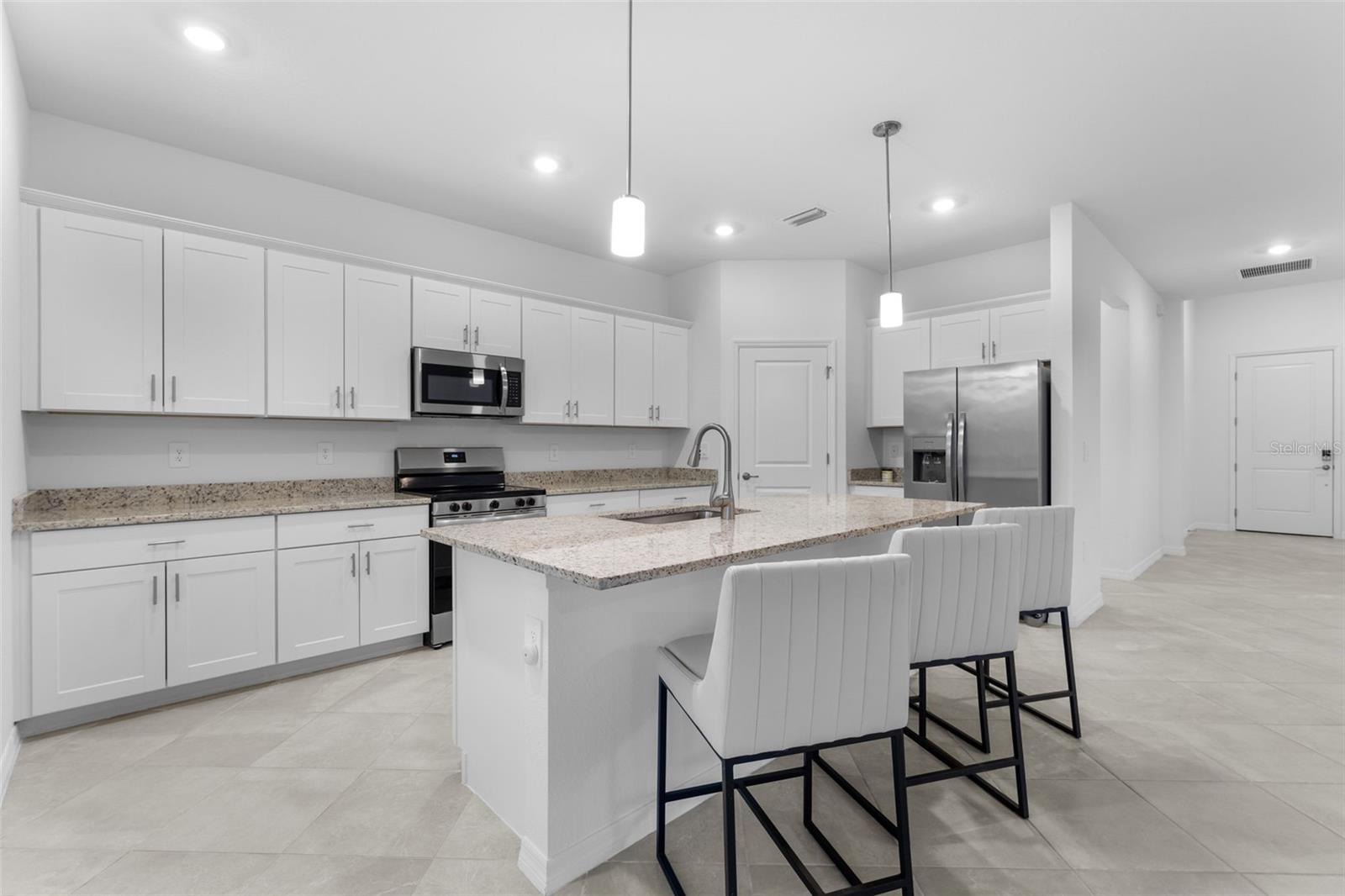 This home offers 4 bedrooms, 3 bathrooms, and over 2,000 square feet of well-designed living space in the gated community of Biscayne Landing. The open split floor plan features spacious living and dining areas that flow into the kitchen and screened lanai, making the home ideal for everyday living and entertaining. The kitchen includes abundant cabinetry, granite countertops, stainless steel appliances, and a walk-in pantry with custom storage upgrade. The primary suite features a walk-in closet with custom closet systems, dual vanities, and a walk-in shower. A fourth bedroom with a private bath provides flexibility for guests or a home office. The home also includes an upgraded washer and dryer along with custom built-in storage in the closets, pantry, and laundry room. Impact windows and doors provide storm protection and energy efficiency. Located in an X flood zone (no flood insurance required) and no CDD fees. Biscayne Landing offers resort-style amenities including a clubhouse, pool, fitness center, pickleball courts, sidewalks, and a maintenance-friendly lifestyle. Low HOA fees include lawn maintenance, cable TV, and internet. Conveniently located near shopping, dining, beaches, and area amenities.