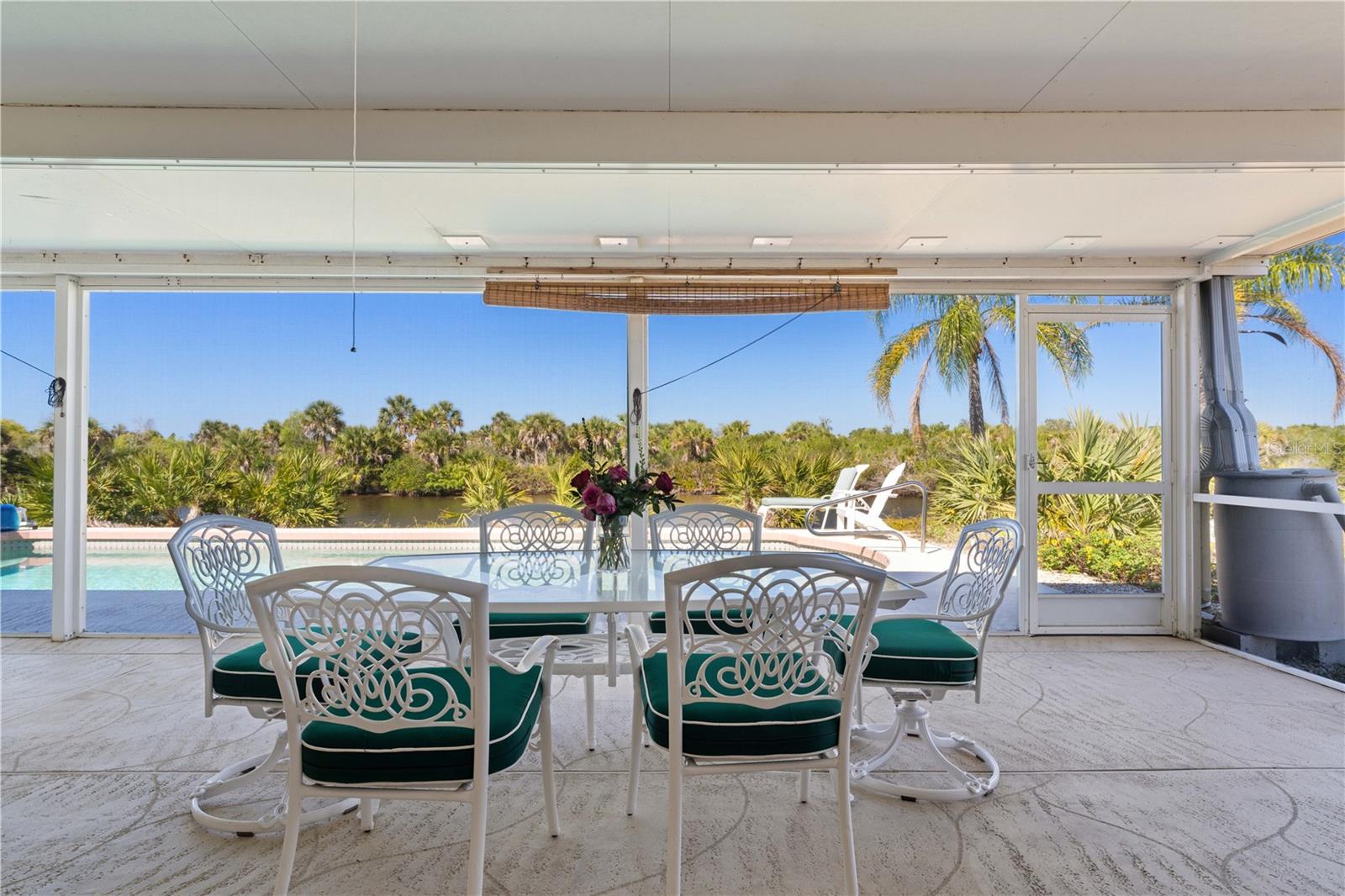Located on the Manchester Waterway in the waterfront area of Port Charlotte, this 3 bed/2 bath sailboat-access home offers a rare combination of privacy, 242 feet of seawall and sweeping, wraparound water views. With protected mangroves across the water, the setting delivers rare privacy, open sky, and a natural backdrop that feels worlds away creating the feeling of a private oasis. The extended water frontage and natural canal basin allows room to dock comfortably with a private dock and 9,000 lb boat lift. Wide water views stretch in multiple directions, creating an ever-changing canvas of light, breeze, and reflection. Inside the home, vaulted ceilings and an open layout create a bright, comfortable living environment designed to connect with the outdoors. Tile flooring runs throughout the main living areas, and sliding glass doors frame views of the pool and water beyond. The kitchen features white cabinetry, stainless appliances, and a functional breakfast bar that opens naturally to the main living space. The Florida room is a highlight, wrapped in glass and positioned to capture panoramic water views. It offers flexible space for dining, relaxing, or enjoying quiet mornings overlooking the pool. The split-bedroom floor plan provides privacy for owners and guests alike. The primary suite enjoys water views and direct access to the lanai. One guest bedroom is currently configured as an artist’s studio and includes a Murphy bed that will remain with the home, creating adaptable space for guests, hobbies, or a home office. Outdoors is where this property truly distinguishes itself. The in-ground, solar-heated pool sits beneath open sky — no cage overhead — preserving uninterrupted views and extraordinary night-sky visibility. With preserve land across the waterway and limited surrounding light intrusion, constellations are strikingly visible, and the Big Dipper can often be seen clearly to the north. Screened lanai area has dining area and hot tub. The landscaping has been thoughtfully curated with Florida-native and pollinator-friendly plantings that support local wildlife and require minimal irrigation. Milkweed attracts butterflies along the garden pathways. Golden beach creeper, saw palmettos, date palms, and queen palms provide food and shelter for pollinators and birds. Blue herons and ibis are frequent visitors along the water’s edge, while grackles, mourning doves, and northern cardinals provide a natural soundtrack throughout the day. The soil has been stabilized for erosion resistance, and the landscape design eliminates chemical fertilizer runoff — reinforcing the home’s environmentally responsible footprint. Energy efficiency is another defining feature. A full solar system — including photovoltaic panels, solar hot water, and solar pool heat — produces more energy than the home consumes. A 2023 Trane XV20 A/C system, 80-gallon Rheem water heater (2024), and 50-amp EV outlet in the attached two-car garage support sustainable, forward-thinking living. With no HOA or deed restrictions, this property offers space, flexibility, and a setting that feels immersed in nature — yet remains convenient to shopping, dining, and daily essentials. Water, wildlife, open sky, and sustainable design come together here in a way that is increasingly difficult to find. Schedule an appointment today and experience the difference.