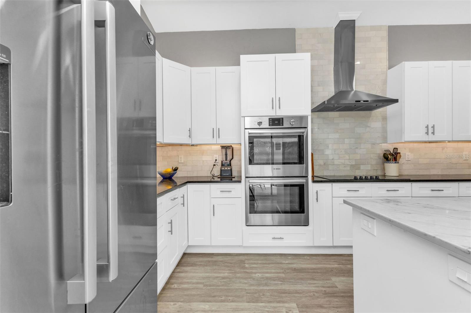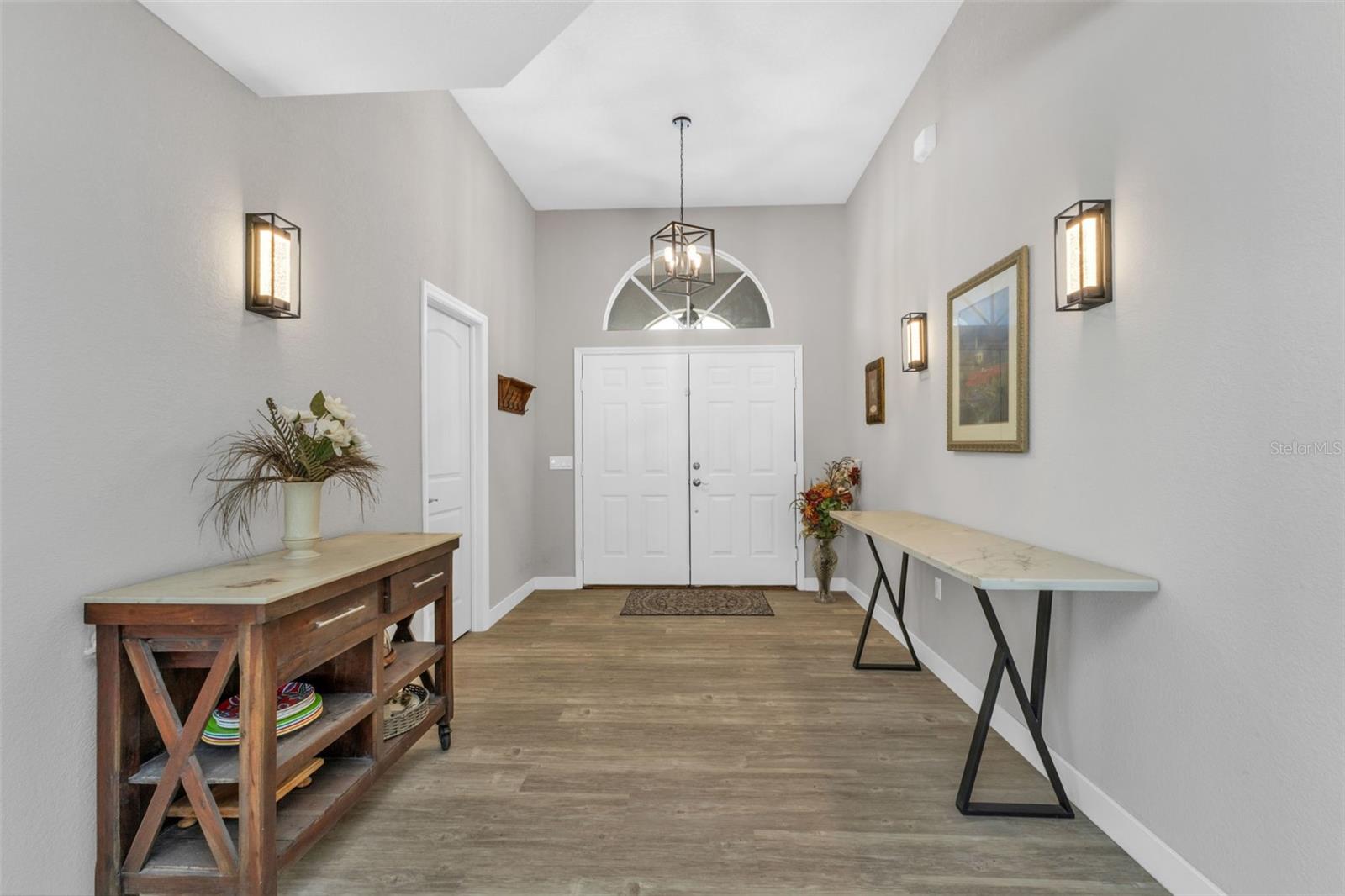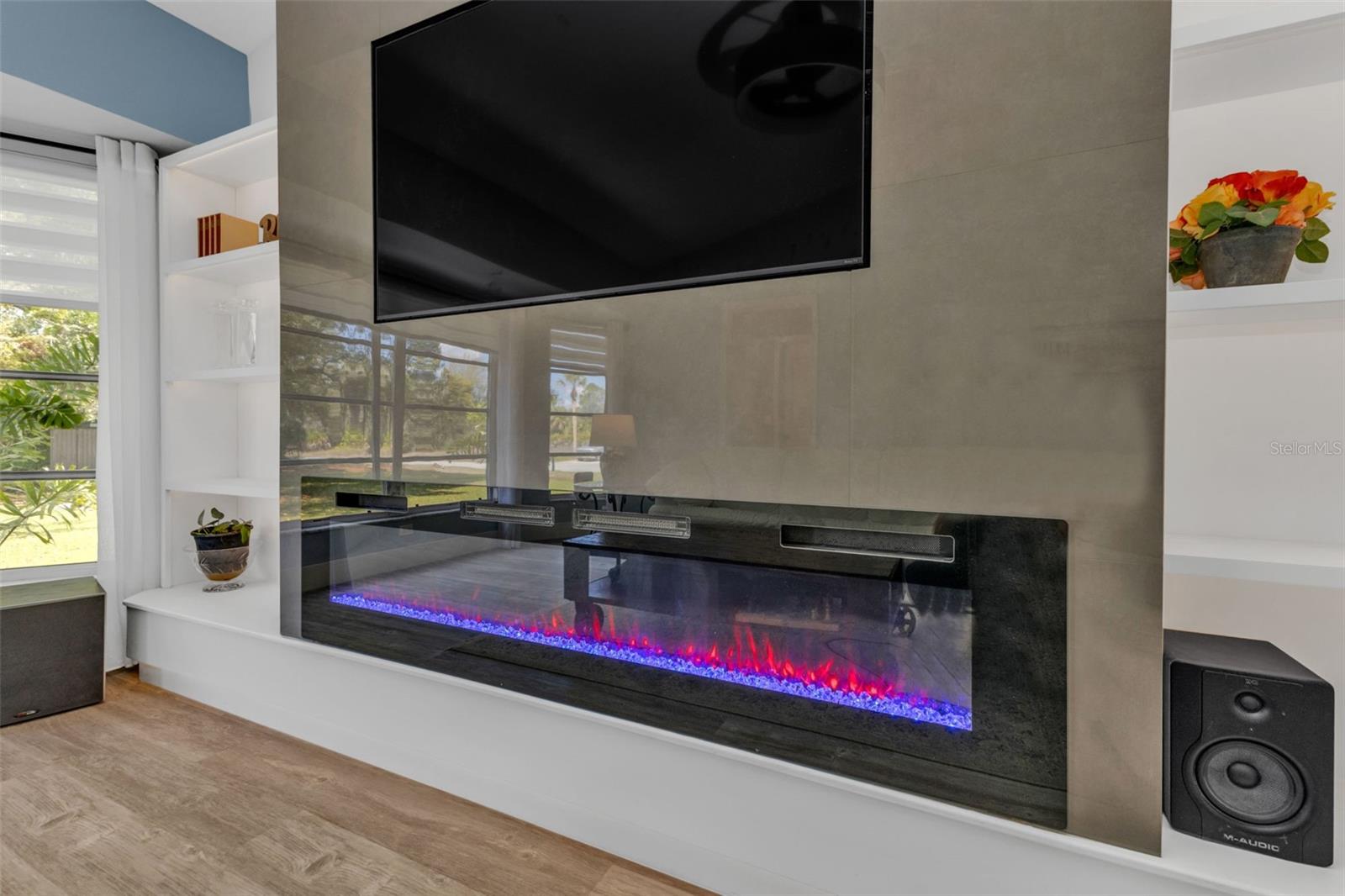 Completely remodeled and situated on a huge double lot, this exceptional property offers privacy, space, and a truly one-of-a-kind living experience. Located in a quiet, wooded neighborhood with no HOA, the beautifully landscaped grounds create a peaceful setting highlighted by a stunning mature tree that serves as the centerpiece of the property. The expansive property also features enclosed vegetable gardens, a new storage shed, updated pool pump and equipment, and upgraded electrical systems designed for easy, carefree living. Inside, the home showcases impressive upgrades and thoughtful design throughout. Vaulted ceilings and crown molding enhance the open feel of the living spaces, while the dramatic full-wall ceramic fireplace creates a striking focal point. The gourmet kitchen has been completely updated and offers the perfect space for cooking, entertaining, and gathering. One of the most exciting features of the home is the dedicated theater and media room, equipped with JBL full-range speakers and Polk powered subwoofers, creating an incredible cinematic experience right in your own home. Step outside to your private outdoor retreat where the oversized lanai and expansive pool area provide the perfect setting for entertaining guests, hosting family gatherings, or simply relaxing and enjoying Florida living. For added convenience and peace of mind, the home is also equipped with five exterior Ring security cameras. With too many upgrades to list, this beautifully remodeled property combines space, privacy, and luxury features rarely found together. From the moment you step inside, you will know this is the home you have been waiting for.