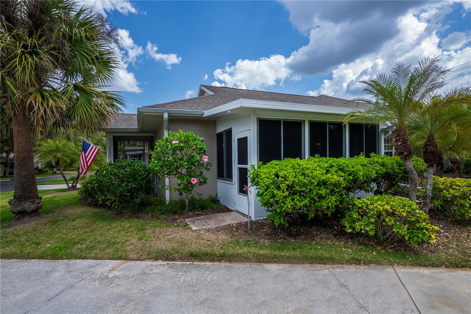 Welcome to your new home in the sought-after gated community of Heritage Oak Park! Surrounded by native oak trees and winding streets, this neighborhood offers a peaceful, country-like atmosphere while being just minutes from shopping, dining, medical facilities, and beautiful Gulf beaches. Villa has been meticulously maintained & thoughtfully upgraded, reflecting true pride of ownership. This is the popular "A" Villa that offers an open light-filled floorplan w/1364 sq. ft. under air w/9'4" volume ceilings, 2 bedrooms, a den/bonus room, 2 full baths, a spacious 2 car garage and an inviting year-round Florida room. Features & upgrades include tiled screened front porch, plank tile floors thru-out entire villa, ceiling fans & window treatments thru-out w/custom valance in great room, kitchen has solid surface countertops w/undercounter sink, white cabinets w/crown molding & full appliance package, good sized master bedroom w/2 welkin closets and ensuite bath w/walk in shower & dual sinks,, security system, laundry room w/full size washer & dryer, & garage with laundry tub, pull down staircase, & garage screens for ventilation. New roof in 2018 & brand-new A/C heat in 2025. Truly move in condition & shows beautifully. Community is pet friendly & golf carts are allowed. Heritage Oak Park is an active gated community with an activity's director on staff planning many activities for your enjoyment. Community offers many amenities inc. a large clubhouse, heated pool, tennis courts, pickle ball, bocce ball, shuffleboard, horseshoes, lending library & billiard's room & is a pet friendly community! Not in flood zone.