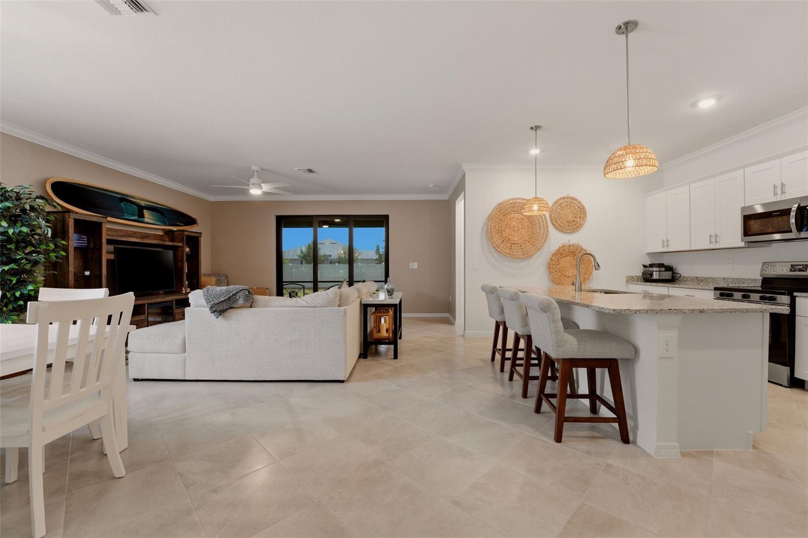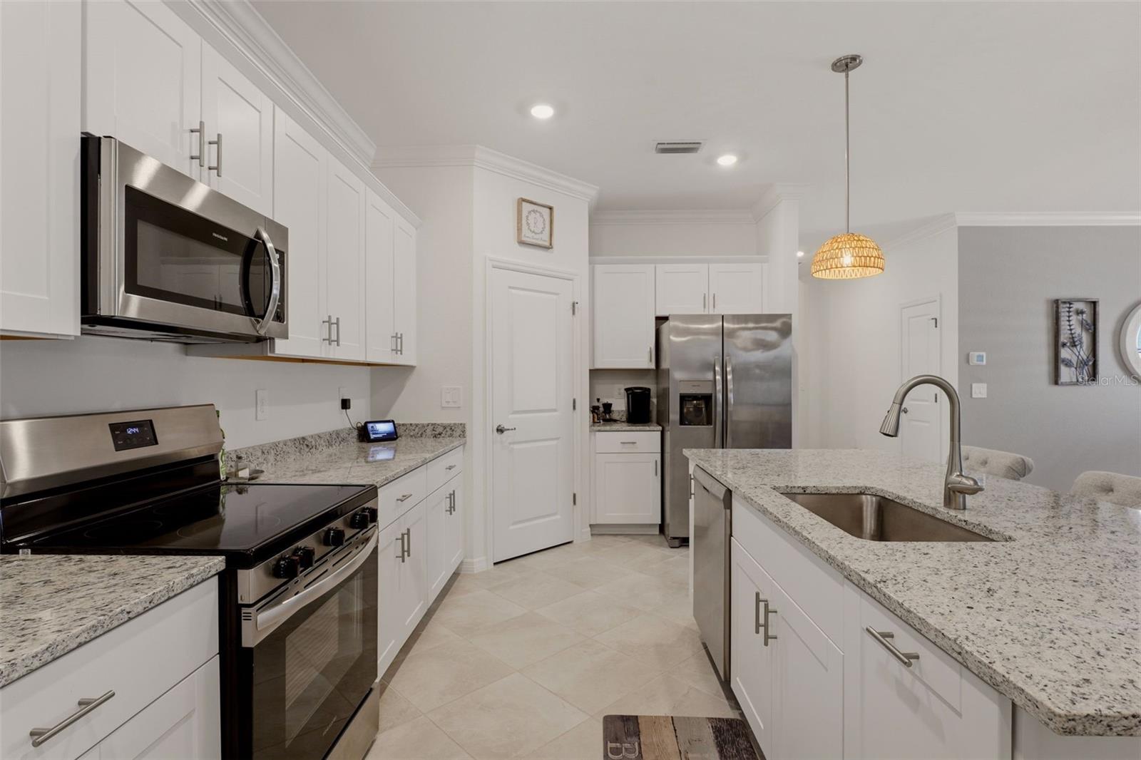 Incredible opportunity to own in Biscayne Landing! Minutes to some of the most beautiful beaches in SWFL yet near all the conveniences of North Port/Port Charlotte. A true 4 Bedroom and 3 full bath house in better than new condition. Seller has added electric hurricane shutters, crown molding in the main living area, epoxy sealed garage floor and gutters. Gourmet Kitchen with granite countertops and walk in pantry. Primary bedroom with premium ensuite bathroom including oversized shower and massive walk in closet. Private screened lanai for relaxing and enjoying the beautiful Florida weather and sunshine. This home has hurricane doors and windows already installed. Delightful community with beautiful pool and pickleball courts makes for great Florida living! Irrigation is included in HOA. Hotwire Cable and Internet are included in HOA dues. Not in a flood zone, map was amended to zone X when Biscayne Landing was developed by Lennar.