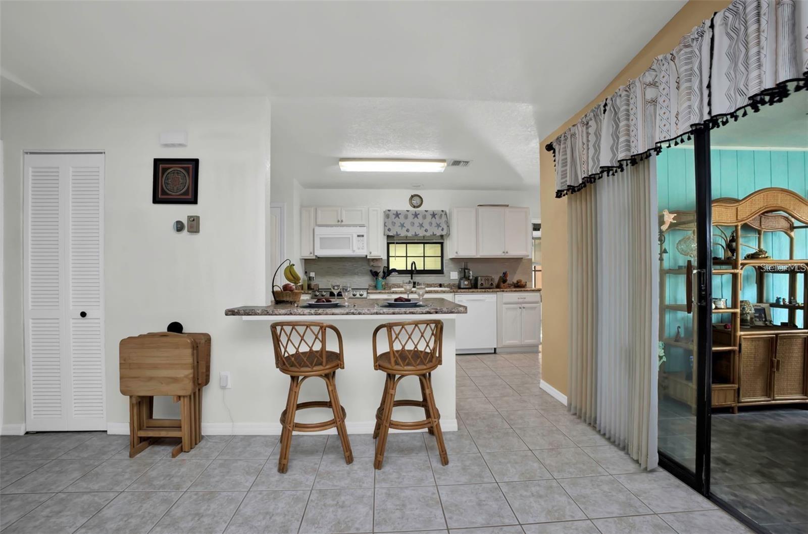 Immaculate 2 bed 2 bath LAND OWNED home in the Viscaya Lakes 55+ community. This home features a large living room and dining room layout with a newer kitchen that has a breakfast bar and newer appliances. Primary bedroom is spacious with en-suite and walk in closet. Home has many updated items such as new roof, new washer and dryer, a/c and hot water tank are a few years old. Large workshop and covered lanai are a nice bonus. Viscaya Lakes is a community with so many things to offer. Large heated pool, 5000 square foot clubhouse, pickleball courts, 30 acre fresh water lake and boat and rv storage just to name a few. Community is very active with bingo, dances and get togethers in the clubhouse that also includes billiard tables, library and craft room. Home is located across the street from the clubhouse and pool area. Community is located in El Jobean area close to shopping, beaches and restaurants. Schedule your showing today.