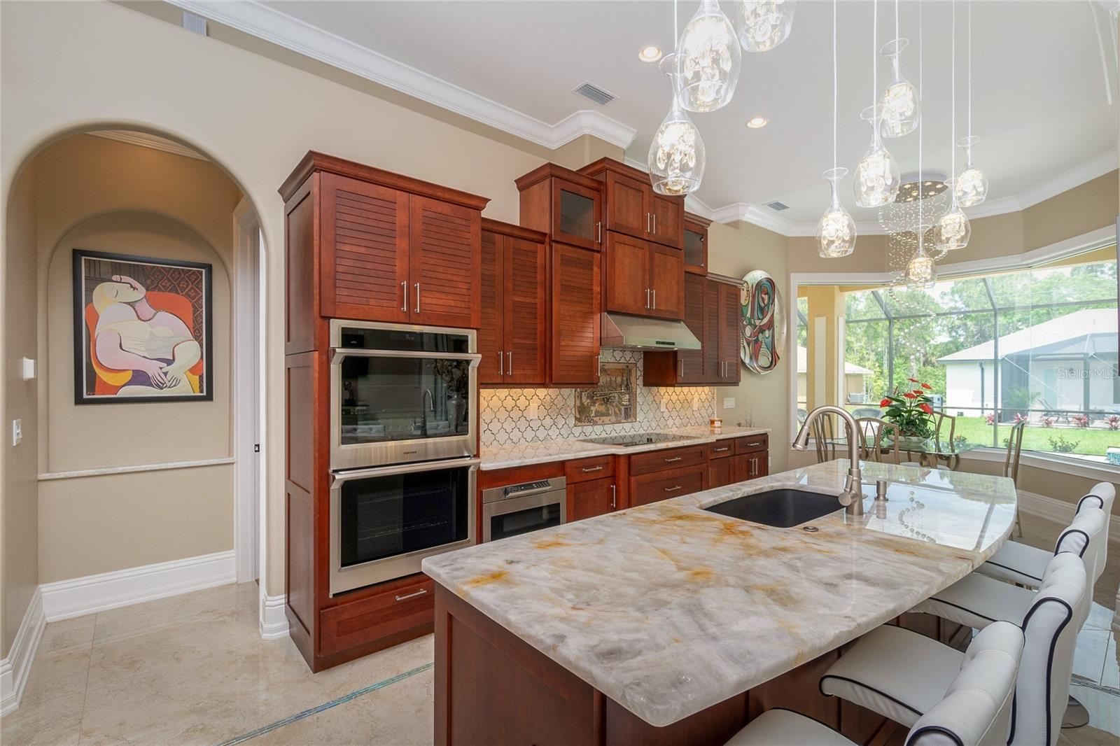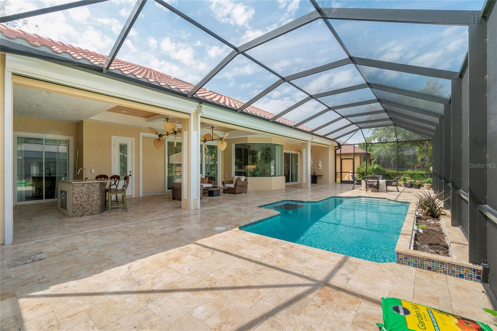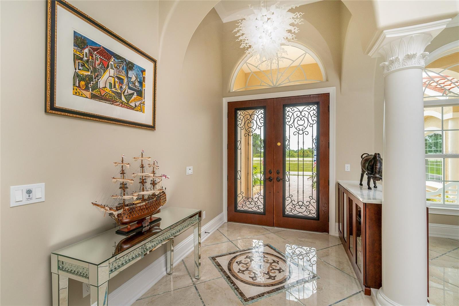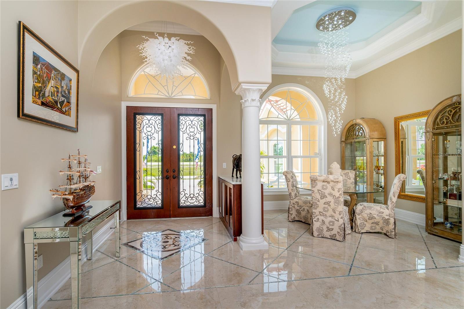 Welcome to 8074 Wiltshire Dr! This stunning custom builder's luxury model home has never been lived in and is ready for immediate occupancy. The Great room features soaring 12-14' ceilings with custom moldings, in-laid flooring designs & high-end finishes everywhere. Enormous outdoor entertainment area with custom, built-in summer kitchen and automatic storm fabric roll down shutters which enclose the entire lanai when desired. A pool bath gives immediate access from the lanai. The kitchen features custom cherry Antigua cabinets, state-of-the-art appliances, Cristallino quartzite countertops with under-counter lighting on the island, and marble backsplash with in-laid mosaic design. Wrapping around the breakfast nook is a huge 9’ high aquarium glass window which lets in tons of light and gives a perfect view to the pool area. The Master suite shows beautifully with Brazillian Pecan flooring, backlit moldings, his/hers closets, separate vanities with custom glass sinks, arched mirrors and an incredible Roman shower with seat & multiple shower heads. Insulated & air-conditioned garage with epoxy finish, impact windows, wrought iron front door, integrated storage shed, travertine pool pavers, specialty light fixtures & plumbing fixtures. Honestly, too many features to list, come see for yourself! Fully furnished, if desired. Make your appointment today to come see this impressive and attention to detail home.