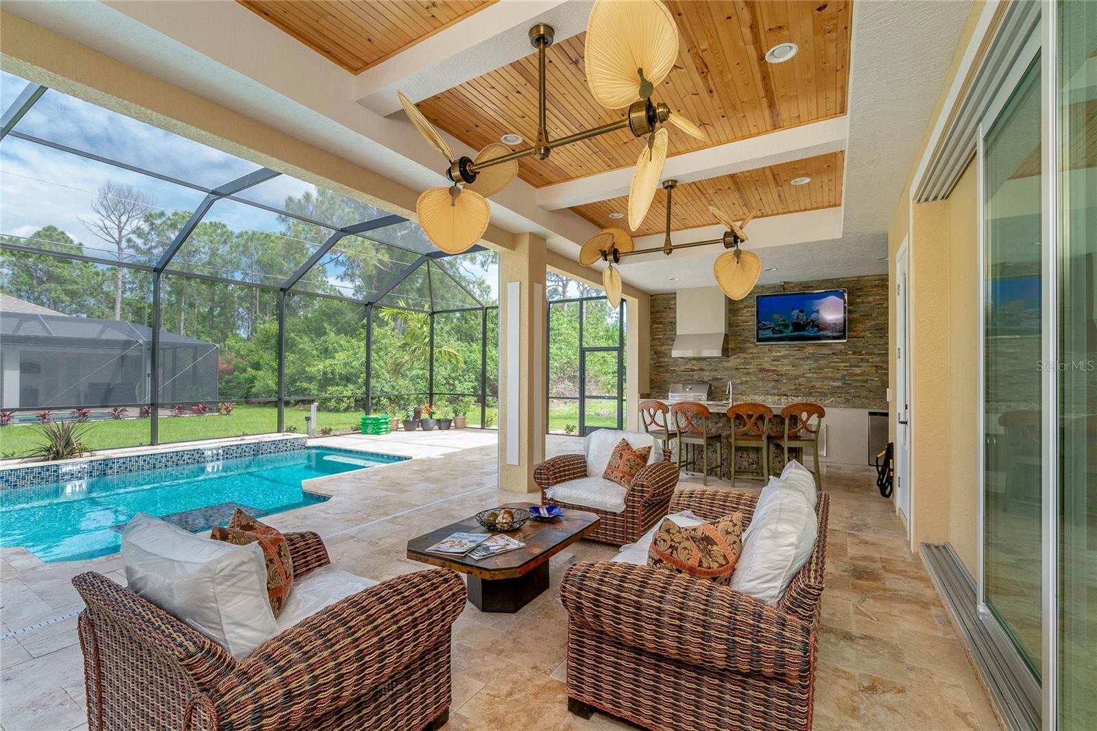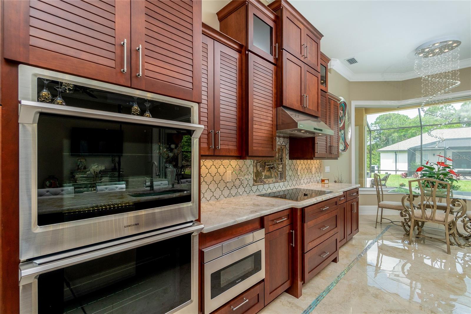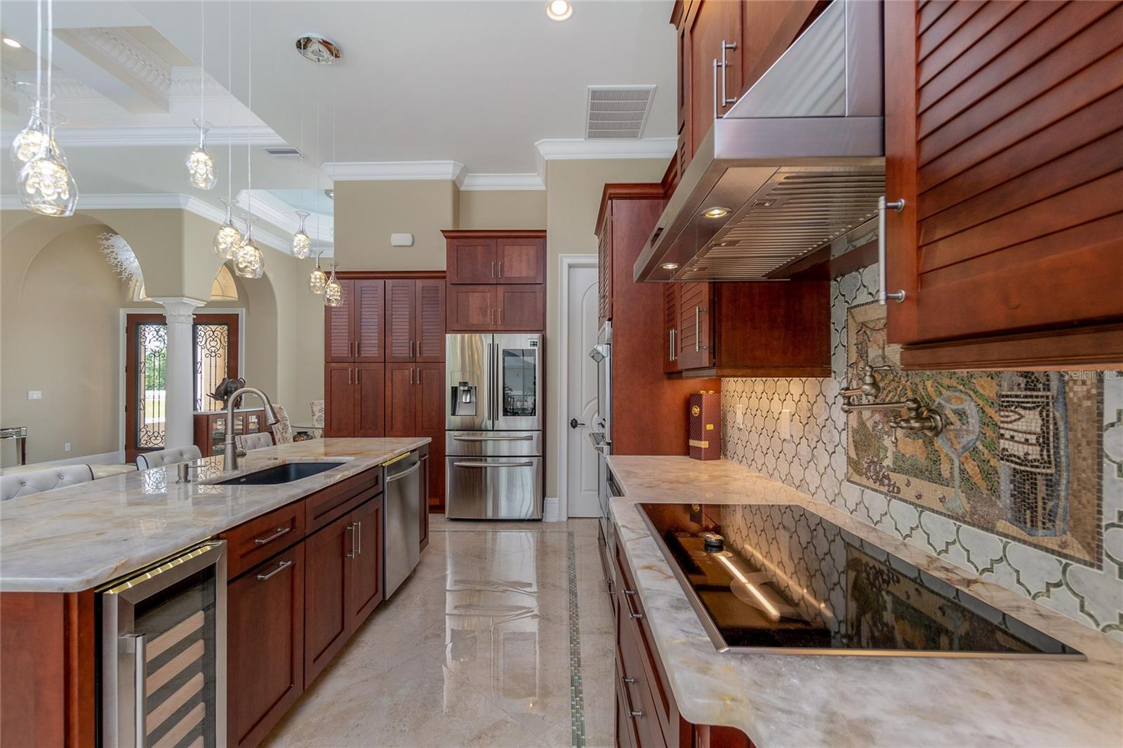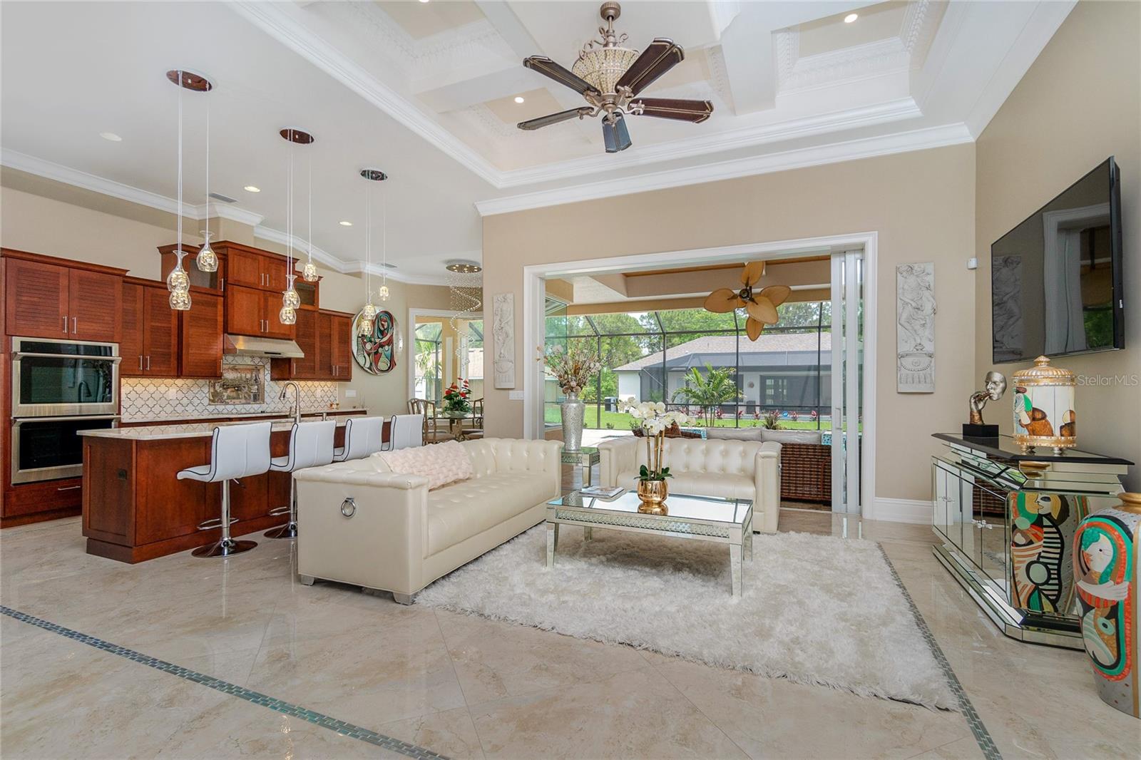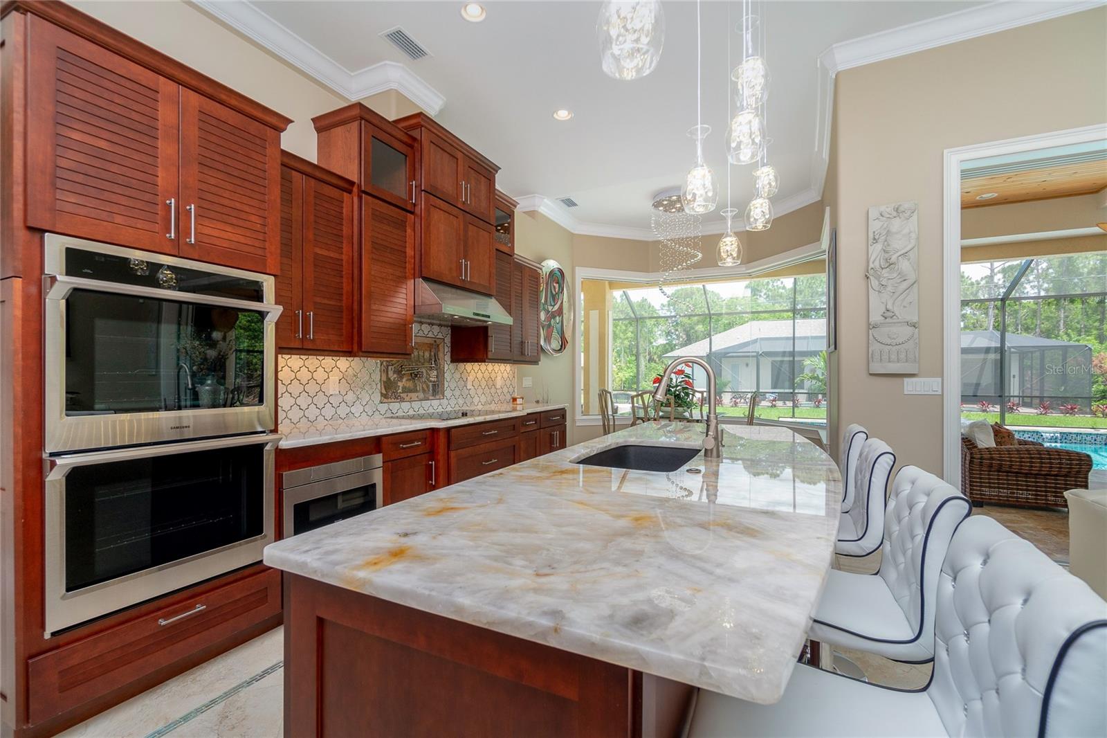 Welcome to 8074 Wiltshire Dr! This stunning custom builder's luxury model home has never been lived in and is ready for immediate occupancy. The Great room features soaring 12-14' ceilings with custom moldings, in-laid flooring designs & high-end finishes everywhere. Enormous outdoor entertainment area with custom, built-in summer kitchen and automatic storm fabric roll down shutters which enclose the entire lanai when desired. A pool bath gives immediate access from the lanai. The kitchen features custom cherry Antigua cabinets, state-of-the-art appliances, Cristallino quartzite countertops with under-counter lighting on the island, and marble backsplash with in-laid mosaic design. Wrapping around the breakfast nook is a huge 9’ high aquarium glass window which lets in tons of light and gives a perfect view to the pool area. The Master suite shows beautifully with Brazillian Pecan flooring, backlit moldings, his/hers closets, separate vanities with custom glass sinks, arched mirrors and an incredible Roman shower with seat & multiple shower heads. Insulated & air-conditioned garage with epoxy finish, impact windows, wrought iron front door, integrated storage shed, travertine pool pavers, specialty light fixtures & plumbing fixtures. Honestly, too many features to list, come see for yourself! Fully furnished, if desired. Make your appointment today to come see this impressive and attention to detail home.