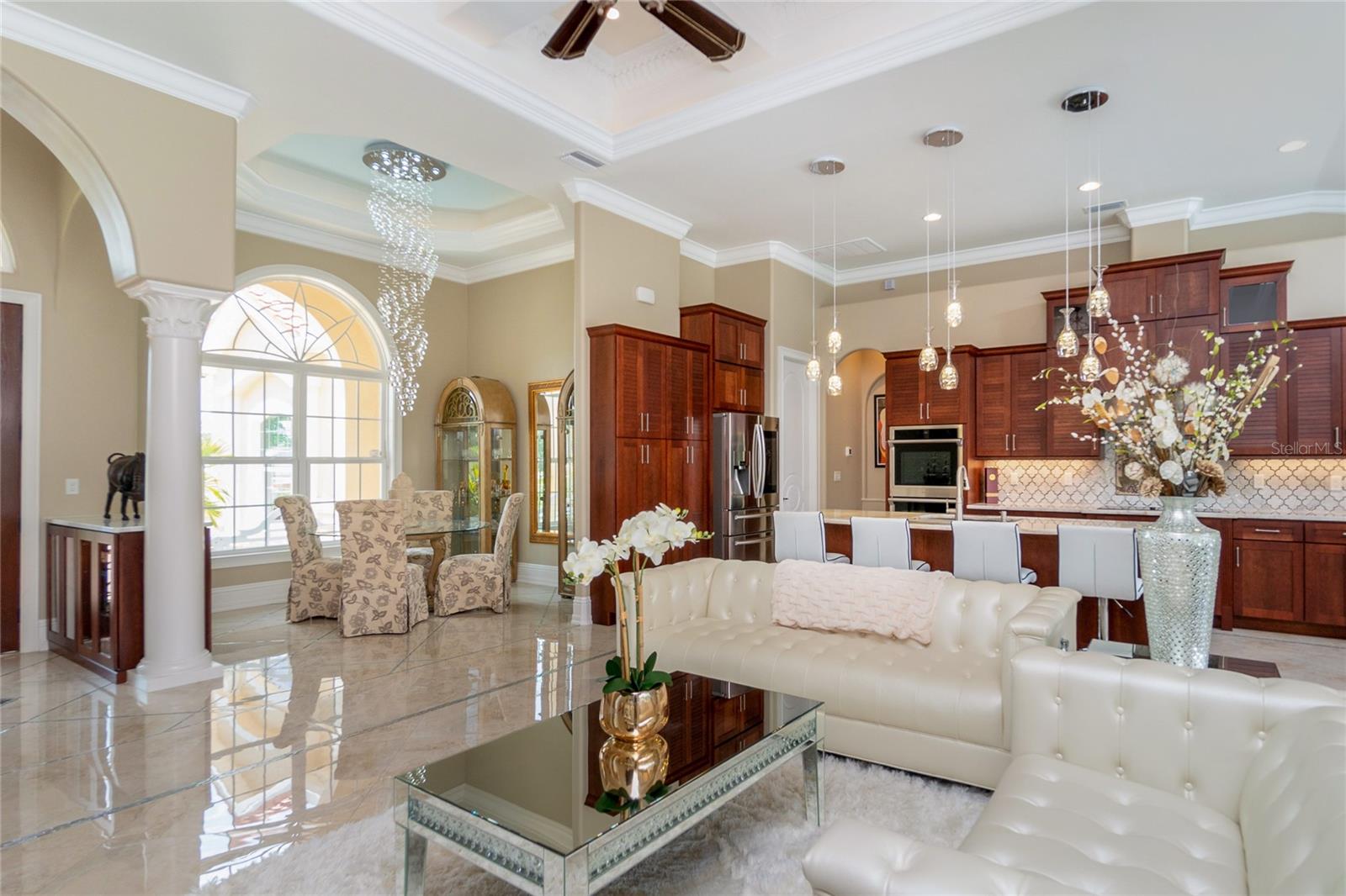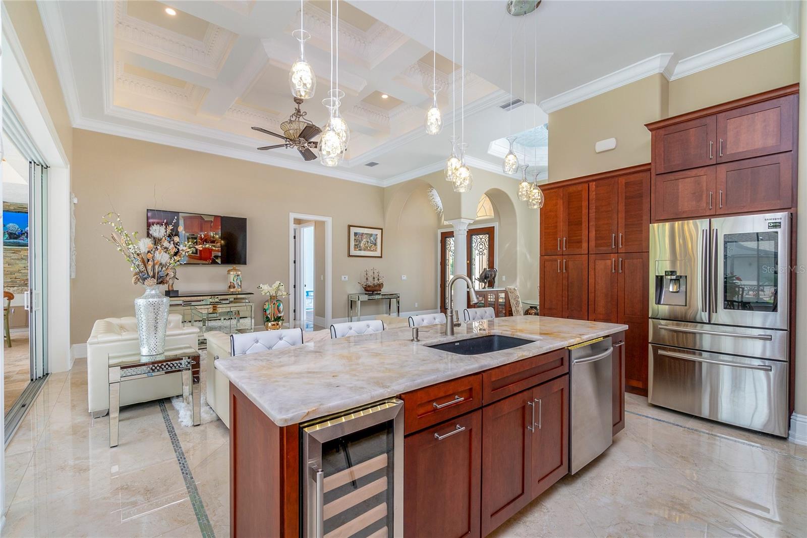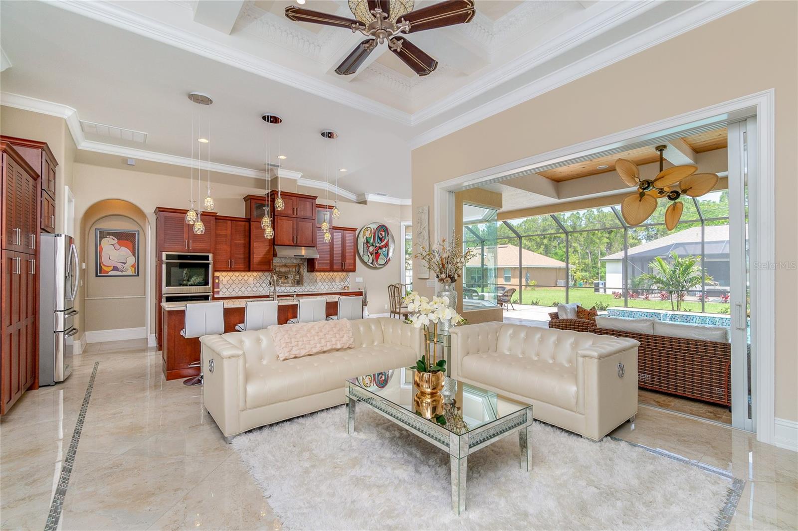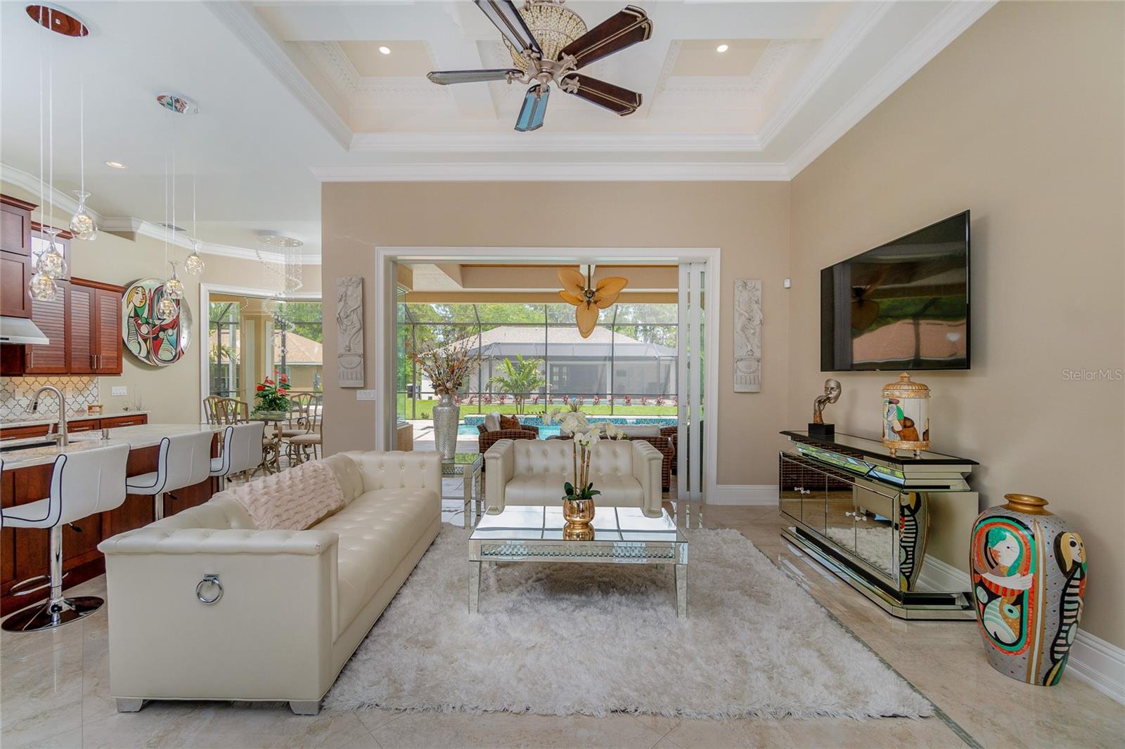 Welcome to 8074 Wiltshire Dr! This stunning custom builder's luxury model home has never been lived in and is ready for immediate occupancy. The Great room features soaring 12-14' ceilings with custom moldings, in-laid flooring designs & high-end finishes everywhere. Enormous outdoor entertainment area with custom, built-in summer kitchen and automatic storm fabric roll down shutters which enclose the entire lanai when desired. A pool bath gives immediate access from the lanai. The kitchen features custom cherry Antigua cabinets, state-of-the-art appliances, Cristallino quartzite countertops with under-counter lighting on the island, and marble backsplash with in-laid mosaic design. Wrapping around the breakfast nook is a huge 9’ high aquarium glass window which lets in tons of light and gives a perfect view to the pool area. The Master suite shows beautifully with Brazillian Pecan flooring, backlit moldings, his/hers closets, separate vanities with custom glass sinks, arched mirrors and an incredible Roman shower with seat & multiple shower heads. Insulated & air-conditioned garage with epoxy finish, impact windows, wrought iron front door, integrated storage shed, travertine pool pavers, specialty light fixtures & plumbing fixtures. Honestly, too many features to list, come see for yourself! Fully furnished, if desired. Make your appointment today to come see this impressive and attention to detail home.