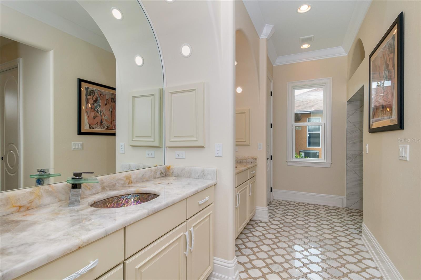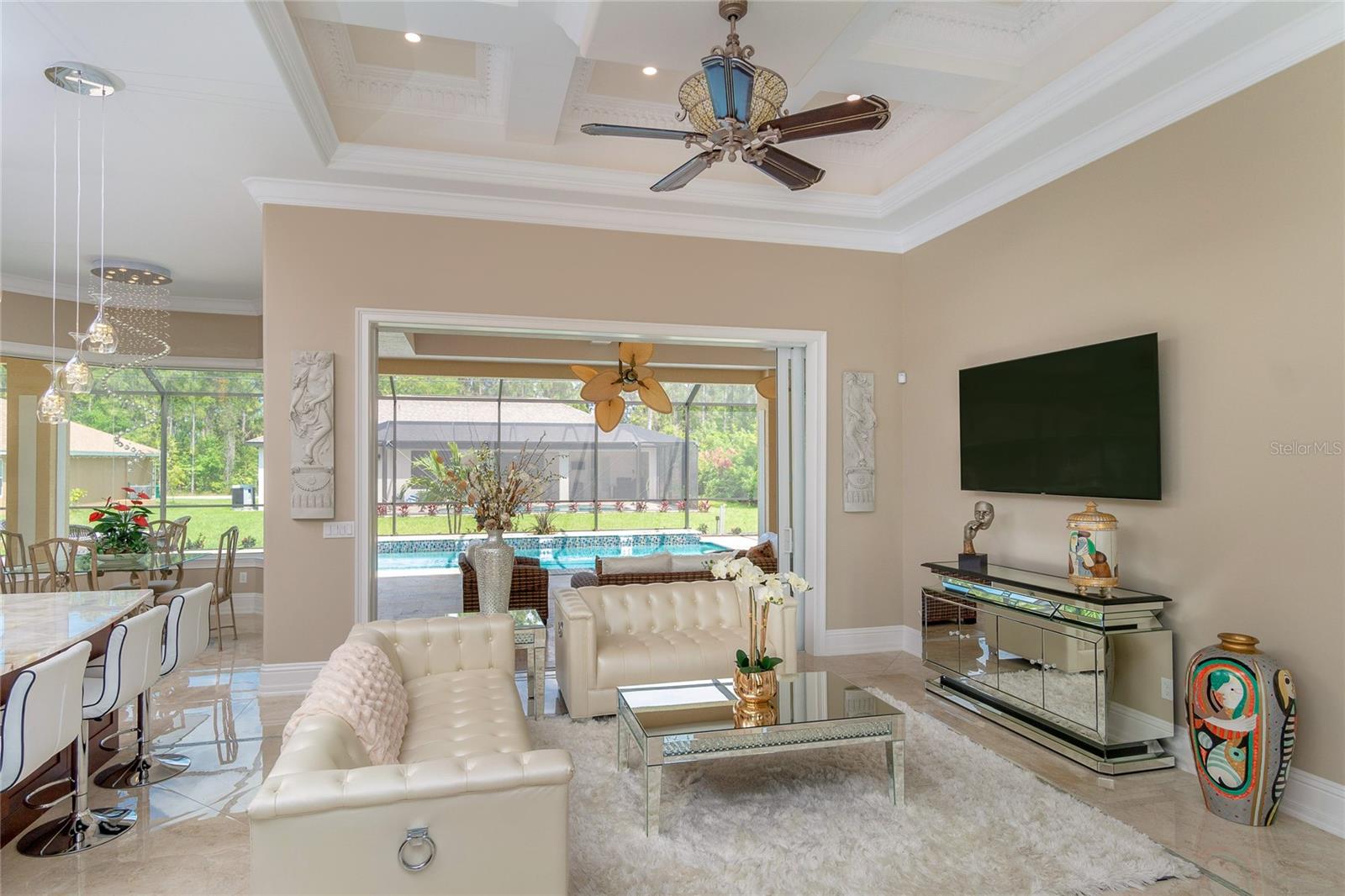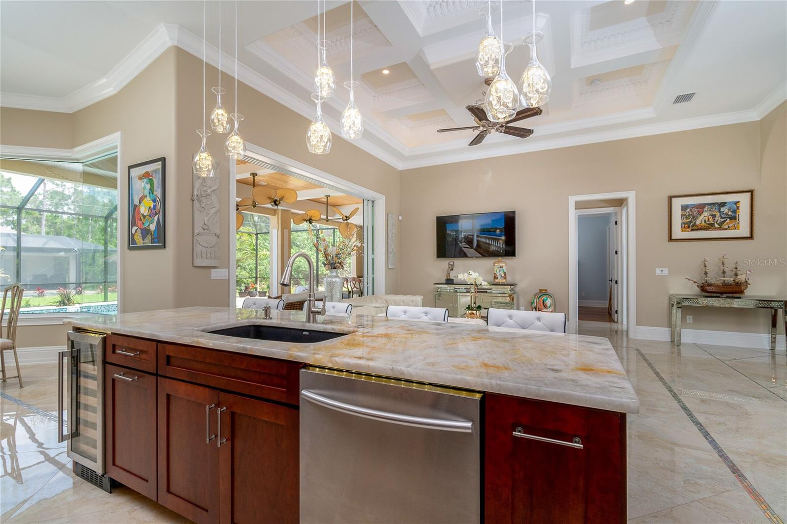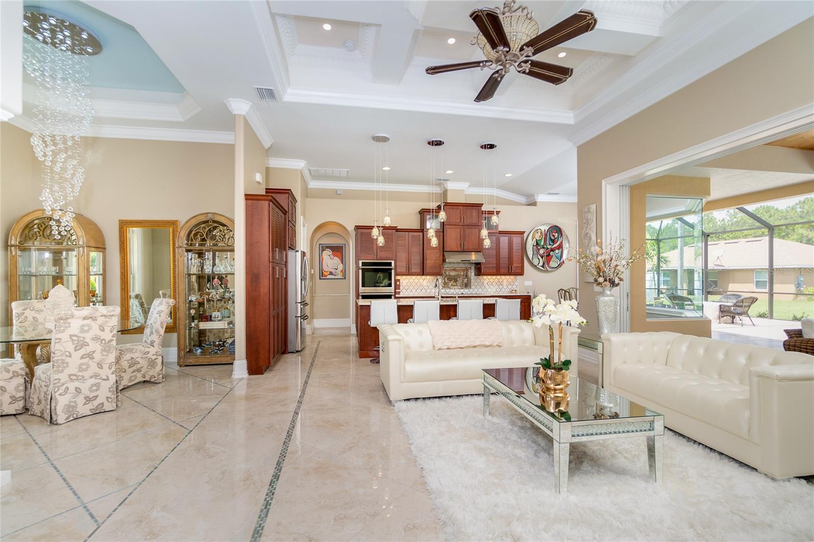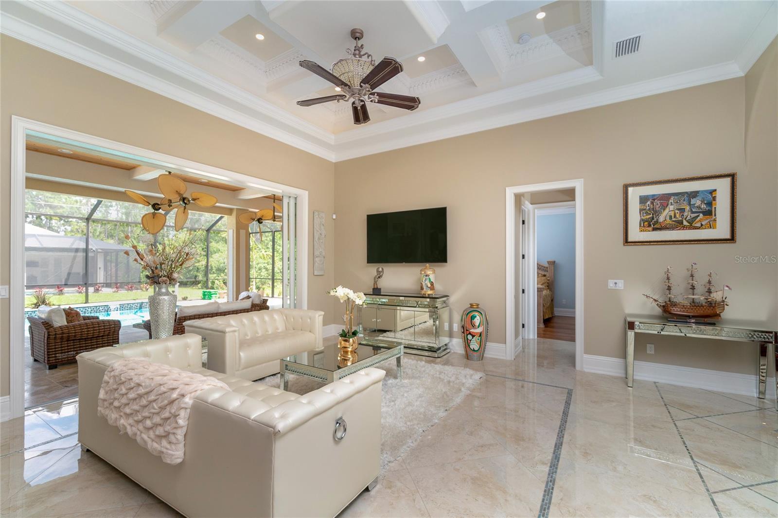 Welcome to 8074 Wiltshire Dr! This stunning custom builder's luxury model home has never been lived in and is ready for immediate occupancy. The Great room features soaring 12-14' ceilings with custom moldings, in-laid flooring designs & high-end finishes everywhere. Enormous outdoor entertainment area with custom, built-in summer kitchen and automatic storm fabric roll down shutters which enclose the entire lanai when desired. A pool bath gives immediate access from the lanai. The kitchen features custom cherry Antigua cabinets, state-of-the-art appliances, Cristallino quartzite countertops with under-counter lighting on the island, and marble backsplash with in-laid mosaic design. Wrapping around the breakfast nook is a huge 9’ high aquarium glass window which lets in tons of light and gives a perfect view to the pool area. The Master suite shows beautifully with Brazillian Pecan flooring, backlit moldings, his/hers closets, separate vanities with custom glass sinks, arched mirrors and an incredible Roman shower with seat & multiple shower heads. Insulated & air-conditioned garage with epoxy finish, impact windows, wrought iron front door, integrated storage shed, travertine pool pavers, specialty light fixtures & plumbing fixtures. Honestly, too many features to list, come see for yourself! Fully furnished, if desired. Make your appointment today to come see this impressive and attention to detail home.