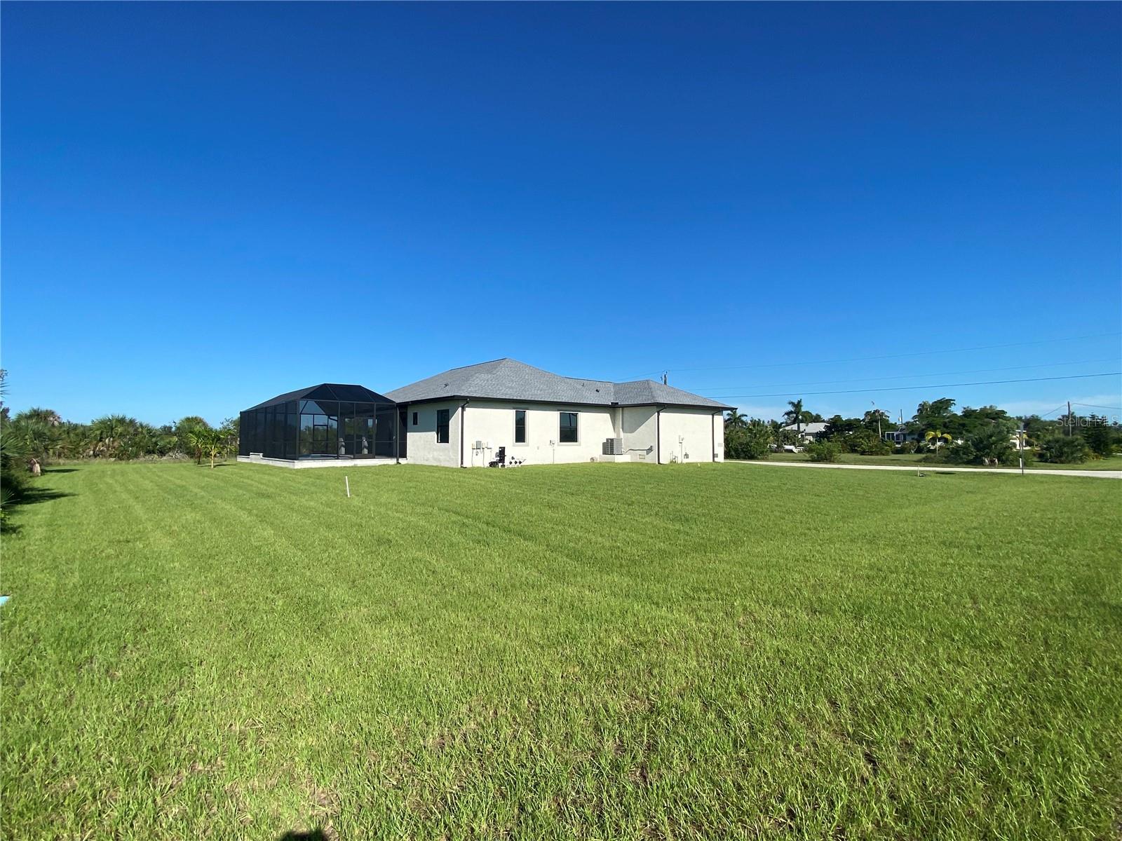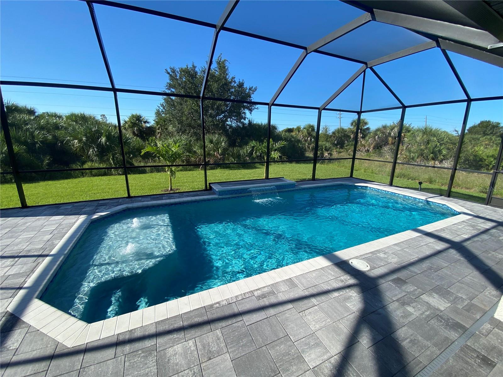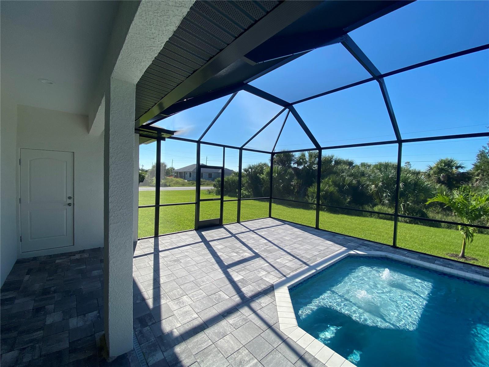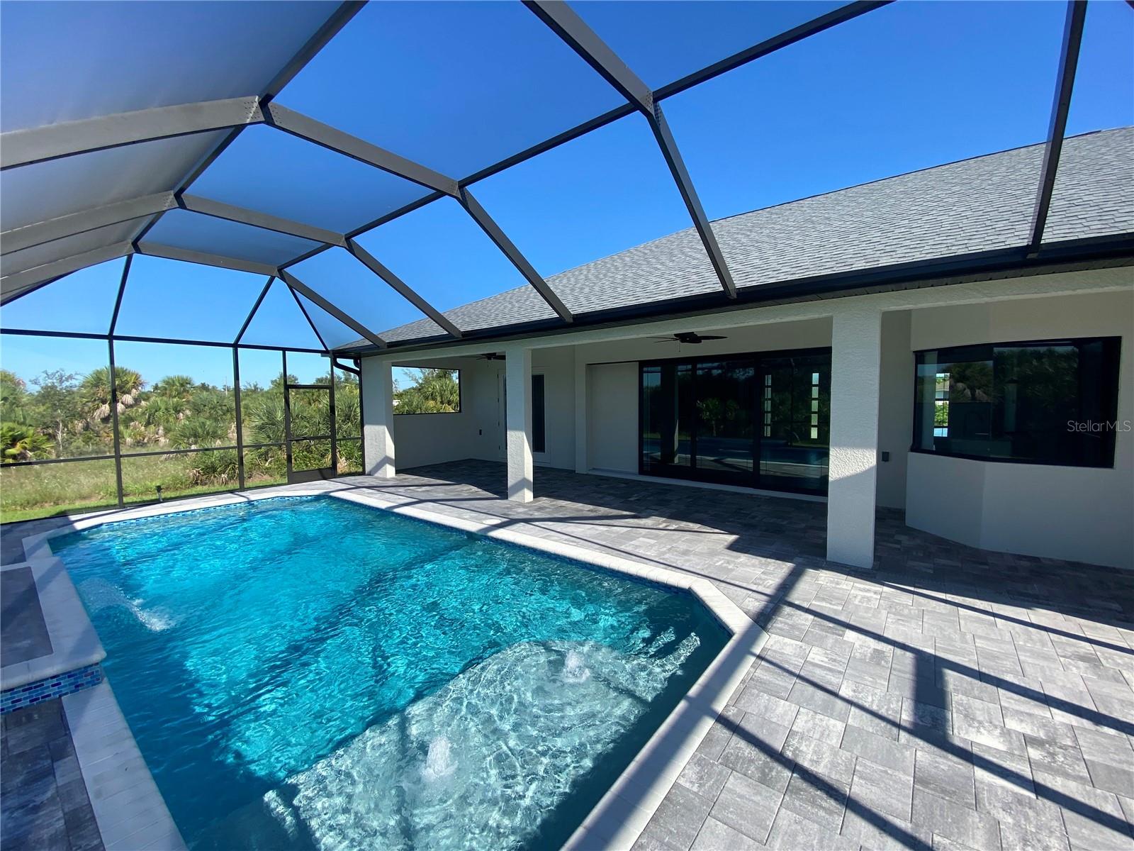 This NEW CONSTRUCTION custom home by Southwest Florida Dream Builders is ready to be yours. Situated on an oversized corner lot of almost 15,000 SQFT is a rare find of almost 50% bigger than a traditional 80x125 parcel. With so much extra yard space to utilize, the possibilities are endless. This home is PACKED with high end amenities such as beautiful granite countertops, maple wood cabinets, luxury vinyl plank floors, and prairie grid hurricane impact glass throughout the whole house. From the moment you walk in you are greeted with a STUNNING view to your deck area through 8ft tall disappearing sliders in this open floor plan design. An oversized island and breakfast bar provides the perfect space to prepare meals and entertain. The dining room is separate from the nook/sitting area; which is situated off the kitchen and framed by a large aquarium window to the pool area. The master bedroom features yet another way to access the lanai out of 8 ft tall french doors with internalized blinds. Dual sinks in the master bath and a large walk in shower. Enjoy the Florida lifestyle on your covered paver lanai with a grilling pass-through for optimum airflow or soak up the sun in a 12x28 saltwater pool which has a raised sun shelf, waterfall feature, all surrounded by a large paver deck. The yard has irrigation installed so keeping your grass in tip-top shape during the dry season is a breeze. The 3rd car garage is a must have for anyone needing additional storage space or an out of the way area for extra cars or recreational vehicles. South Gulf Cove is a highly sought after neighborhood with parks, boat ramps, kayak launches, fishing, and fitness/nature trails. Secure your piece of paradise today!