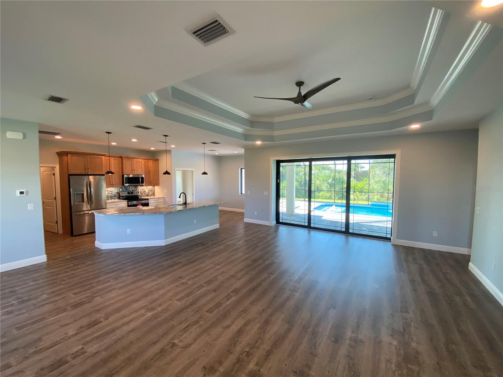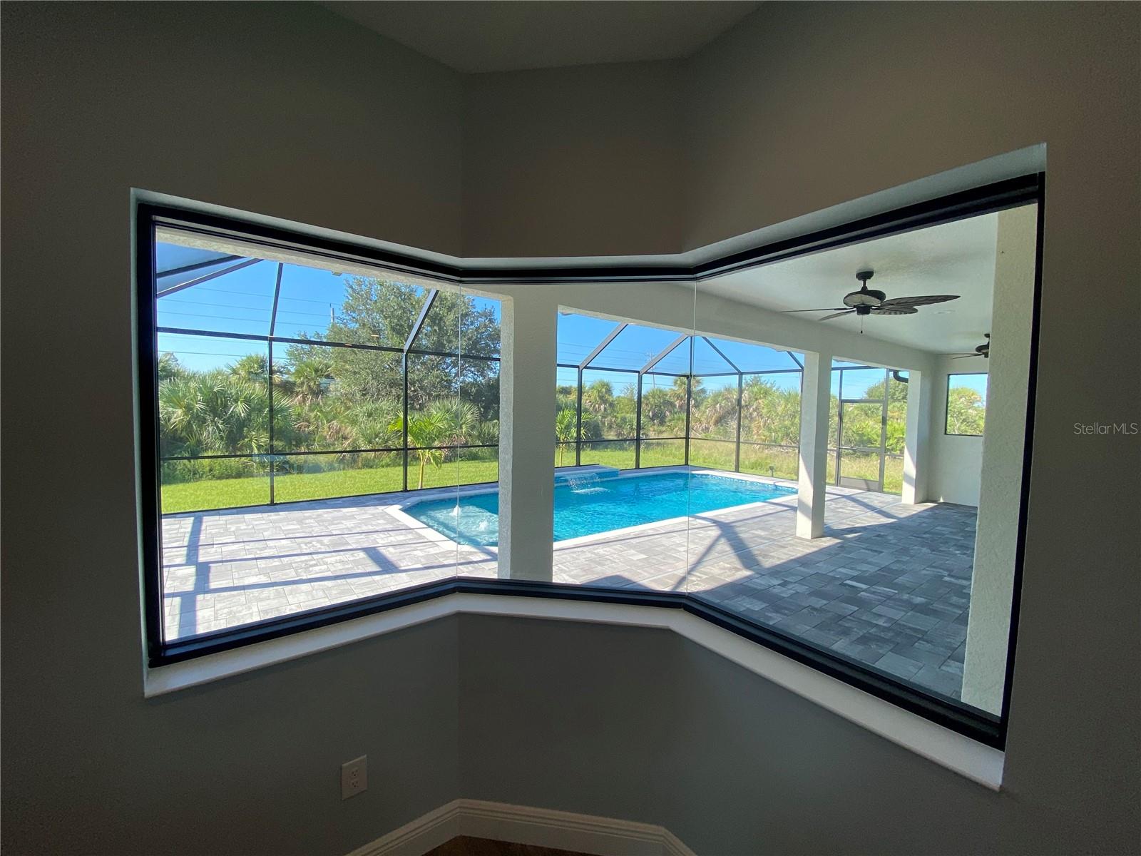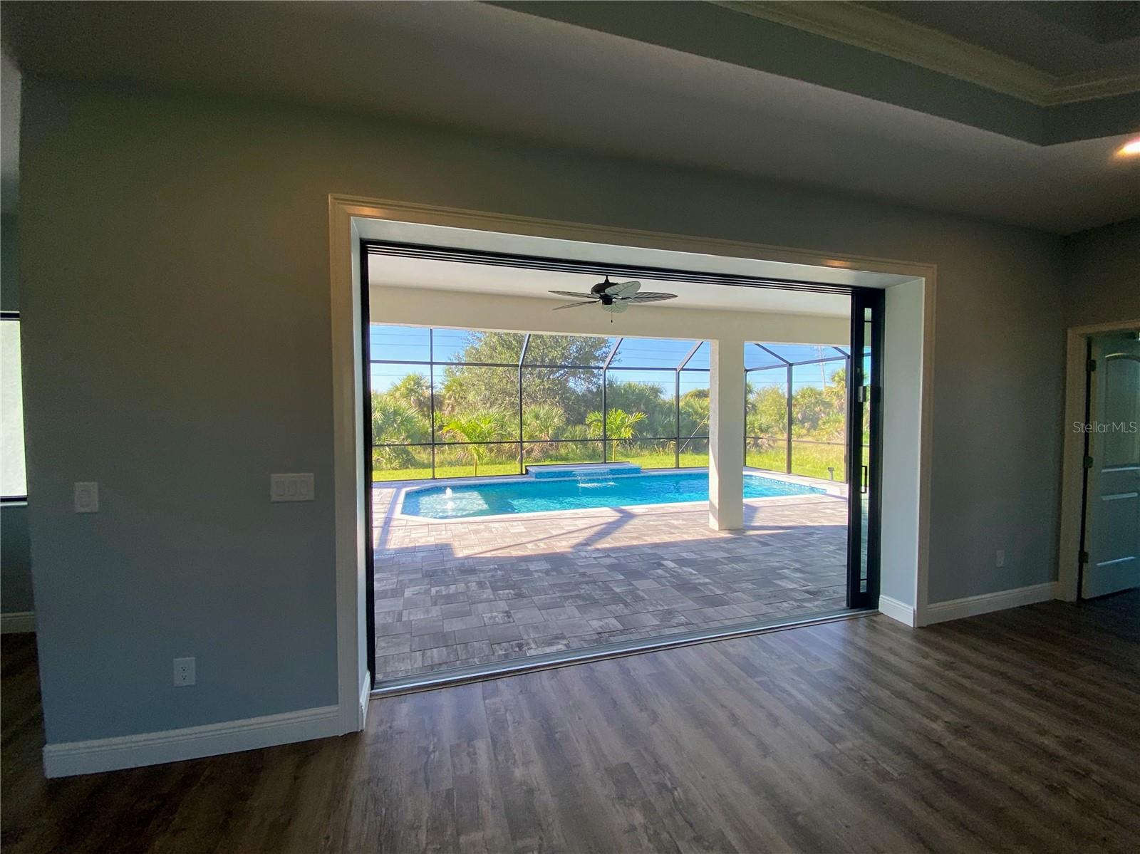This NEW CONSTRUCTION custom home by Southwest Florida Dream Builders is ready to be yours. Situated on an oversized corner lot of almost 15,000 SQFT is a rare find of almost 50% bigger than a traditional 80x125 parcel. With so much extra yard space to utilize, the possibilities are endless. This home is PACKED with high end amenities such as beautiful granite countertops, maple wood cabinets, luxury vinyl plank floors, and prairie grid hurricane impact glass throughout the whole house. From the moment you walk in you are greeted with a STUNNING view to your deck area through 8ft tall disappearing sliders in this open floor plan design. An oversized island and breakfast bar provides the perfect space to prepare meals and entertain. The dining room is separate from the nook/sitting area; which is situated off the kitchen and framed by a large aquarium window to the pool area. The master bedroom features yet another way to access the lanai out of 8 ft tall french doors with internalized blinds. Dual sinks in the master bath and a large walk in shower. Enjoy the Florida lifestyle on your covered paver lanai with a grilling pass-through for optimum airflow or soak up the sun in a 12x28 saltwater pool which has a raised sun shelf, waterfall feature, all surrounded by a large paver deck. The yard has irrigation installed so keeping your grass in tip-top shape during the dry season is a breeze. The 3rd car garage is a must have for anyone needing additional storage space or an out of the way area for extra cars or recreational vehicles. South Gulf Cove is a highly sought after neighborhood with parks, boat ramps, kayak launches, fishing, and fitness/nature trails. Secure your piece of paradise today!