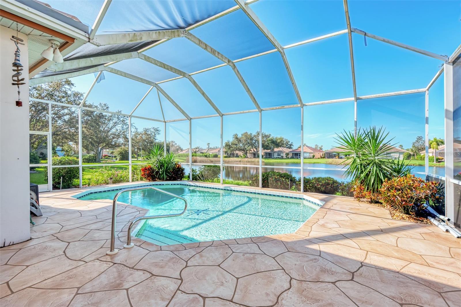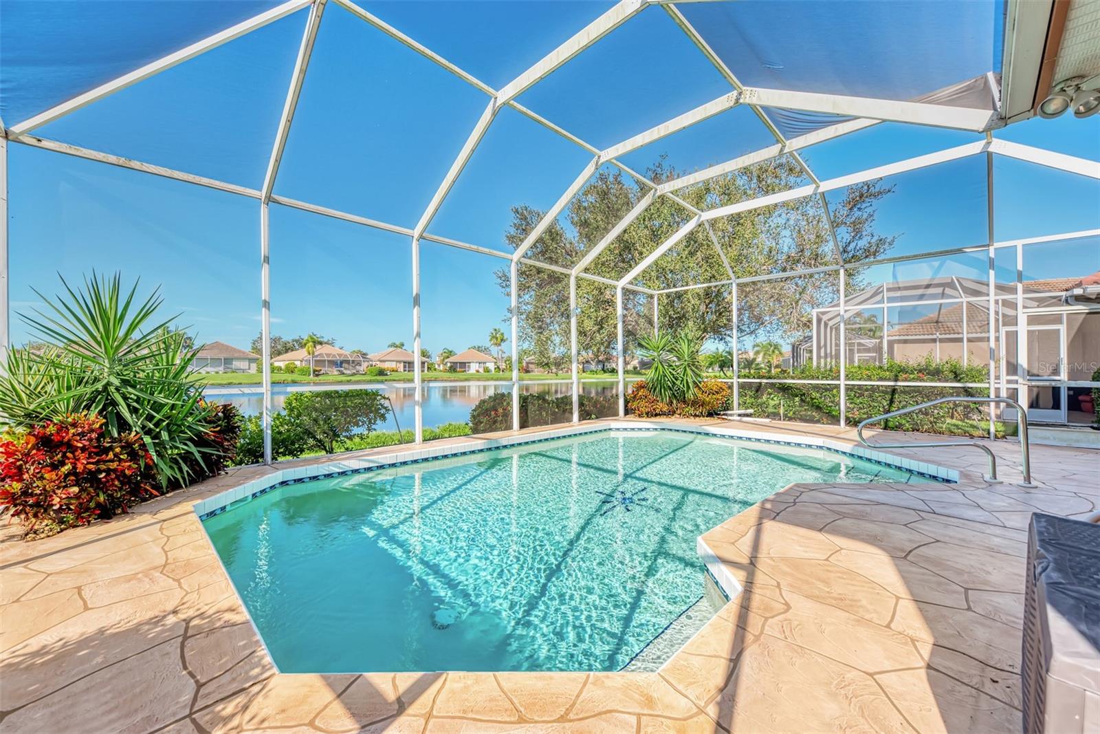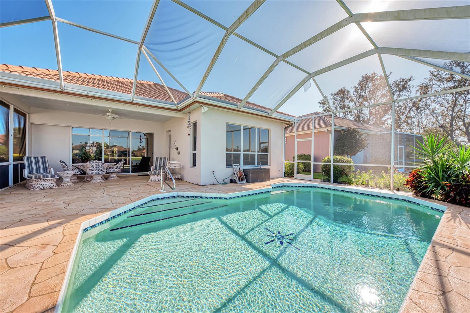 NEW PRICE! NOW IS A GREAT OPPORTUNITY FOR POOL HOME IN RIVERWOOD FOR UNDER $500,000! Very pretty, light and bright Rutenberg pool home with scenic pond view and gorgeous sunsets. Three bedrooms and two baths, with the furniture included. New luxury plank flooring in the great room. New carpet in all the bedrooms . East facing breakfast nook with a bay window to enjoy your morning coffee. NEW 2023 tile roof. New lanai cage 2024. Pool refinished in 2018. Updated light fitures and new ceiling fan on the lanai. Enjoy all Riverwood has to offer: RIVERWOOD, A RESORT LIFESTYLE COMMUNITY FEATURING: RIVERWOOD GOLF CLUB NAMED *GOLFER’S CHOICE 2021 #1 FLORIDA COURSE* *GOLFER’S CHOICE 2021 TOP 15 US COURSES* *GOLF ADVISOR*, ACTIVITY CENTER CAMPUS OFFERS LAP & RESORT STYLE POOLS, FITNESS CENTER, PICKLEBALL COURTS, SMALL AND LARGE DOG PARKS, TENNIS COURTS, LAWN CROQUET, BOCCE COURTS, ART CLASSROOM, LIBRARY, AND SOCIAL EVENTS! Dog Park, Riverwood Golf Club, & Private Beach Club on Manasota Key. Riverwood is close to Tampa Bay Rays Spring Training Facility, Atlanta Braves Spring Training Facility, Gulf Beaches, Charlotte Harbor (2nd largest estuary in FL), Myakka River (FL Scenic River), Punta Gorda, Englewood, and Boca Grande. Riverwood, a Perfect Blend of Florida’s Nature, and Resort Lifestyle.