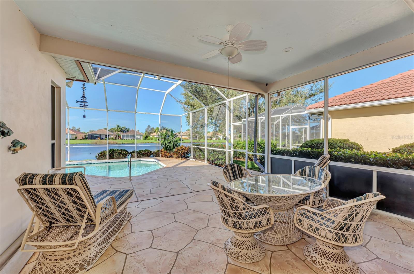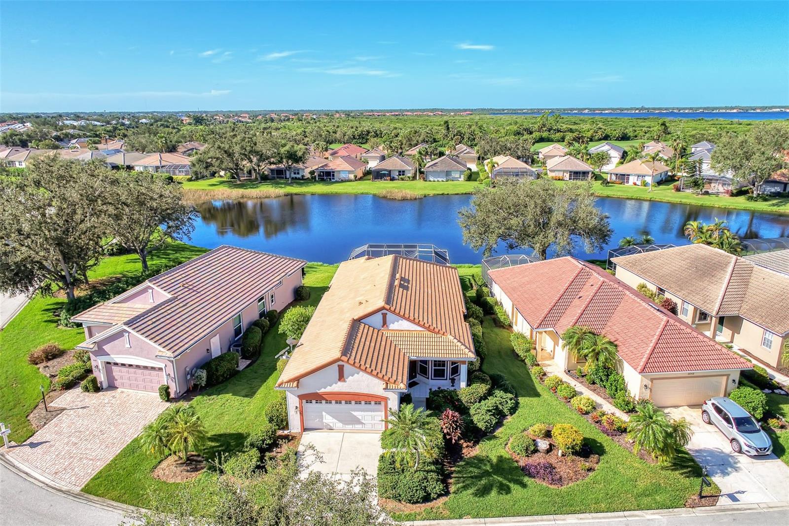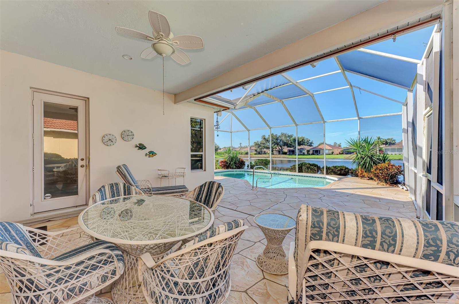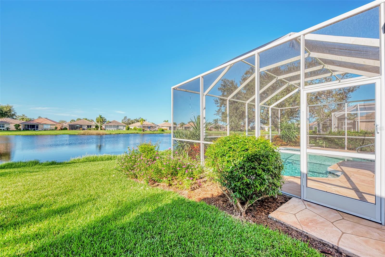 NEW PRICE! NOW IS A GREAT OPPORTUNITY FOR POOL HOME IN RIVERWOOD FOR UNDER $500,000! Very pretty, light and bright Rutenberg pool home with scenic pond view and gorgeous sunsets. Three bedrooms and two baths, with the furniture included. New luxury plank flooring in the great room. New carpet in all the bedrooms . East facing breakfast nook with a bay window to enjoy your morning coffee. NEW 2023 tile roof. New lanai cage 2024. Pool refinished in 2018. Updated light fitures and new ceiling fan on the lanai. Enjoy all Riverwood has to offer: RIVERWOOD, A RESORT LIFESTYLE COMMUNITY FEATURING: RIVERWOOD GOLF CLUB NAMED *GOLFER’S CHOICE 2021 #1 FLORIDA COURSE* *GOLFER’S CHOICE 2021 TOP 15 US COURSES* *GOLF ADVISOR*, ACTIVITY CENTER CAMPUS OFFERS LAP & RESORT STYLE POOLS, FITNESS CENTER, PICKLEBALL COURTS, SMALL AND LARGE DOG PARKS, TENNIS COURTS, LAWN CROQUET, BOCCE COURTS, ART CLASSROOM, LIBRARY, AND SOCIAL EVENTS! Dog Park, Riverwood Golf Club, & Private Beach Club on Manasota Key. Riverwood is close to Tampa Bay Rays Spring Training Facility, Atlanta Braves Spring Training Facility, Gulf Beaches, Charlotte Harbor (2nd largest estuary in FL), Myakka River (FL Scenic River), Punta Gorda, Englewood, and Boca Grande. Riverwood, a Perfect Blend of Florida’s Nature, and Resort Lifestyle.