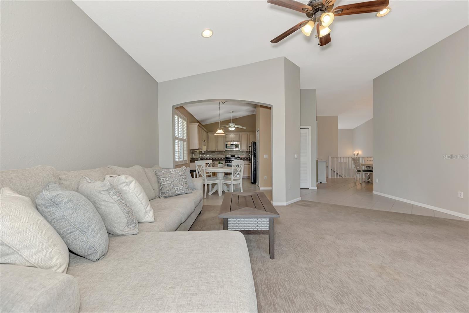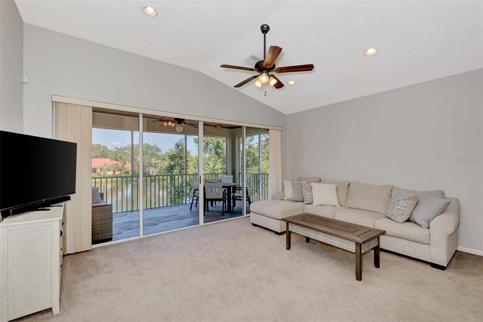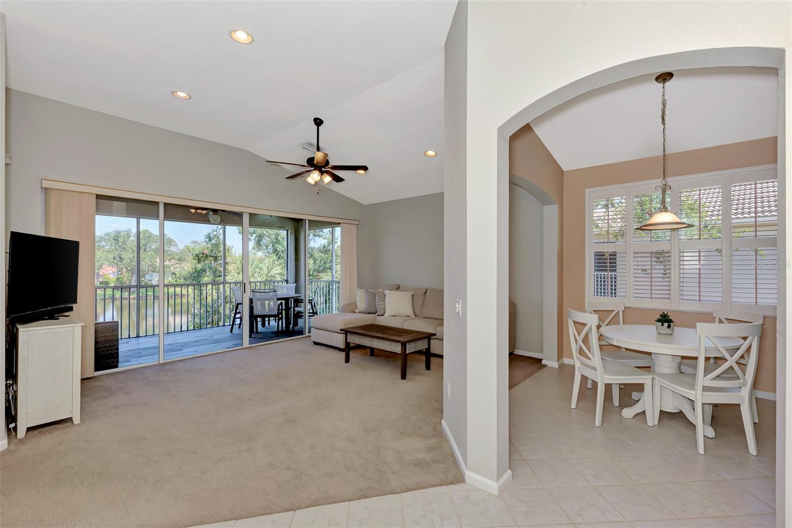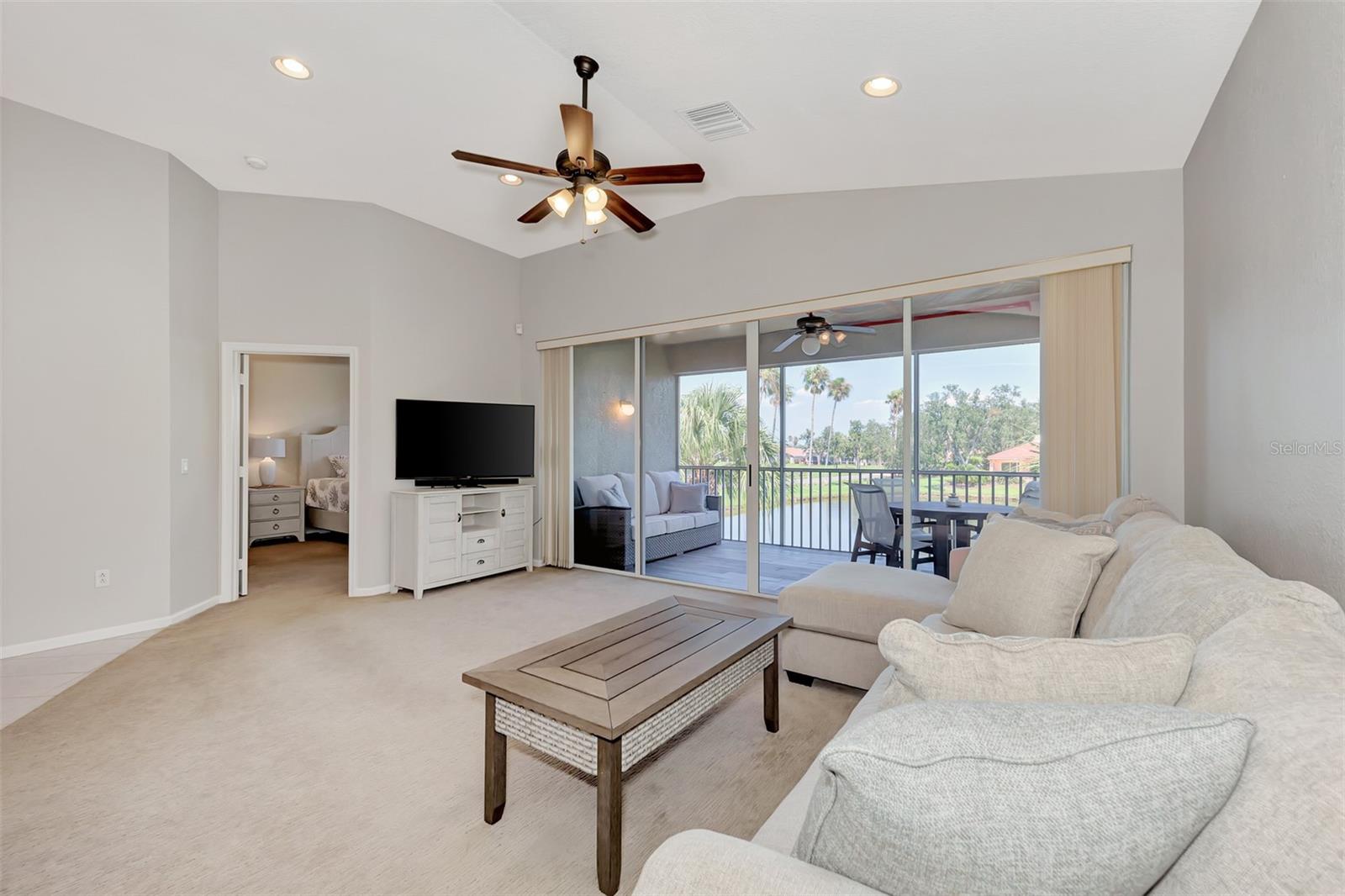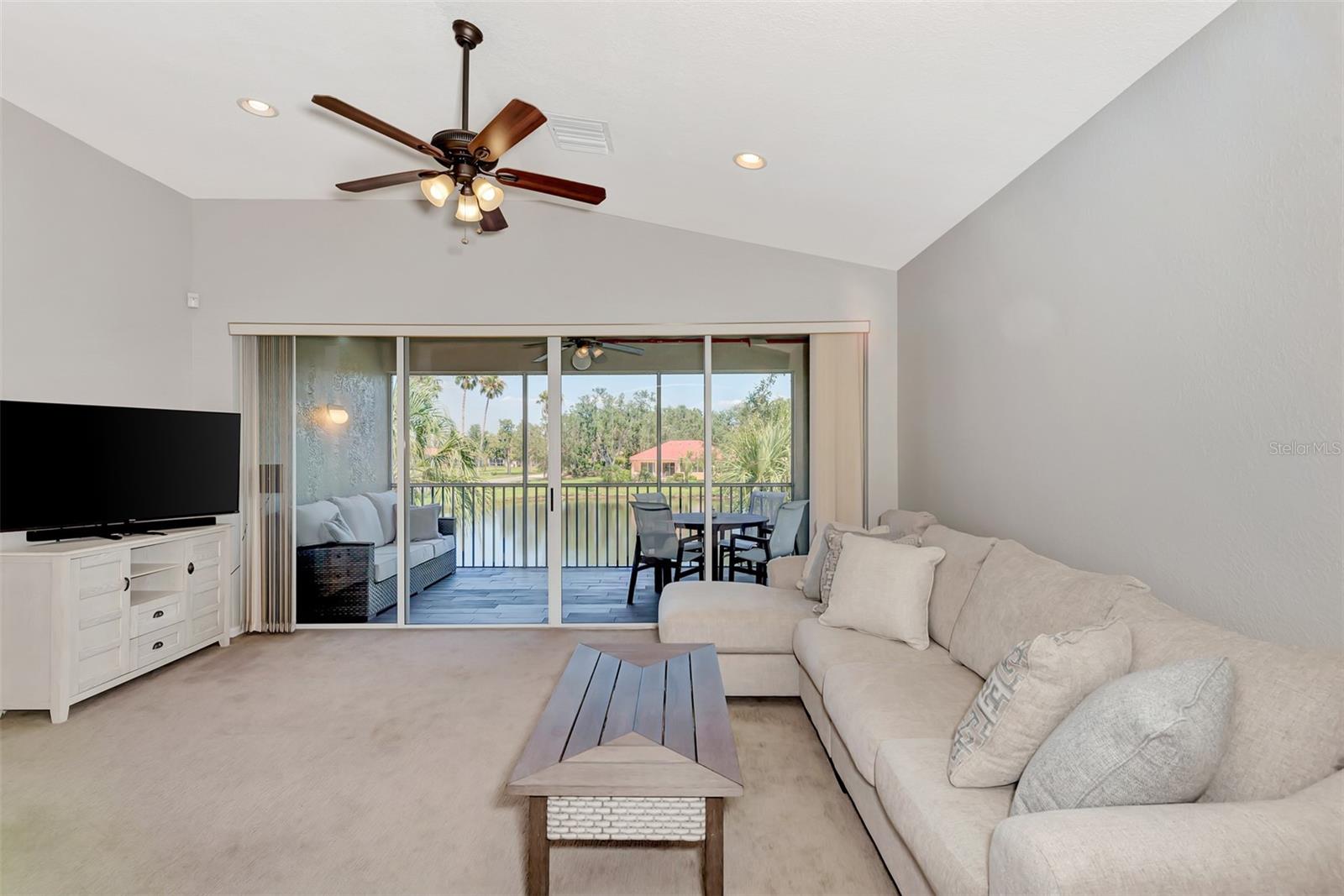 BEAUTIFUL WATER-VIEW Grand Vista Condo in Riverwood! This comfortable and spacious 2nd Floor end-unit offers an open floor plan with cathedral ceilings, 3 bedrooms, 2 Baths, 1-car attached garage. Enjoy a birds eye view from your Lanai with ceramic plank tile, overlooking a Pond, abundant with entertaining WILDLIFE. Your Neighborhood-Exclusive POOL/SPA is just steps away! Split bedroom plan and Master En Suite with a pond view: Walk-in Shower, Separate Tub, Dual Sinks and Walk-in Closet with Built-Ins Recessed Ceiling Lights. The 3rd Bedroom with Pergo flooring, is currently used as an Office with a built-in desk. The Kitchen features Wood Cabinets, two lower cabinets with pull-out shelves; 36" upper cabinets, roomy Solid Surface Countertops and beautiful, polished stone tile backsplash and Stainless-Steel Appliances. A Dinette brightened by natural light extends from the Kitchen. A Separate Dining Room for entertaining or for use as a reading/sitting room or other flexible space. NEW ROOF (2024) NEW GARAGE DOOR (2023). WATER HEATER & AIR CONDITIONER (2020). NEW PAINT (2021) in Great Room & Master Bedroom. UPGRADED CARPET at Stairs, Living Room and Bedrooms. Comfort Height Toilets in Both Bathrooms. Enjoy all Riverwood has to offer: RIVERWOOD, A RESORT LIFESTYLE COMMUNITY FEATURING: RIVERWOOD GOLF CLUB NAMED *GOLFER’S CHOICE 2021 #1 FLORIDA COURSE* *GOLFER’S CHOICE 2021 TOP 15 US COURSES* *GOLF ADVISOR*, ACTIVITY CENTER CAMPUS OFFERING LAP & RESORT STYLE POOLS, FITNESS CENTER, PICKLEBALL COURTS, SMALL AND LARGE DOG PARKS, TENNIS COURTS, LAWN CROQUET, BOCCE COURTS, ART CLASSROOM, LIBRARY, AND SOCIAL EVENTS! Additional fees apply for Dog Park, Riverwood Golf Club, & Private Beach Club on Manasota Key. Riverwood is close to Tampa Bay Rays Spring Training Facility, Atlanta Braves Spring Training Facility, Gulf Beaches, Charlotte Harbor (2nd largest estuary in FL), Myakka River (FL Scenic River), Punta Gorda, Englewood, and Boca Grande. Riverwood, a Perfect Blend of Florida’s Nature, and Resort Lifestyle.