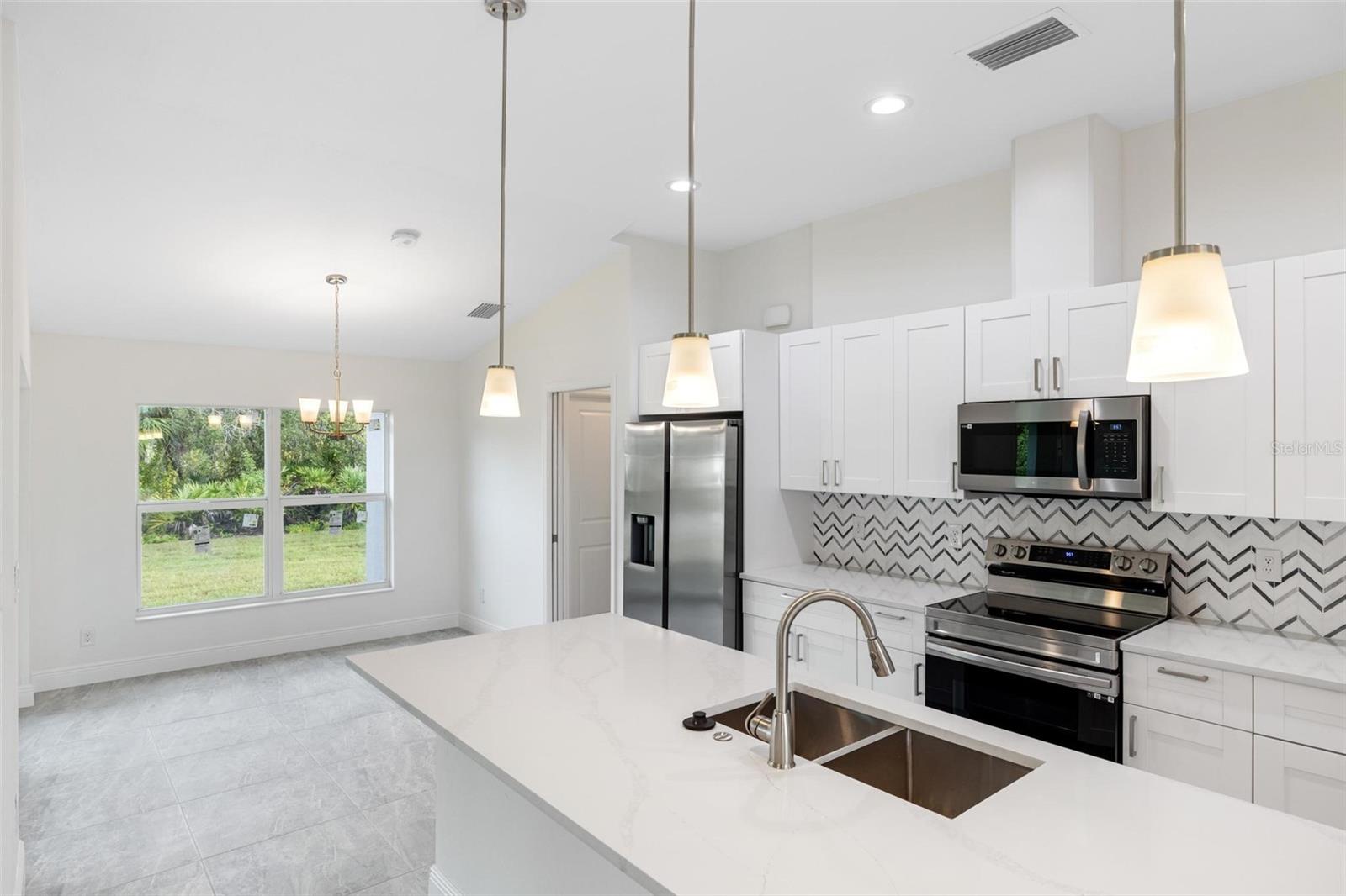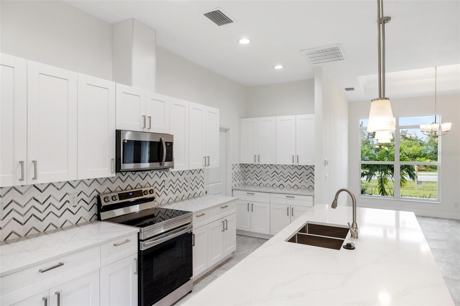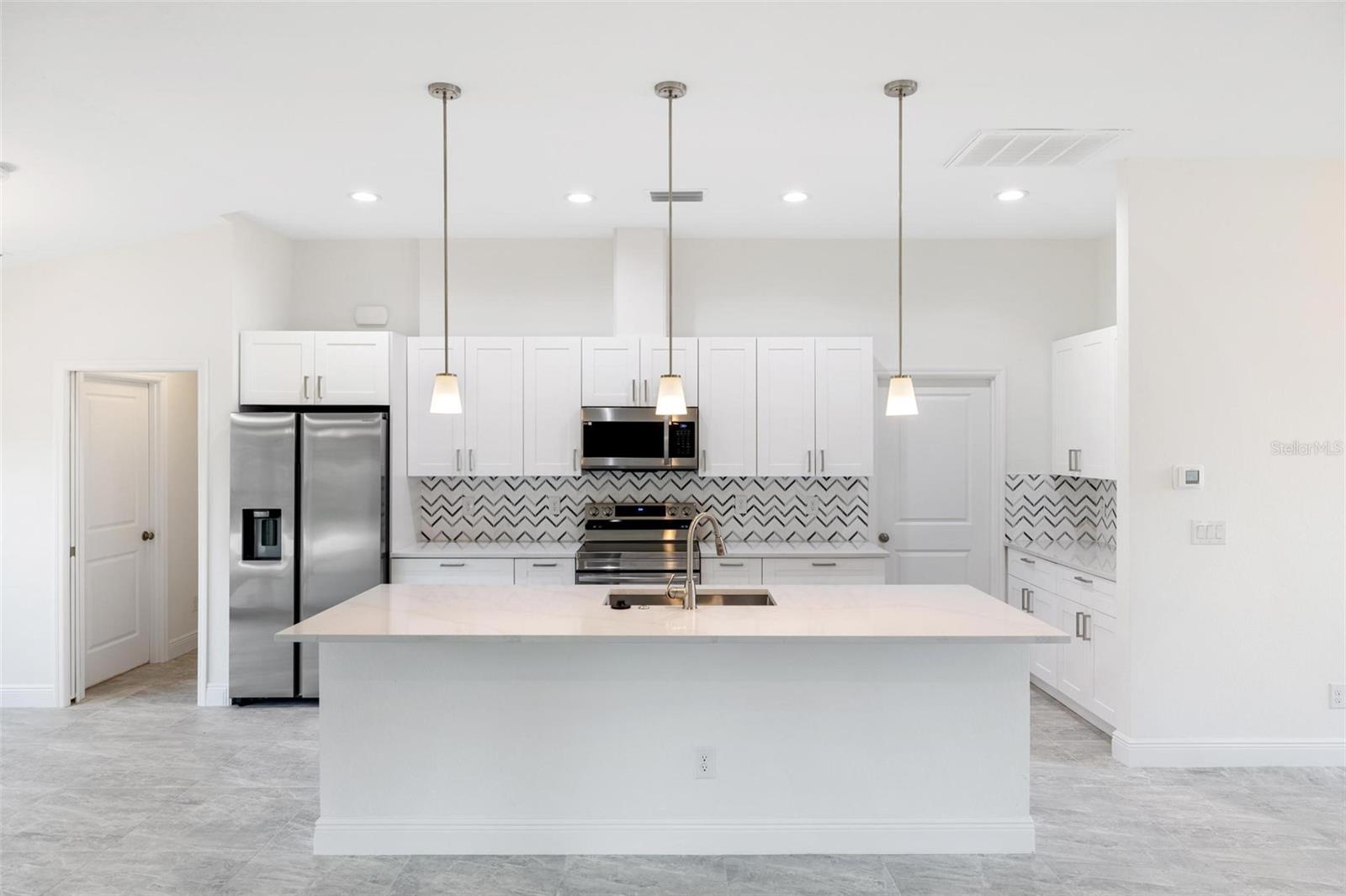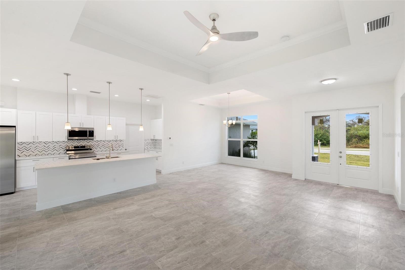 Discover the epitome of contemporary living in this brand-new construction home, a masterpiece of design and luxury. With 3 bedrooms, 2 bathrooms, and a 2-car garage, this residence offers a perfect blend of style and functionality. Step into a grand entrance with beautiful double doors that lead to a raised foyer, setting the stage for the elegance that awaits within. Adorned with stacked stone accents, the facade exudes charm and sophistication. Hurricane impact windows not only enhance the home's aesthetic appeal but also provide peace of mind and protection in any weather. The heart of this home is the chef-inspired kitchen, featuring beautiful quartz countertops, stainless steel appliances, a chic tile backsplash, and elegant pendant lighting. The open-concept design flows seamlessly into the great room and dining room, where soaring 10ft ceilings create an atmosphere of spaciousness. In the great room and dining room, a tray ceiling reaches an impressive 11 ft, adding an extra layer of luxury. Escape to the large master suite, a private sanctuary with sliding doors leading to the covered lanai. Dual closets provide ample storage, while the tray ceiling adds a touch of sophistication. The master bathroom is a spa-like retreat, boasting a dual sink vanity and a walk-through shower with a transom window, allowing natural light to fill the space. The entire house is adorned with elegant tile flooring, creating a cohesive and stylish atmosphere. The thoughtful split floor plan ensures privacy, with the guest bathroom accessible from the lanai for added convenience. Situated in South Gulf Cove, one of Southwest Florida's hottest waterfront communities, this home offers a lifestyle of leisure and luxury. Just 7 miles from the pristine beaches of Boca Grande, you'll have the perfect balance of serene living and coastal excitement. Don't miss the opportunity to make this stunning residence your new home—where modern elegance meets coastal charm.