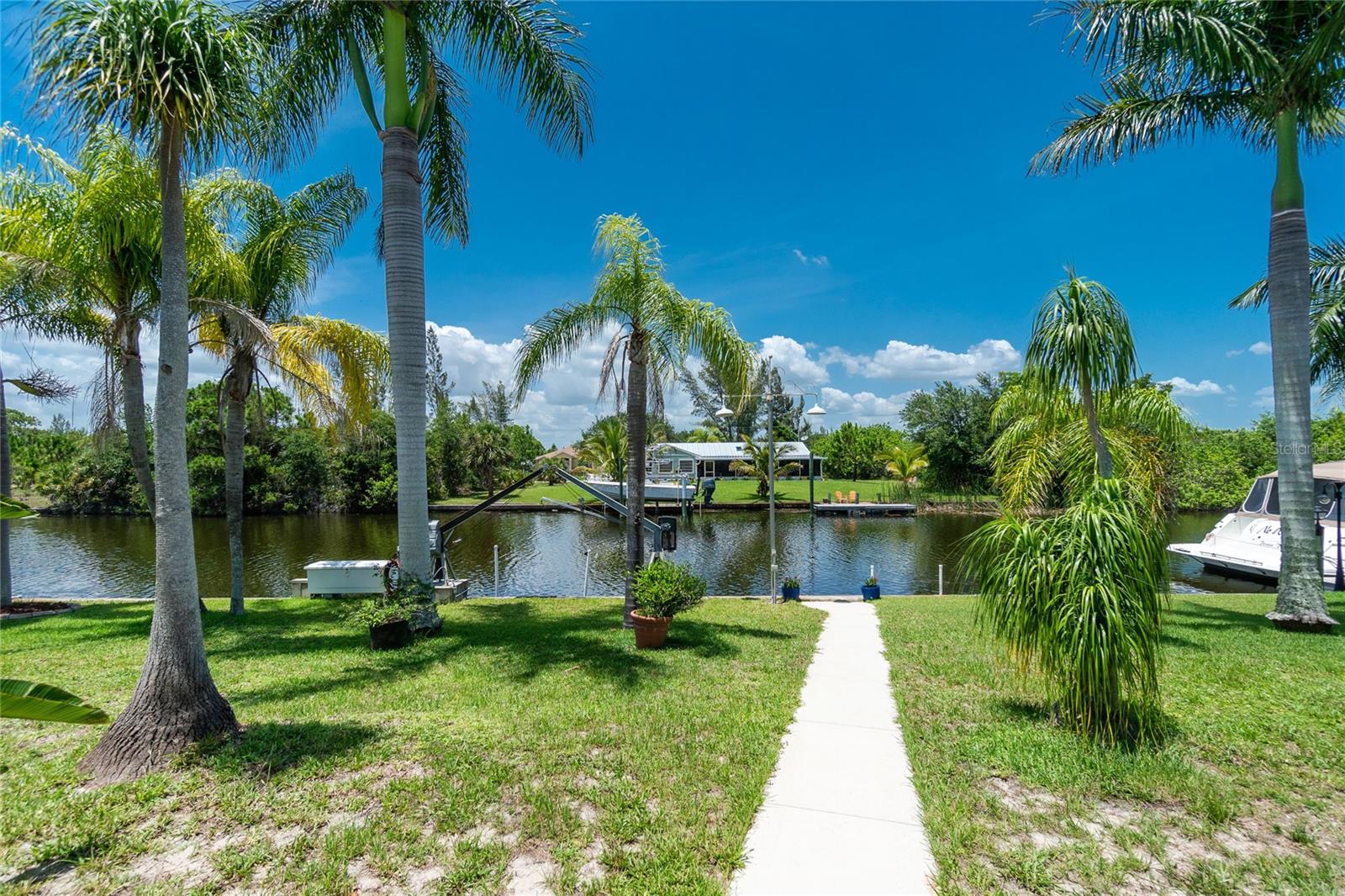 This home is your perfect escape to paradise. A quiet, serene, island feel is what comes to mind when you walk this property. Soak up the sunshine while cruising out to the Gulf of Mexico to explore our gorgeous Gulf Coast, visit any of the waterside restaurants, and check out our local islands, Sail out to the gulf over to the sandbar near Boca, the adventures are endless. Home feautres: NEW ROOF, AC 5 YRS. NO HOA (voluntary) Single car garage, carport, and large storage shed. The location of this home on the water is perfect for sailboats or larger vessels, Great location! This lovely home has brilliant qualities from the beautiful mature landscaping that makes you feel like you're on your own island to the oversized screened lanai that takes you into the island vibe and is perfect for entertaining. Fish right from your backyard and catch snook, and bass, and that's just a start. Venture out on your kayak and explore our canals and lagoon, or go up to one of our many nearby parks and launch from there. The activities are endless. The community has 10-foot sidewalks on all main roads, a private boat launch, a voluntary HOA, and different clubs you can join, Elks, Moose, South Gulf Cove Yacht Club, and many others. They call it a "sportsman" community as you can easily store your trailer/boat right on your property. You are within a few miles of gorgeous beaches, farmer's markets, shopping, and medical facilities of all practices, and centrally located between Sarasota and Fort Myers. It is a great home, and a great location and I can't wait for you to see it.