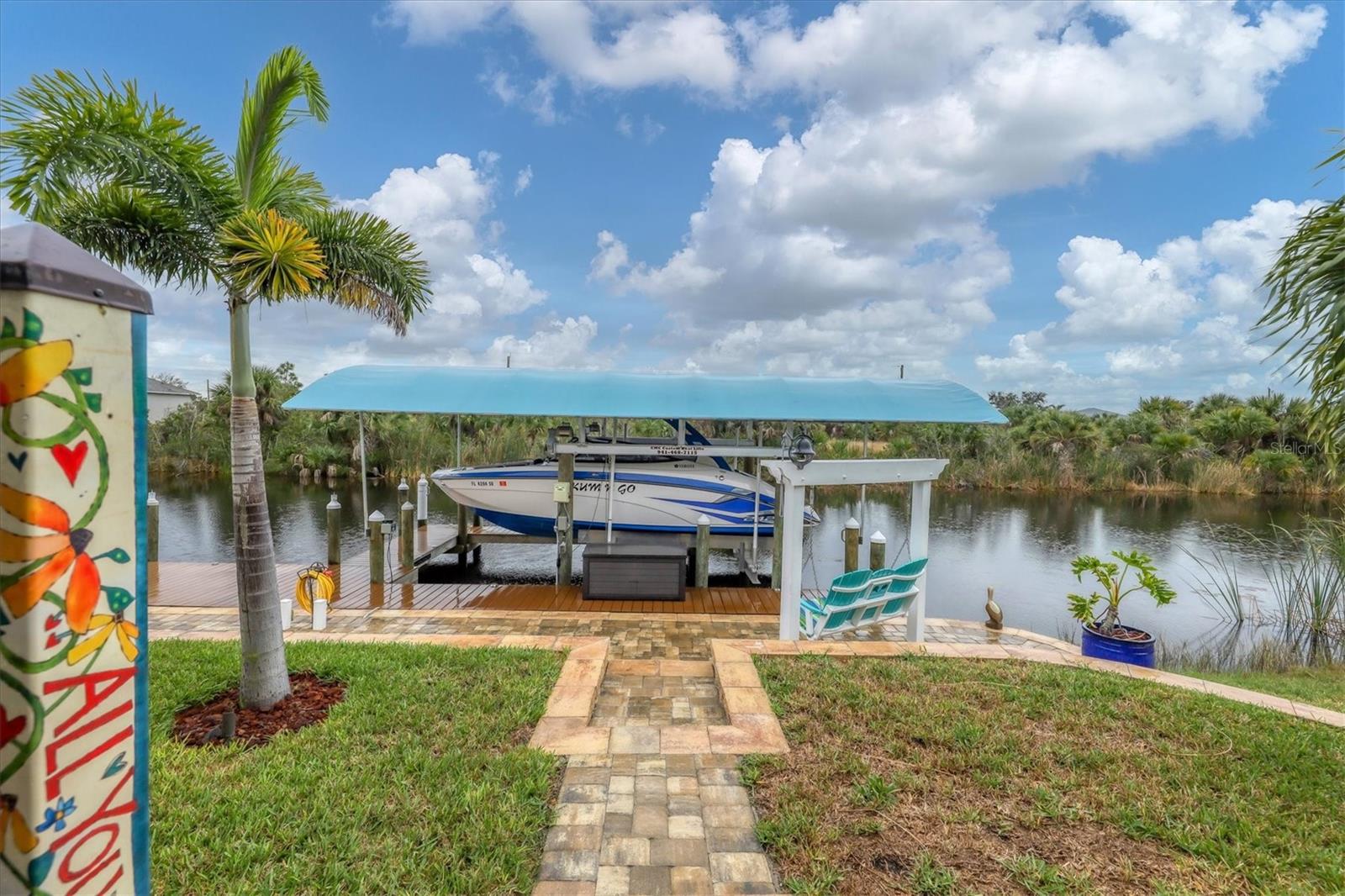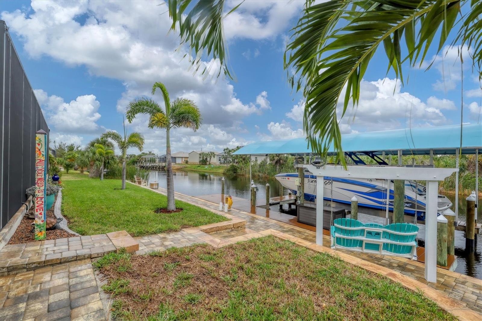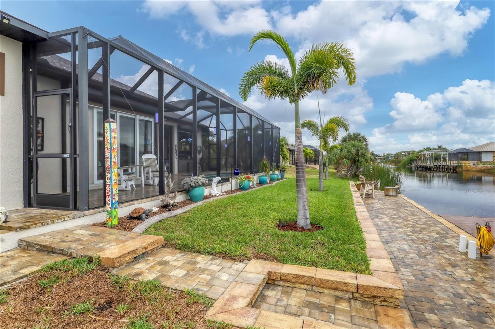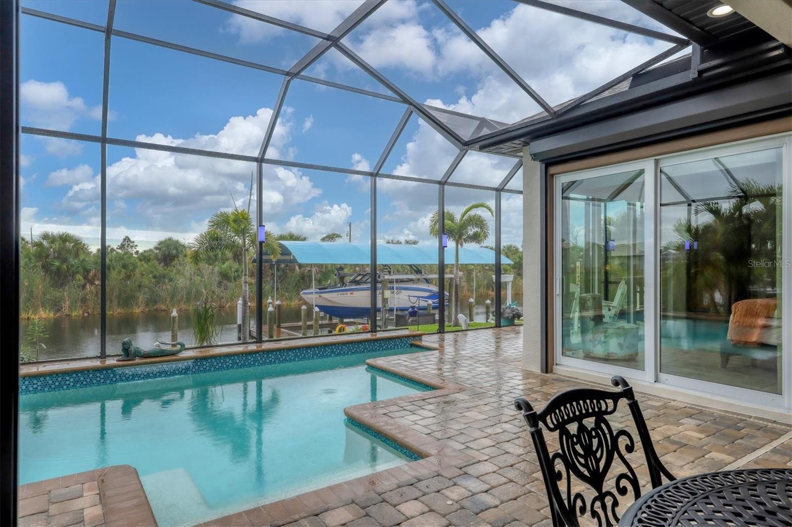 Enjoy Florida living in this elegant waterfront home! This 3 bedroom, 2 bathroom, 3 car tandem garage allows plenty of space for a workshop and/or storage, curb appeal abounds with a paved driveway, travertine front patio/entrance and gorgeous etched double doors. Brand New William Sharman paint exterior (2023). Once you enter you know that you can entertain in style or just spend precious time with family because this home offers luxury and comfort with first class finishes. You will never get tired of that water view through the expanse of sliders in the living areas and master! There is wood tile throughout, custom tray ceilings, electric fireplace in the living room, IST stereo surround sound, top of the line fixtures and accessories. The gourmet kitchen is literally breathtaking, and cooking will be amazing with the Electrolux 5 burner induction cooktop, wall ovens, oversized refrigerator/freezer, 9’ island with farmhouse sink, etc etc! On the practical side- Nest technology, alarm system, icynene insulation, impact glass and electric shutters- just a few of the features in this like-new home. The master suite is an oasis with incredible walk through shower and the13x8 closet could be another room! Hall configurations in this home add flow and space. The large lanai has a heated saltwater pool, brand new pool screens (2023), 5 Hurricane storm automictic shutters (you dont have to move the furniture ), built in ambient water feature, and a summer kitchen with large bar/counter, Webber Summit grill and walk down the lighted captains walk to a 16' composite dock with water and electric for the boaters along with a walk around 10K boat lift for easy boarding. As there are additional features too numerous to mention a comprehensive list is attached. We invite you to view the videos and photo gallery of this stunning home offering the best in luxurious Florida living. Room Feature: Linen Closet In Bath (Primary Bedroom).