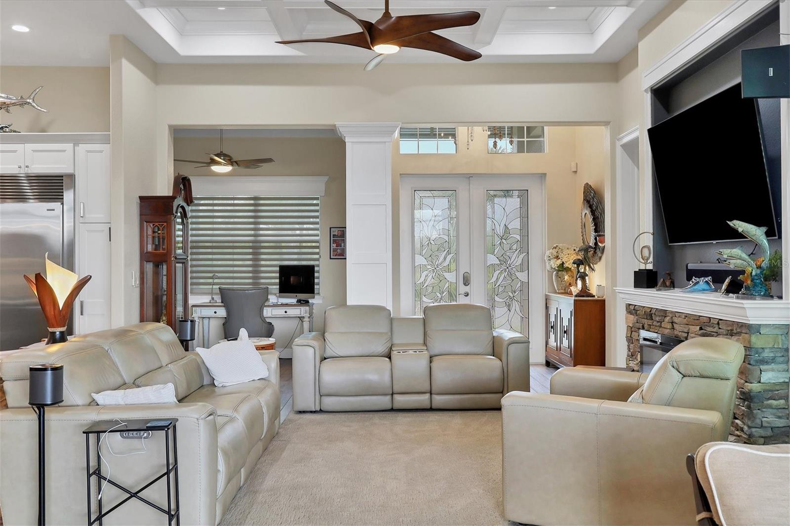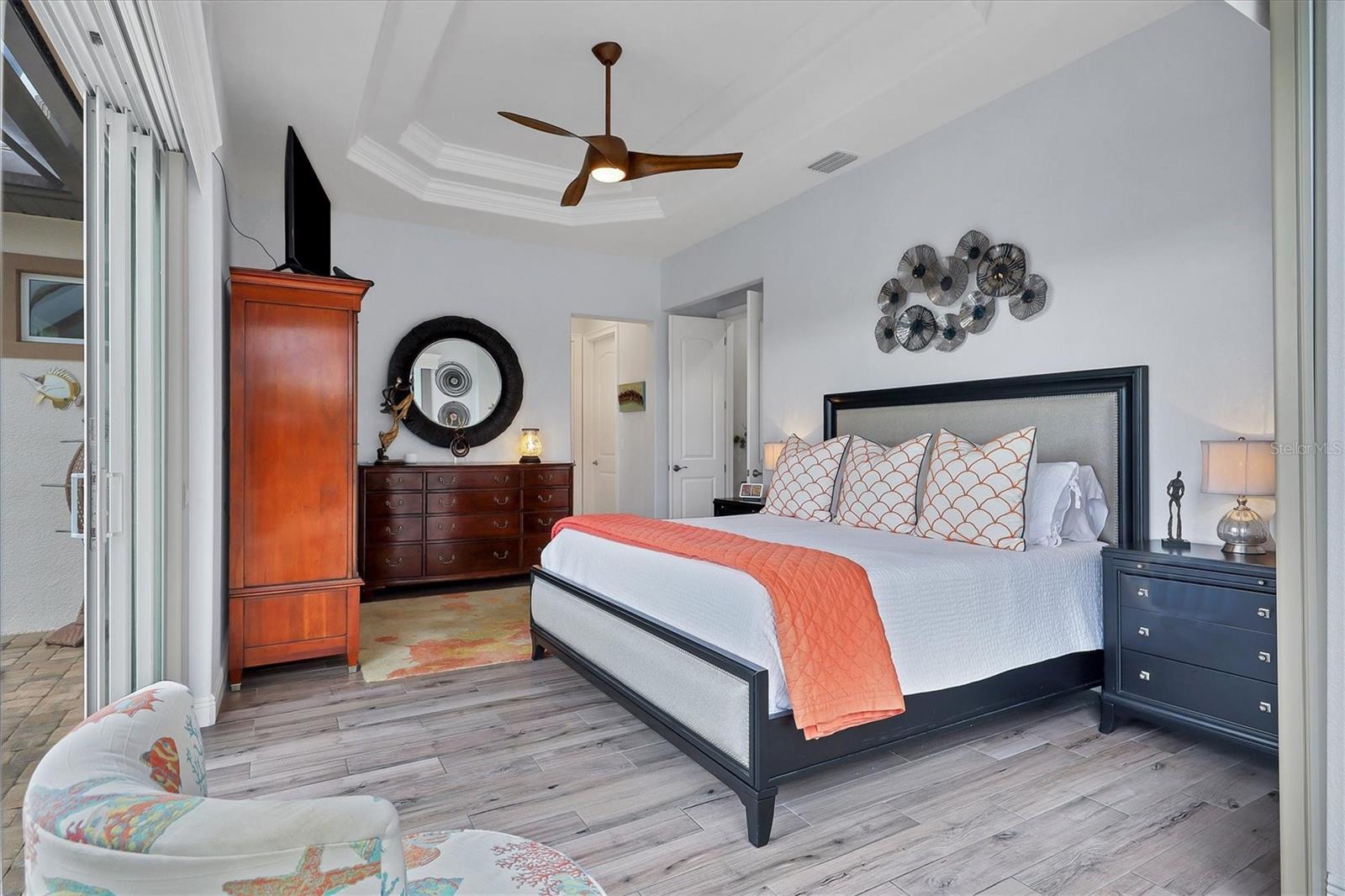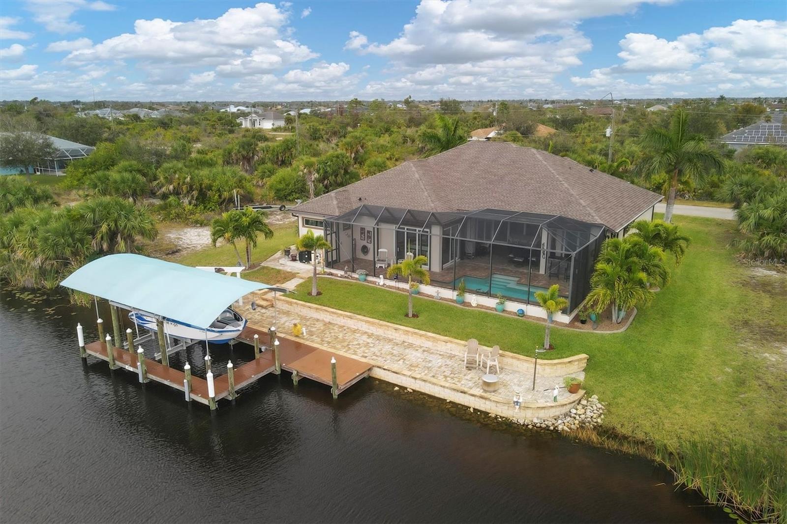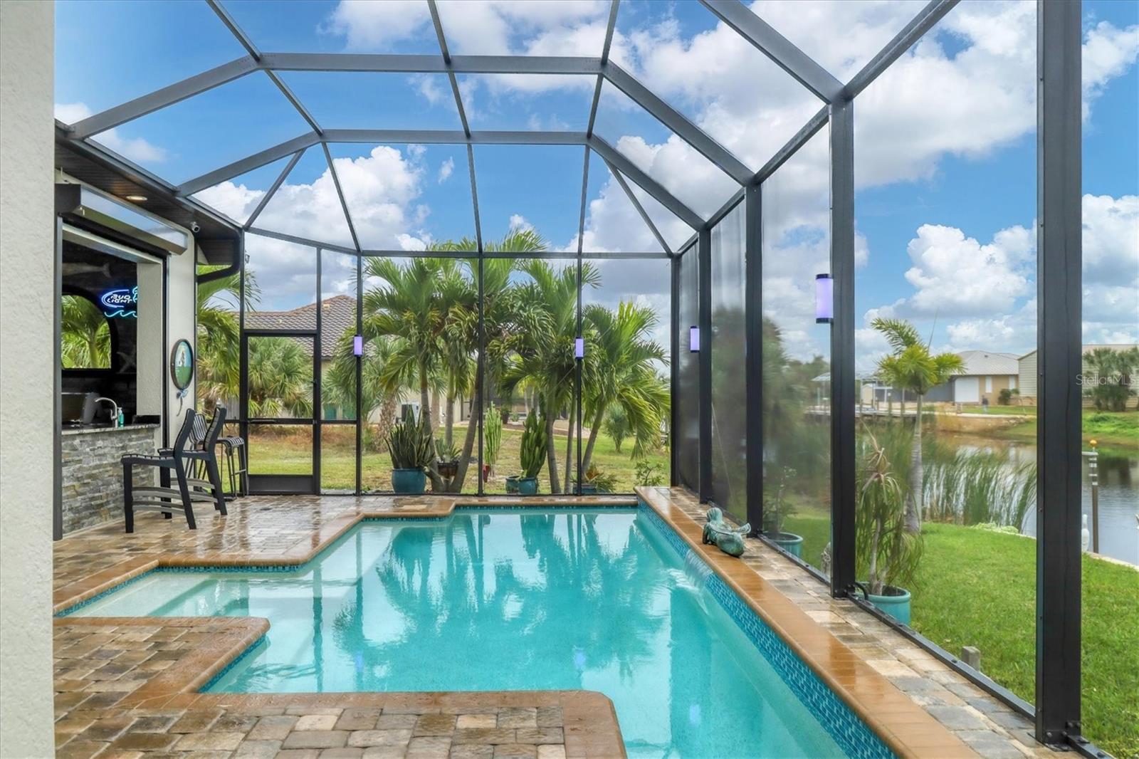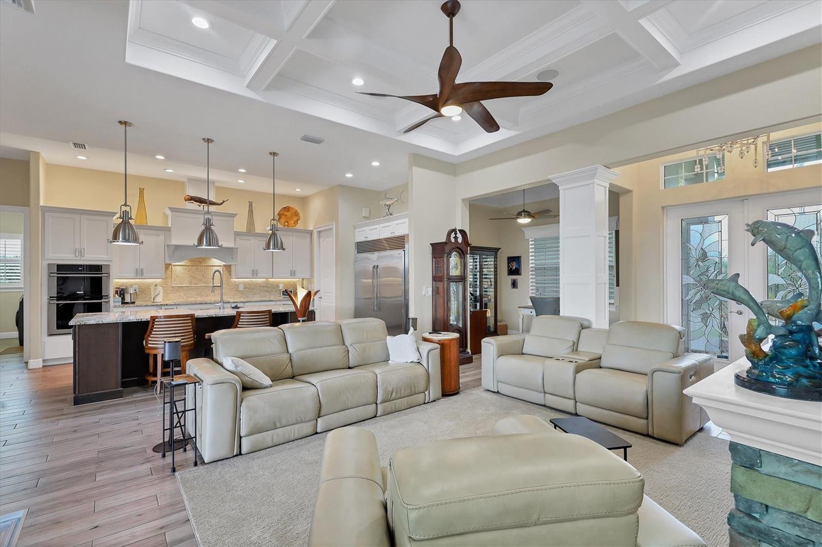 Enjoy Florida living in this elegant waterfront home! This 3 bedroom, 2 bathroom, 3 car tandem garage allows plenty of space for a workshop and/or storage, curb appeal abounds with a paved driveway, travertine front patio/entrance and gorgeous etched double doors. Brand New William Sharman paint exterior (2023). Once you enter you know that you can entertain in style or just spend precious time with family because this home offers luxury and comfort with first class finishes. You will never get tired of that water view through the expanse of sliders in the living areas and master! There is wood tile throughout, custom tray ceilings, electric fireplace in the living room, IST stereo surround sound, top of the line fixtures and accessories. The gourmet kitchen is literally breathtaking, and cooking will be amazing with the Electrolux 5 burner induction cooktop, wall ovens, oversized refrigerator/freezer, 9’ island with farmhouse sink, etc etc! On the practical side- Nest technology, alarm system, icynene insulation, impact glass and electric shutters- just a few of the features in this like-new home. The master suite is an oasis with incredible walk through shower and the13x8 closet could be another room! Hall configurations in this home add flow and space. The large lanai has a heated saltwater pool, brand new pool screens (2023), 5 Hurricane storm automictic shutters (you dont have to move the furniture ), built in ambient water feature, and a summer kitchen with large bar/counter, Webber Summit grill and walk down the lighted captains walk to a 16' composite dock with water and electric for the boaters along with a walk around 10K boat lift for easy boarding. As there are additional features too numerous to mention a comprehensive list is attached. We invite you to view the videos and photo gallery of this stunning home offering the best in luxurious Florida living. Room Feature: Linen Closet In Bath (Primary Bedroom).
