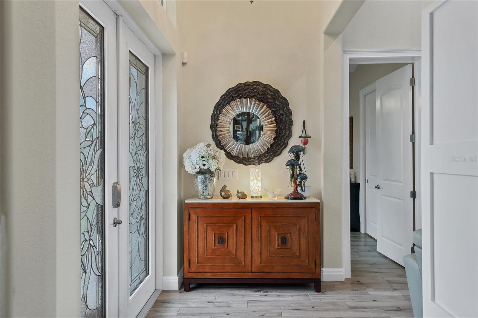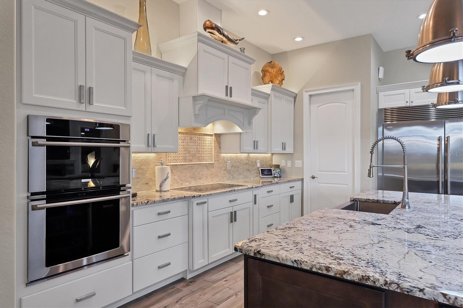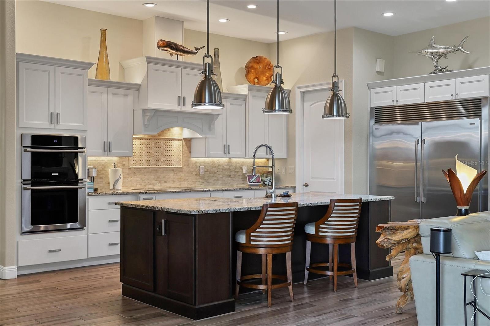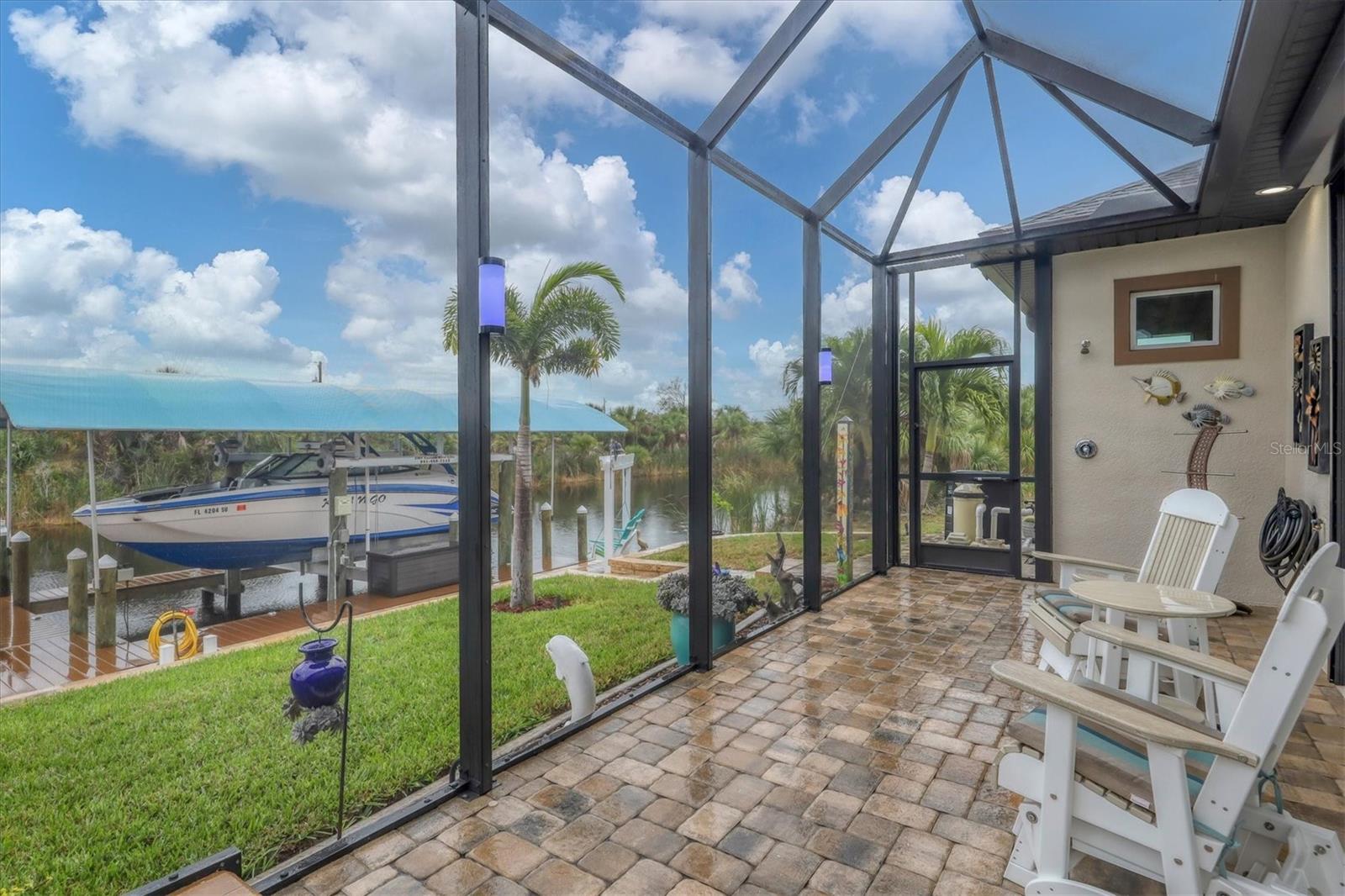 Enjoy Florida living in this elegant waterfront home! This 3 bedroom, 2 bathroom, 3 car tandem garage allows plenty of space for a workshop and/or storage, curb appeal abounds with a paved driveway, travertine front patio/entrance and gorgeous etched double doors. Brand New William Sharman paint exterior (2023). Once you enter you know that you can entertain in style or just spend precious time with family because this home offers luxury and comfort with first class finishes. You will never get tired of that water view through the expanse of sliders in the living areas and master! There is wood tile throughout, custom tray ceilings, electric fireplace in the living room, IST stereo surround sound, top of the line fixtures and accessories. The gourmet kitchen is literally breathtaking, and cooking will be amazing with the Electrolux 5 burner induction cooktop, wall ovens, oversized refrigerator/freezer, 9’ island with farmhouse sink, etc etc! On the practical side- Nest technology, alarm system, icynene insulation, impact glass and electric shutters- just a few of the features in this like-new home. The master suite is an oasis with incredible walk through shower and the13x8 closet could be another room! Hall configurations in this home add flow and space. The large lanai has a heated saltwater pool, brand new pool screens (2023), 5 Hurricane storm automictic shutters (you dont have to move the furniture ), built in ambient water feature, and a summer kitchen with large bar/counter, Webber Summit grill and walk down the lighted captains walk to a 16' composite dock with water and electric for the boaters along with a walk around 10K boat lift for easy boarding. As there are additional features too numerous to mention a comprehensive list is attached. We invite you to view the videos and photo gallery of this stunning home offering the best in luxurious Florida living. Room Feature: Linen Closet In Bath (Primary Bedroom).
