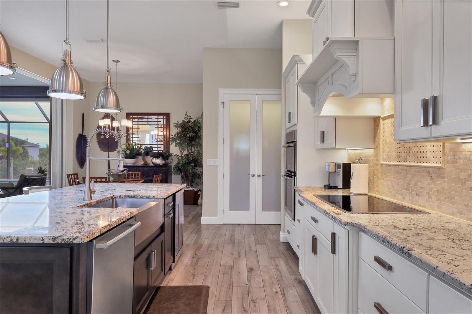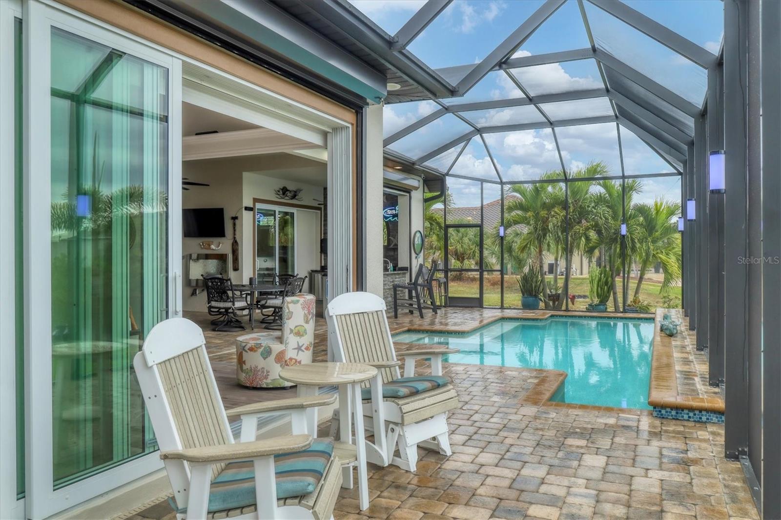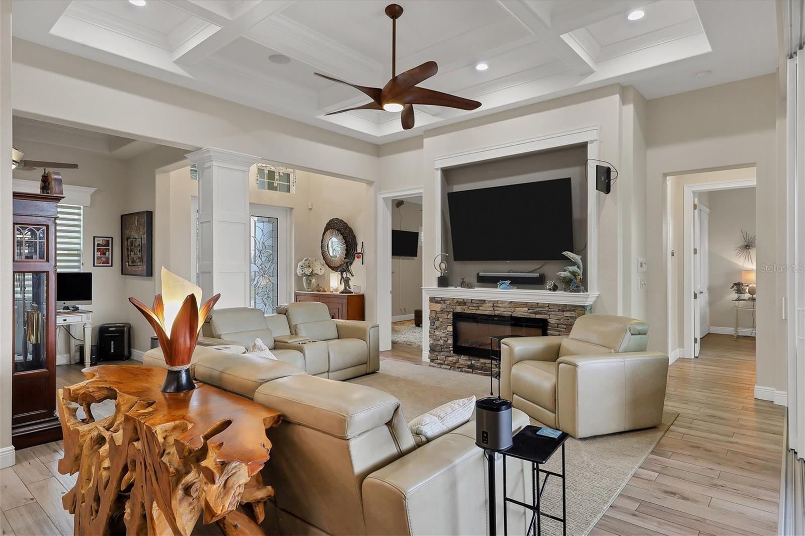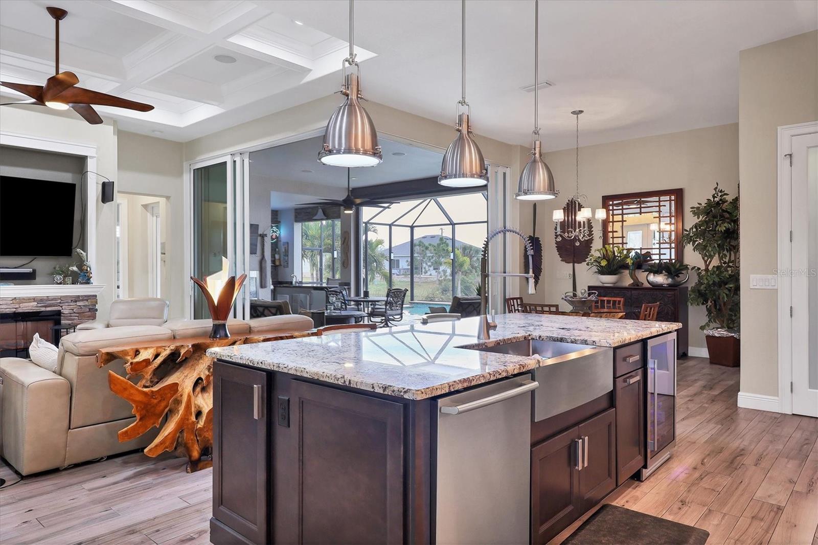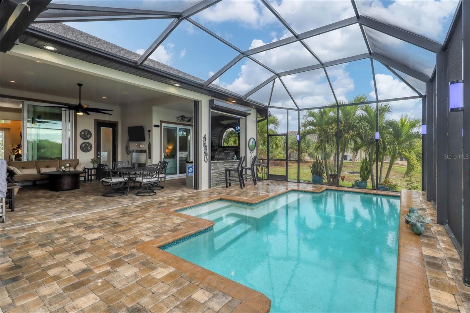 Enjoy Florida living in this elegant waterfront home! This 3 bedroom, 2 bathroom, 3 car tandem garage allows plenty of space for a workshop and/or storage, curb appeal abounds with a paved driveway, travertine front patio/entrance and gorgeous etched double doors. Brand New William Sharman paint exterior (2023). Once you enter you know that you can entertain in style or just spend precious time with family because this home offers luxury and comfort with first class finishes. You will never get tired of that water view through the expanse of sliders in the living areas and master! There is wood tile throughout, custom tray ceilings, electric fireplace in the living room, IST stereo surround sound, top of the line fixtures and accessories. The gourmet kitchen is literally breathtaking, and cooking will be amazing with the Electrolux 5 burner induction cooktop, wall ovens, oversized refrigerator/freezer, 9’ island with farmhouse sink, etc etc! On the practical side- Nest technology, alarm system, icynene insulation, impact glass and electric shutters- just a few of the features in this like-new home. The master suite is an oasis with incredible walk through shower and the13x8 closet could be another room! Hall configurations in this home add flow and space. The large lanai has a heated saltwater pool, brand new pool screens (2023), 5 Hurricane storm automictic shutters (you dont have to move the furniture ), built in ambient water feature, and a summer kitchen with large bar/counter, Webber Summit grill and walk down the lighted captains walk to a 16' composite dock with water and electric for the boaters along with a walk around 10K boat lift for easy boarding. As there are additional features too numerous to mention a comprehensive list is attached. We invite you to view the videos and photo gallery of this stunning home offering the best in luxurious Florida living. Room Feature: Linen Closet In Bath (Primary Bedroom).